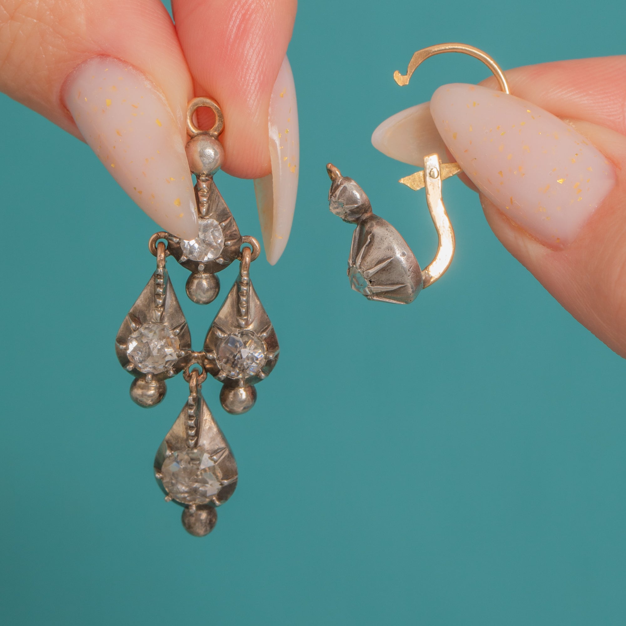 Antique 18ct Gold Rose-Cut Rock Crystal Day & Night Chandelier Earrings