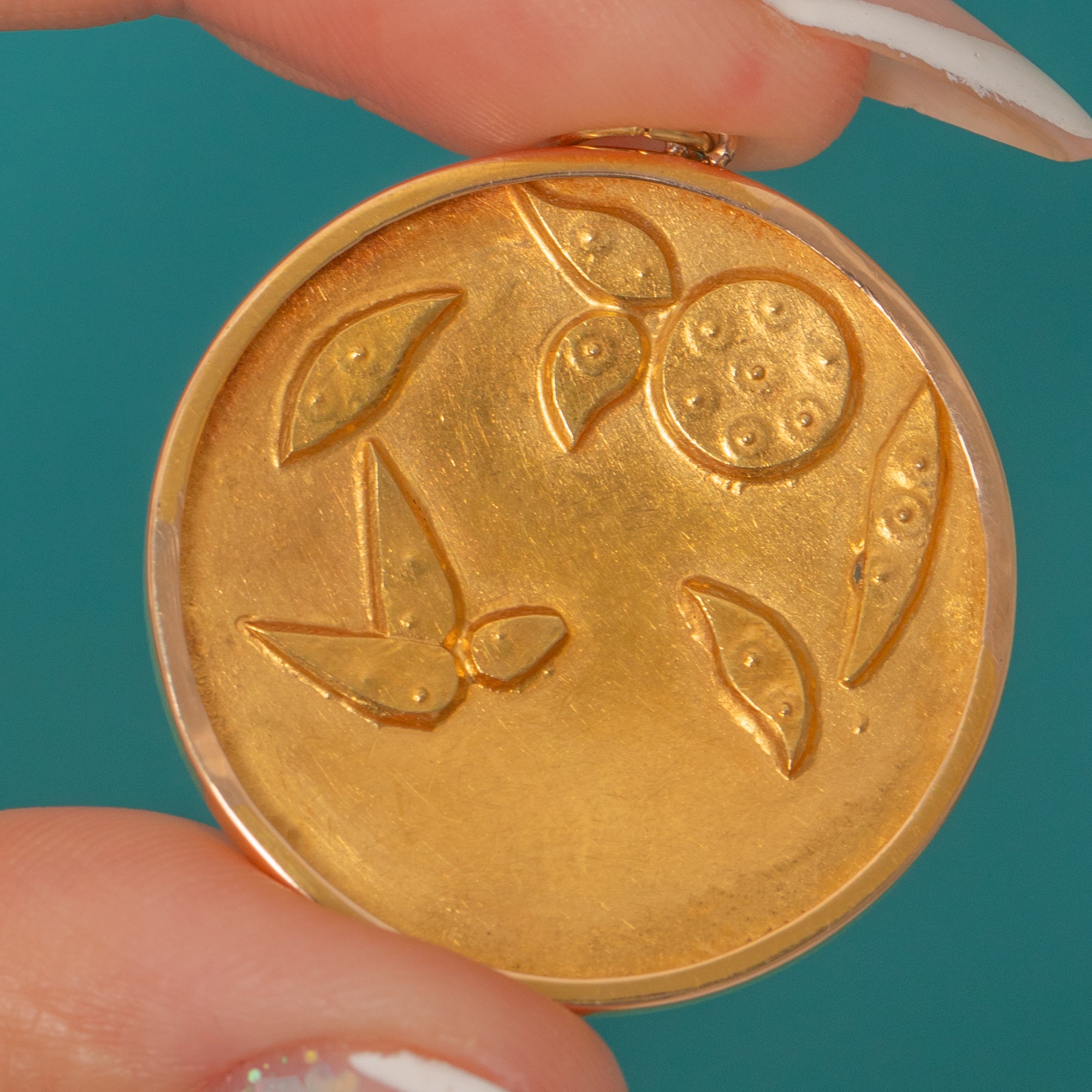 The reverse is finished with a gently raised foliate-and-berry motif within a smooth rim, a graceful detail that completes the piece. Elegant and timeless, it showcases the refined craftsmanship and decorative flair of the Edwardian era.