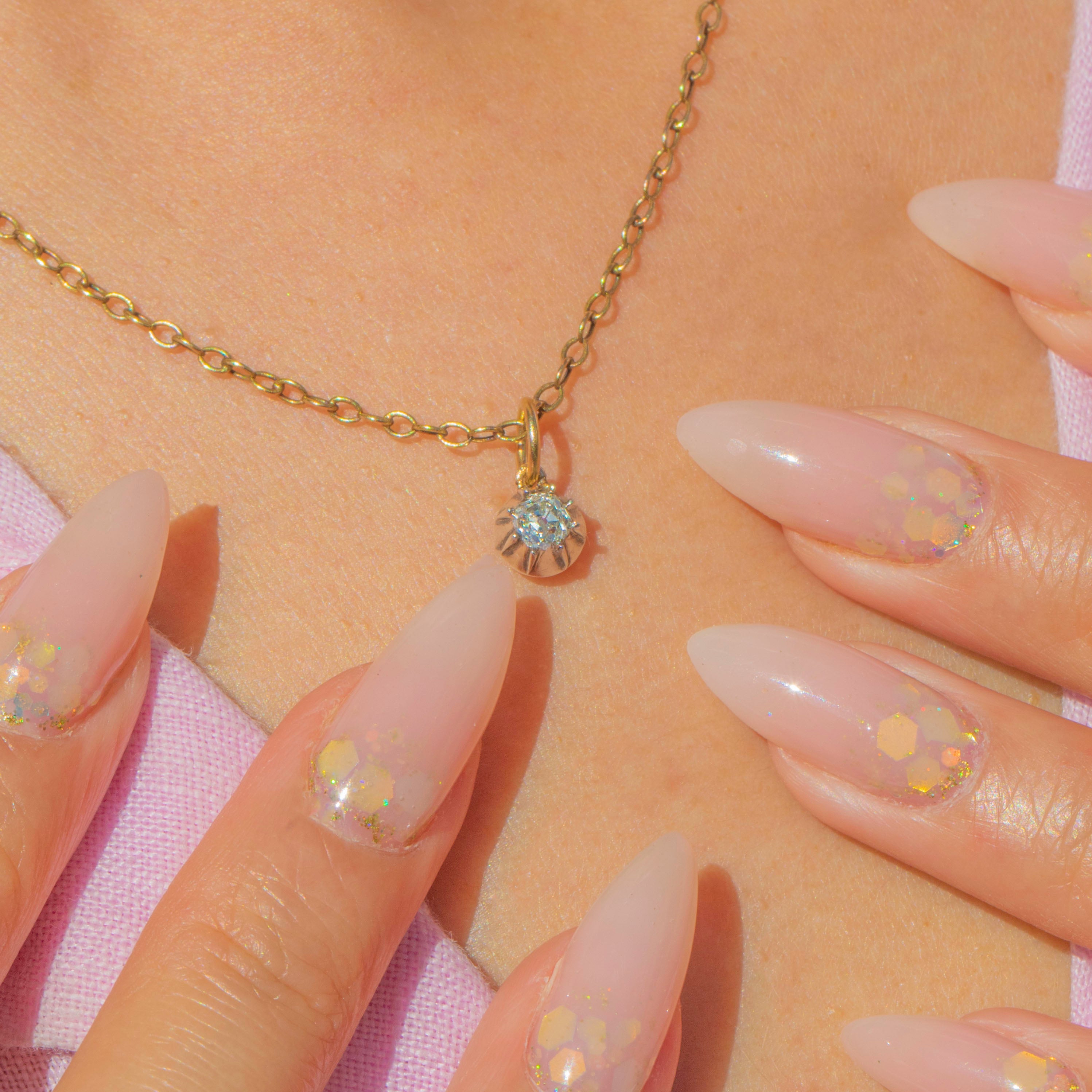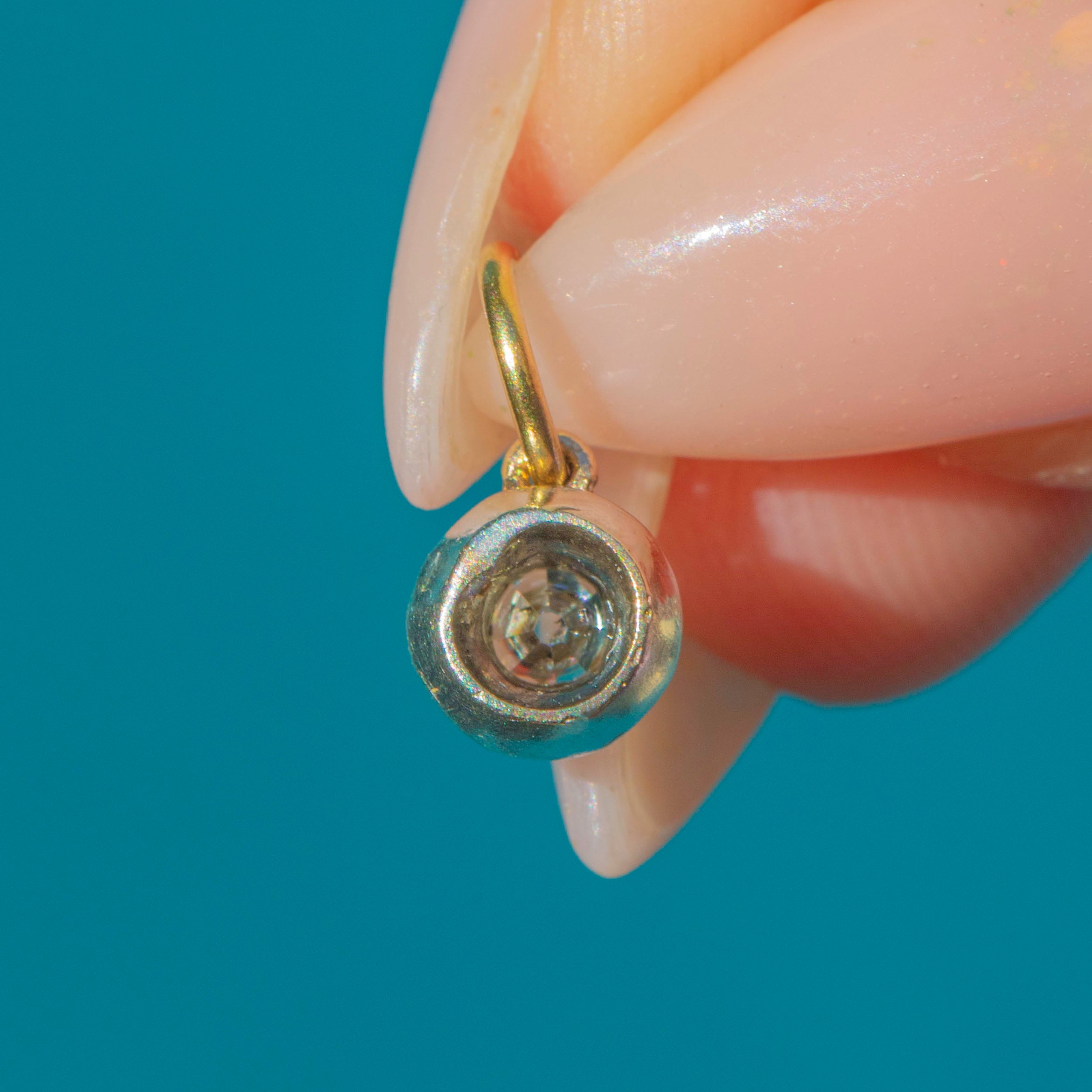 The Diamond is mounted in a traditional silver collet setting backed in 18ct Gold, with an 18ct Gold jump ring for wear. Dainty and timeless, this jewel would make a wonderful addition to a charm bracelet or suspended from a fine antique chain.