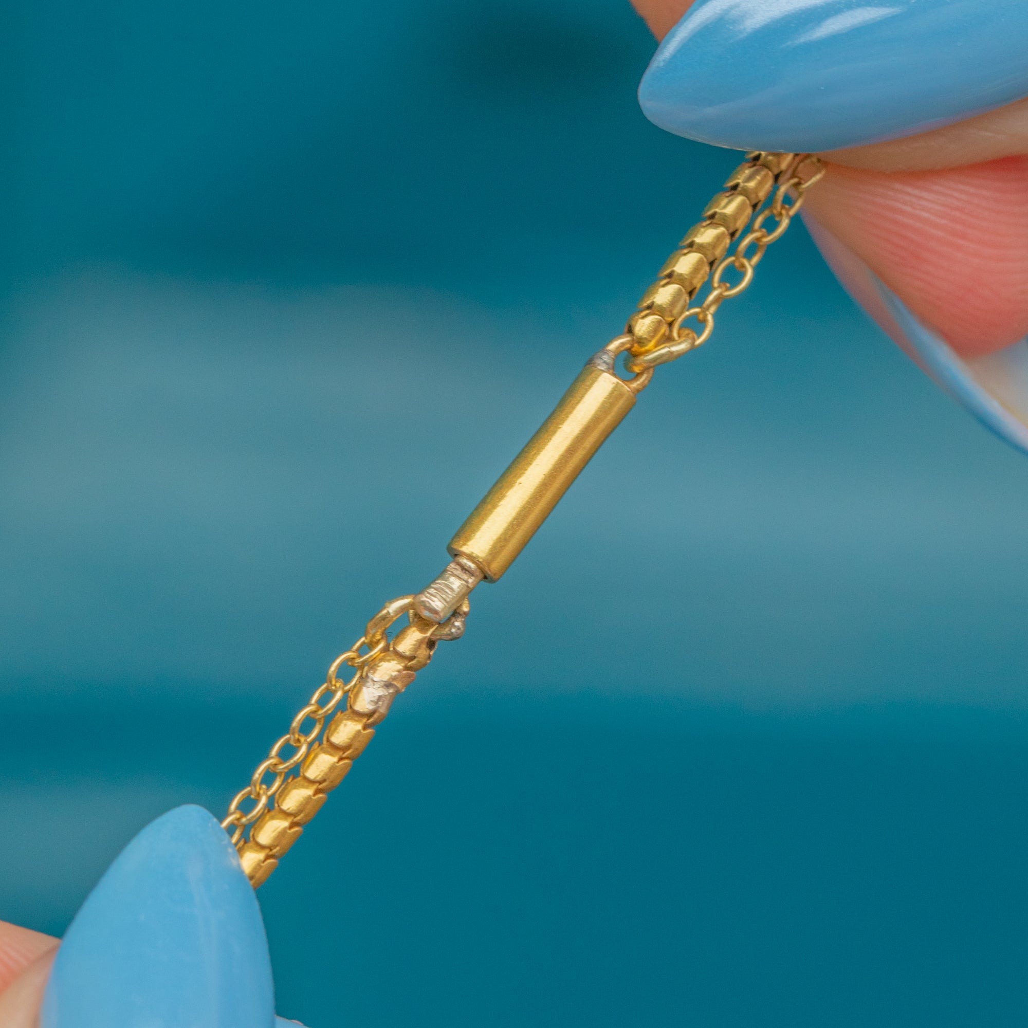 The snake chain provides a wonderful texture, allowing for a flowing movement akin to liquid Gold. Complete with a barrel clasp and possibility to extend up to two inches, this versatile Victorian chain is a must-have.