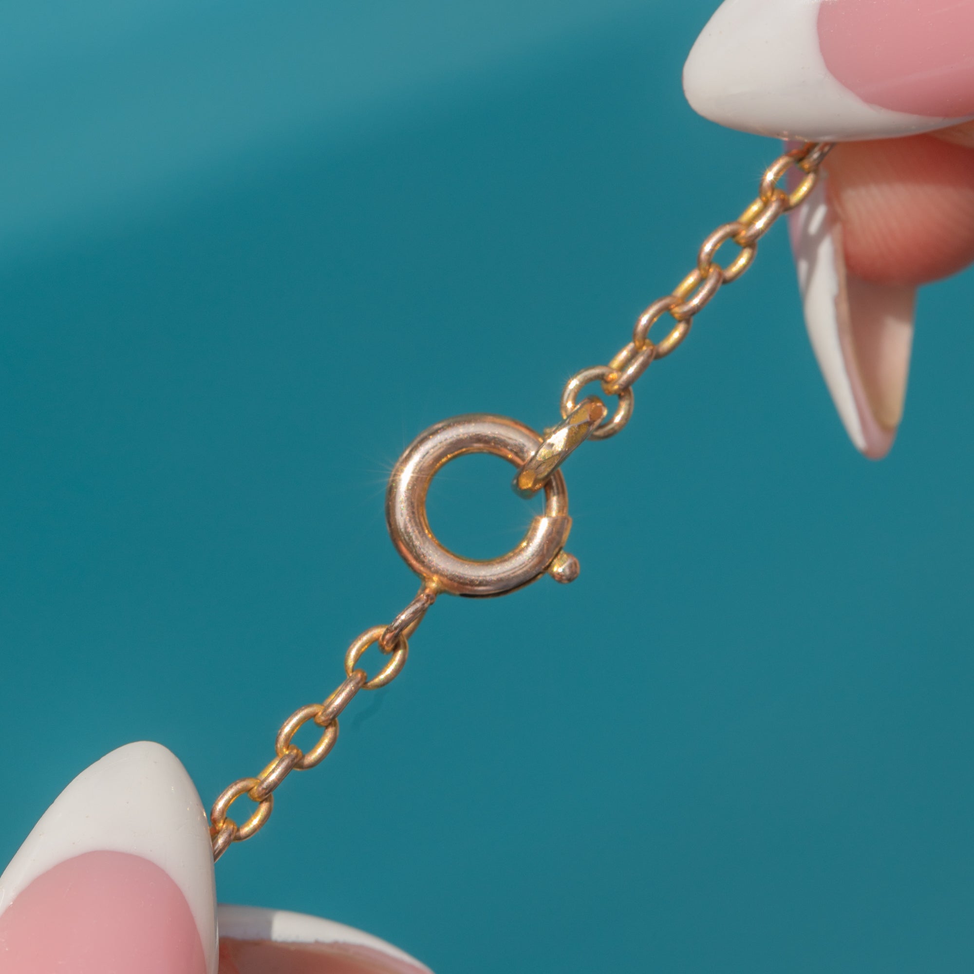 EXCELLENT: Each link is uniform and secure, and the gemstones are secure in their settings. The bolt-ring is in perfect working order and with only minor signs of wear commensurate with age, this antique chain is a must-have piece.