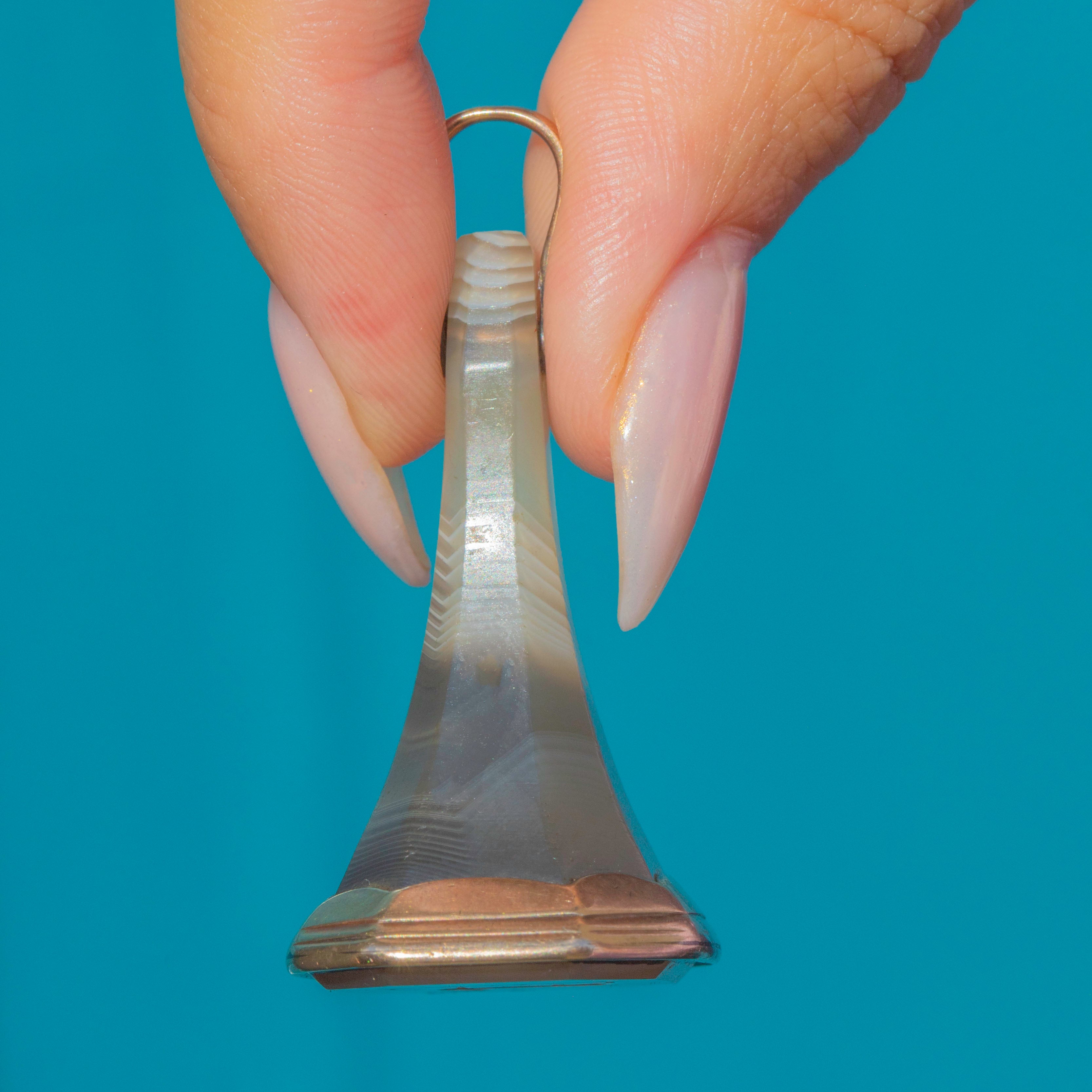 Heavy at 14.8g and measuring 45mm long, this fob is both substantial and highly decorative. Once used as a watch chain wax seal, today it makes a bold pendant or a collectable piece of antique jewellery.