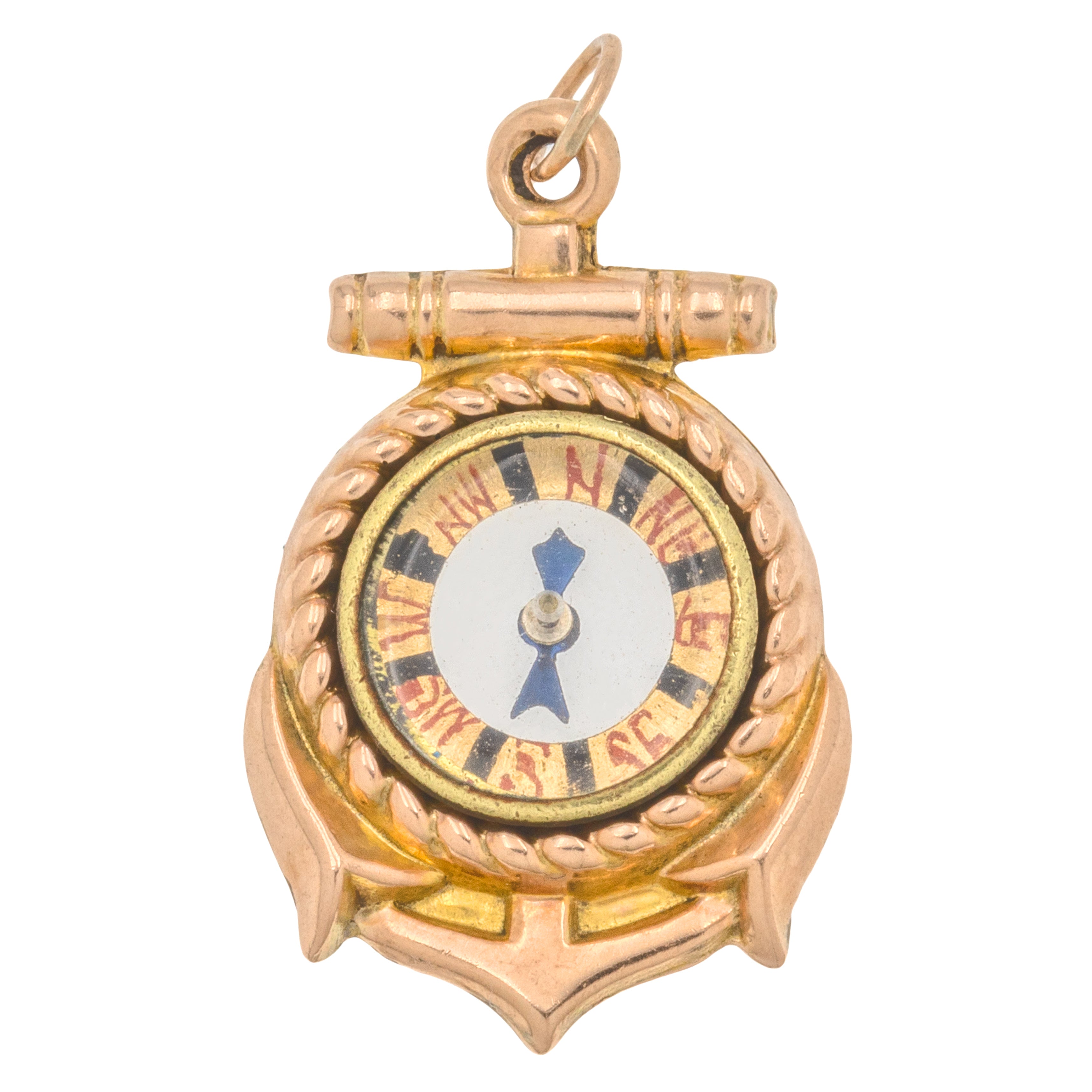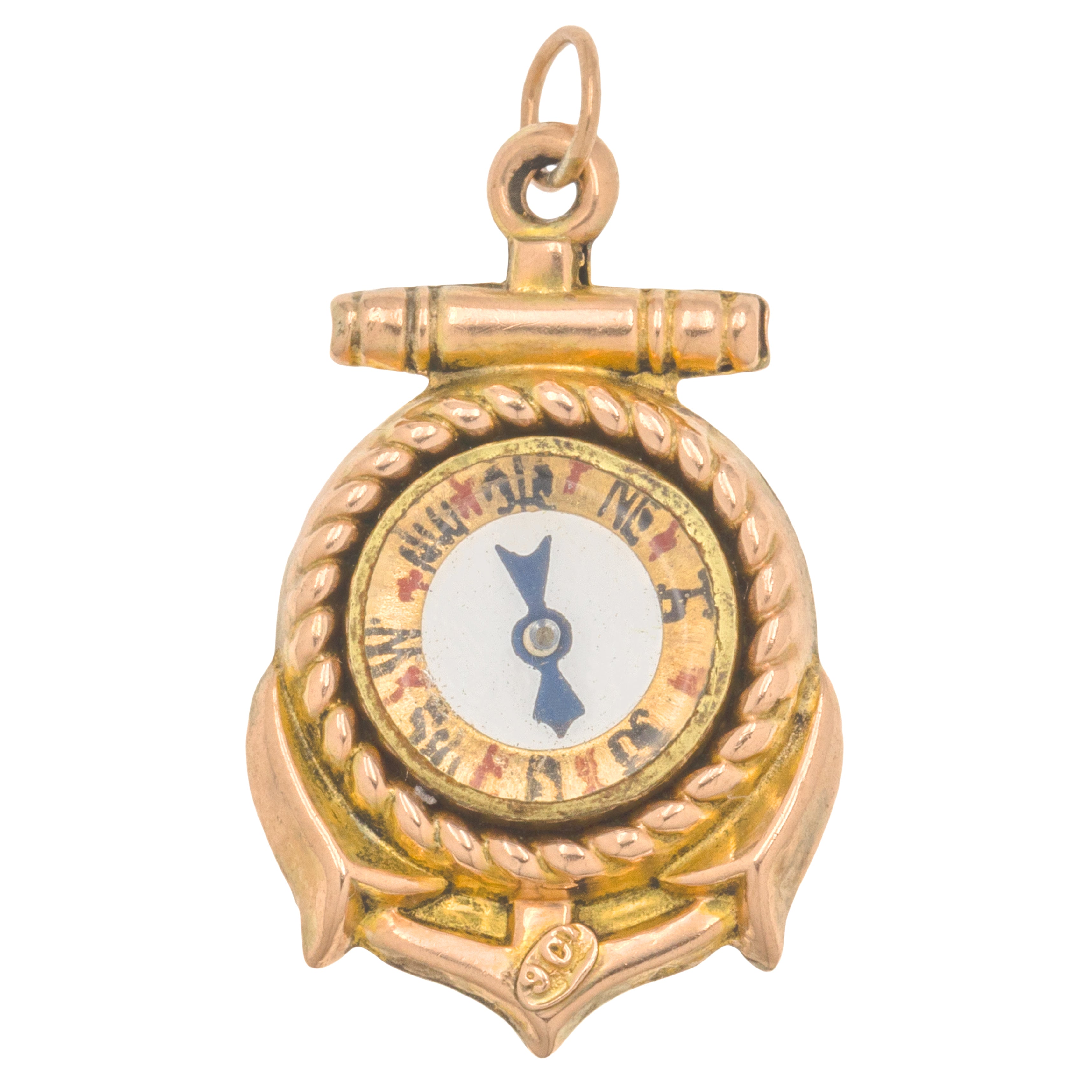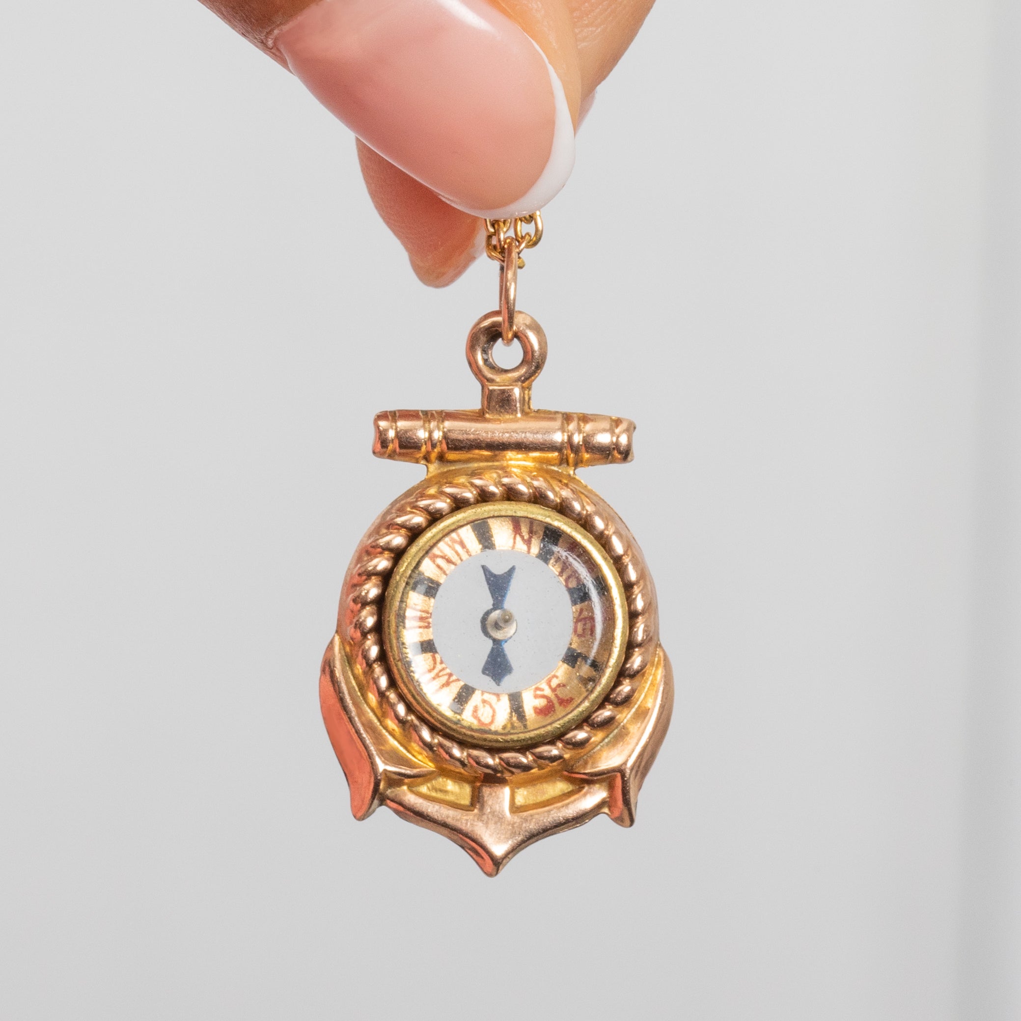 VERY GOOD: This antique 9ct Gold anchor compass pendant is in very good condition. The Gold is bright and buttery with only some very minor age-related wear throughout. All of the details have remained crisp, and with the use of the jump ring, you can wear this charming Victorian pendant with confidence.