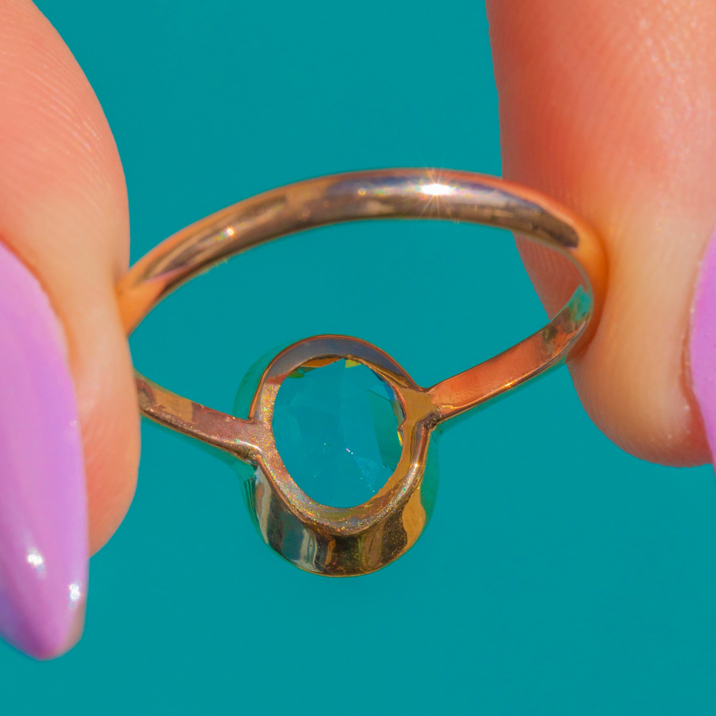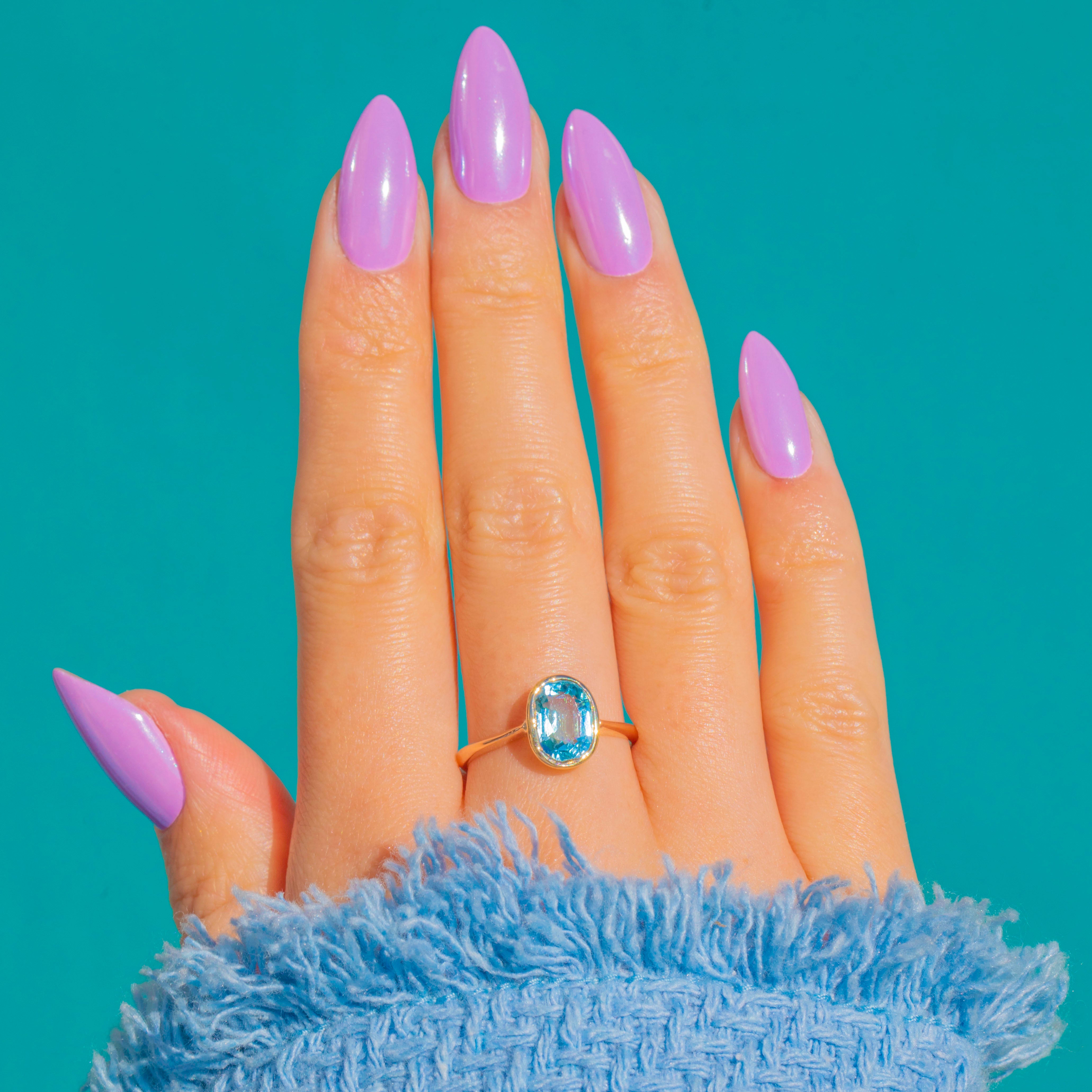 Its slender, high-polish band and low-profile silhouette make it a beautiful everyday piece and an easy stacker, while the clean bezel lets the tranquil blue of the Aquamarine take centre stage. An understated treasure with timeless early 20th-century charm.