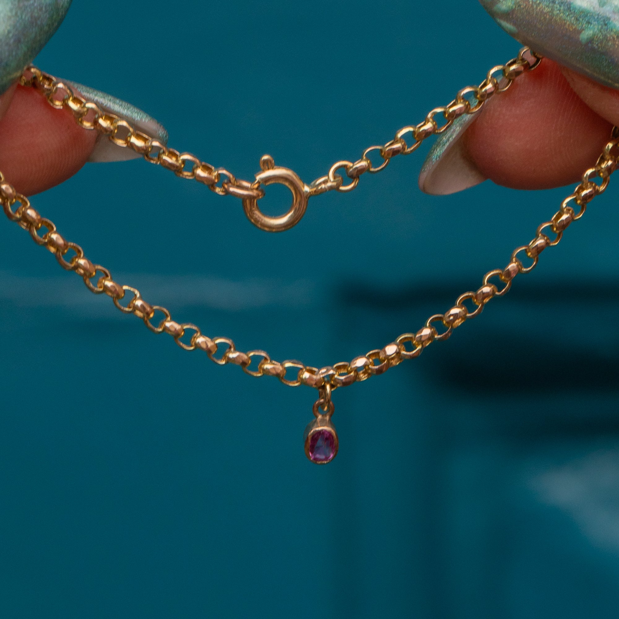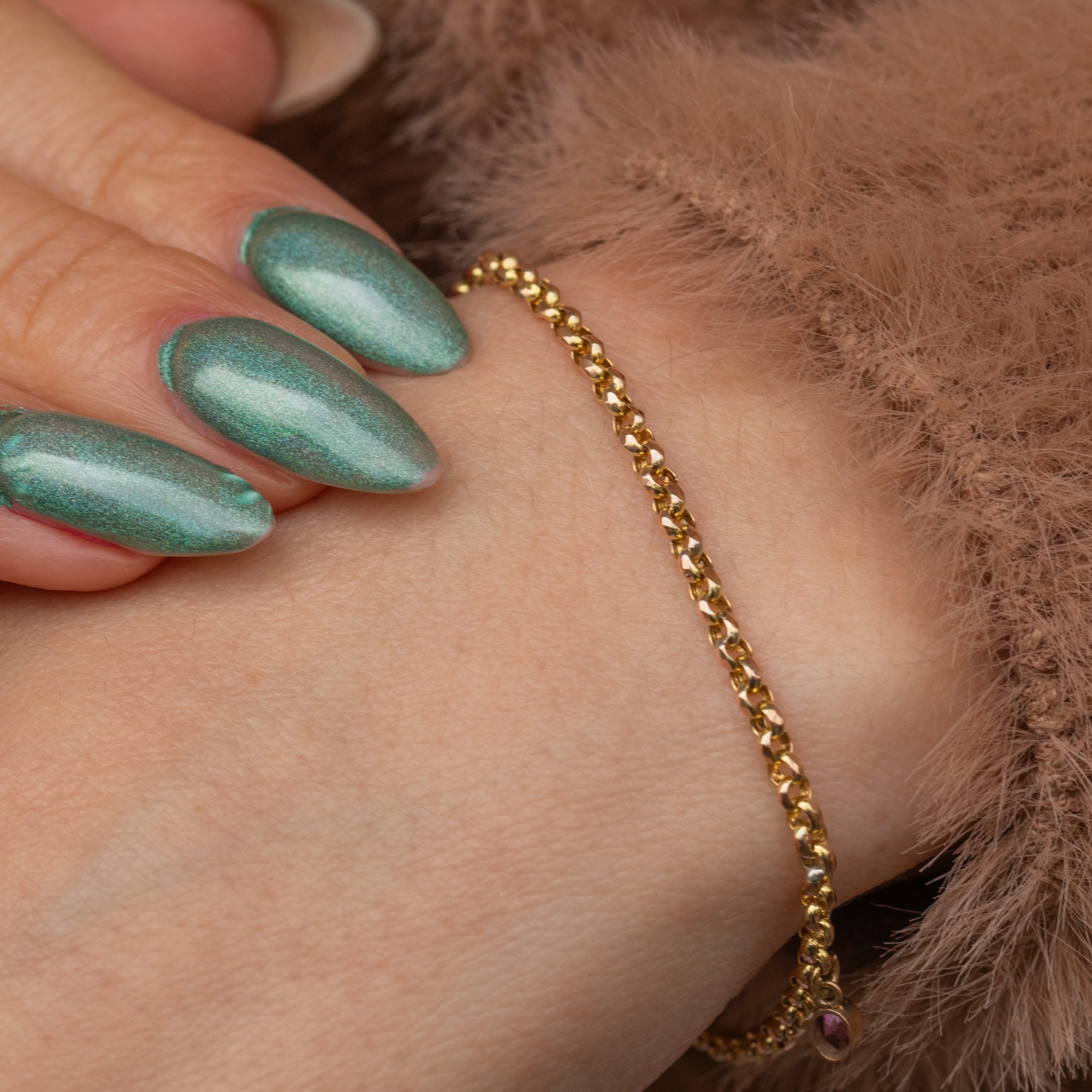 The fuchsia pink Ruby adds a subtle pop of colour and the delicate size allows for comfortable wear. With Rubies said to protect, she is the perfect Victorian bracelet to adorn your wrist every day!