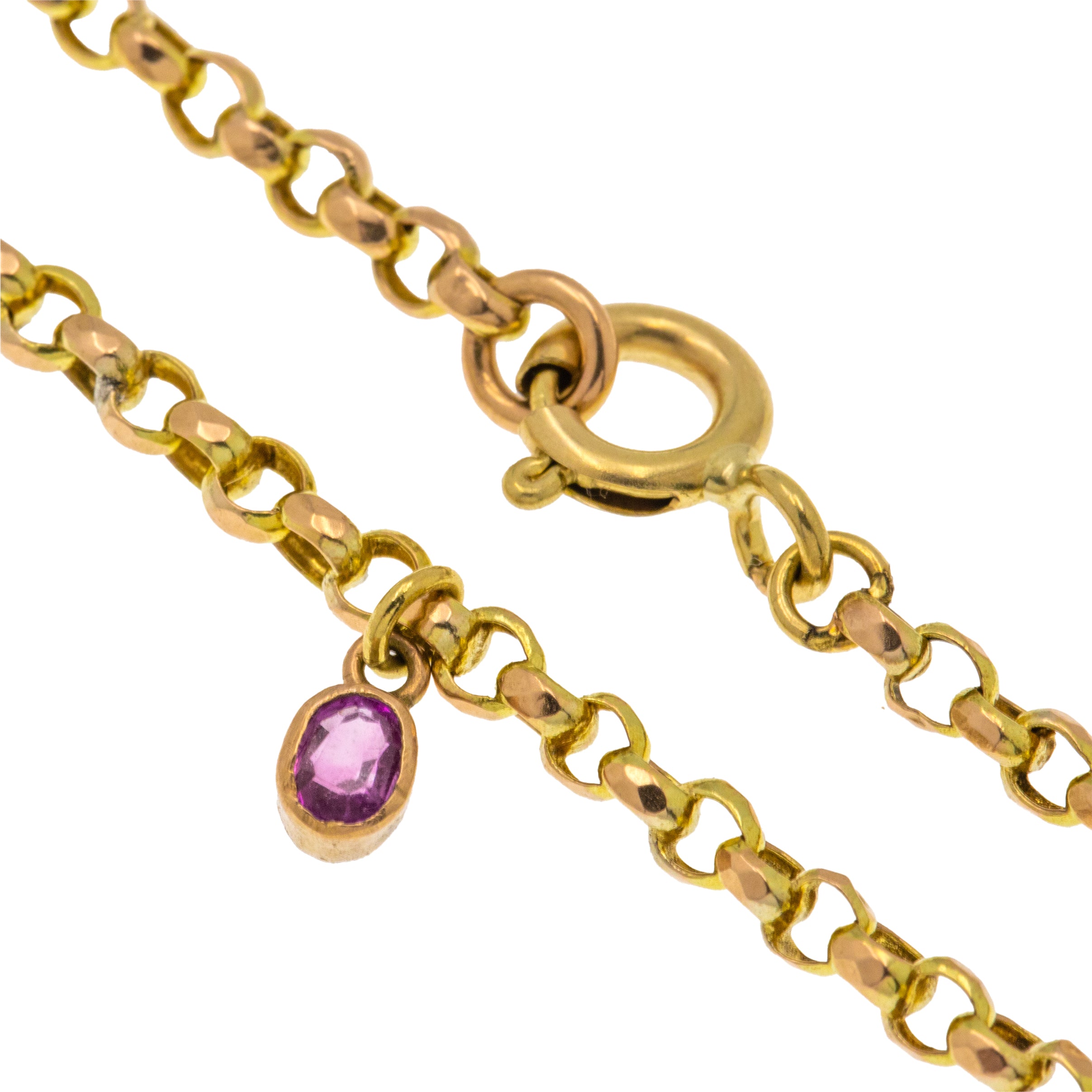 EXCELLENT. With little to report, this antique 9ct Gold belcher bracelet is in excellent condition! The Gold is bright with a secure set of links and a fully functioning bolt ring to finish. The Ruby charm is in superb condition throughout, adding a subtle splash of colour and, although not original to the bracelet, it matches very well! There is little to no wear, making her a fine investment piece.