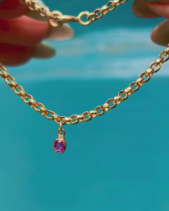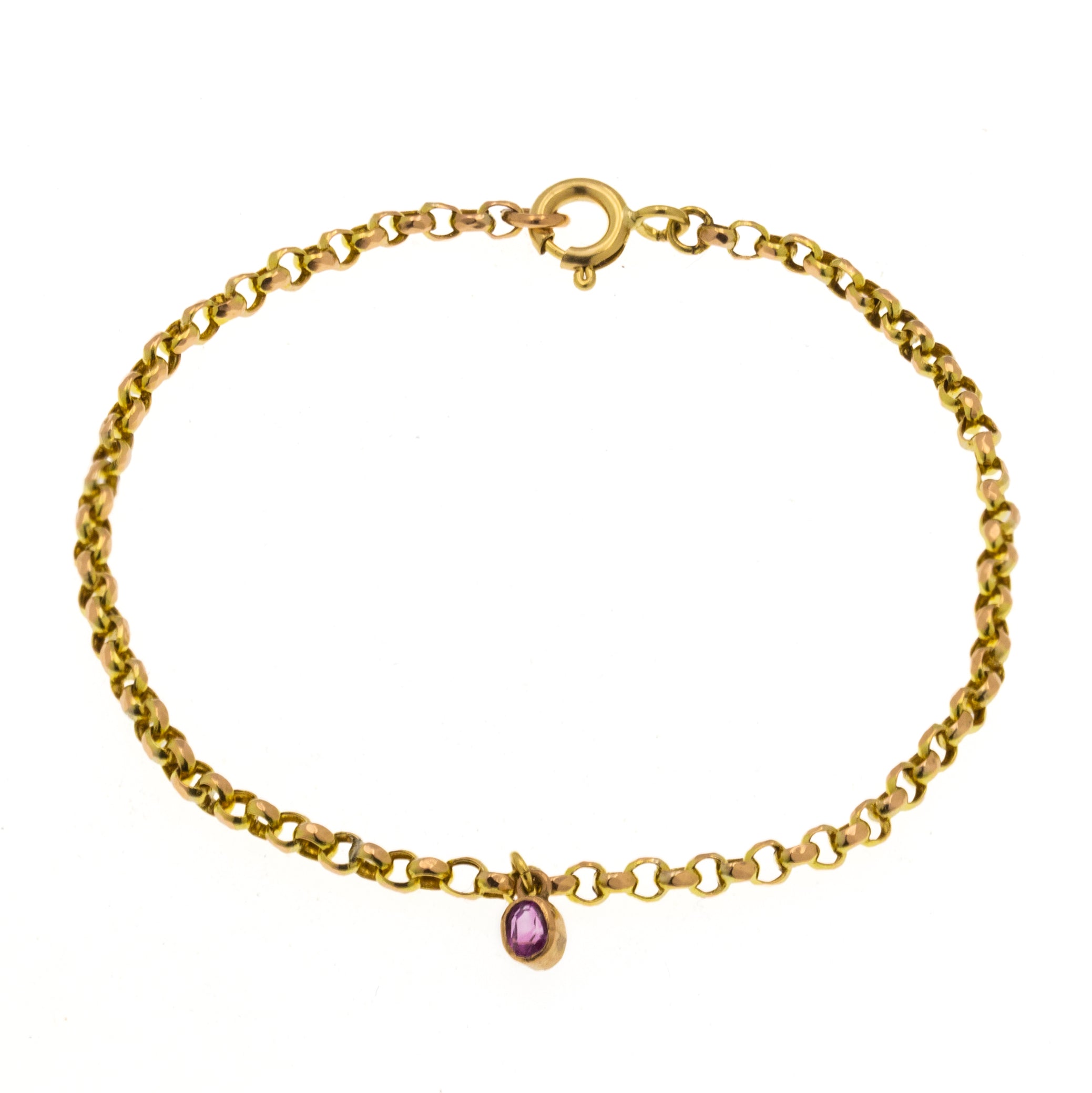 Antique 9ct Gold Belcher Bracelet, with Ruby Charm