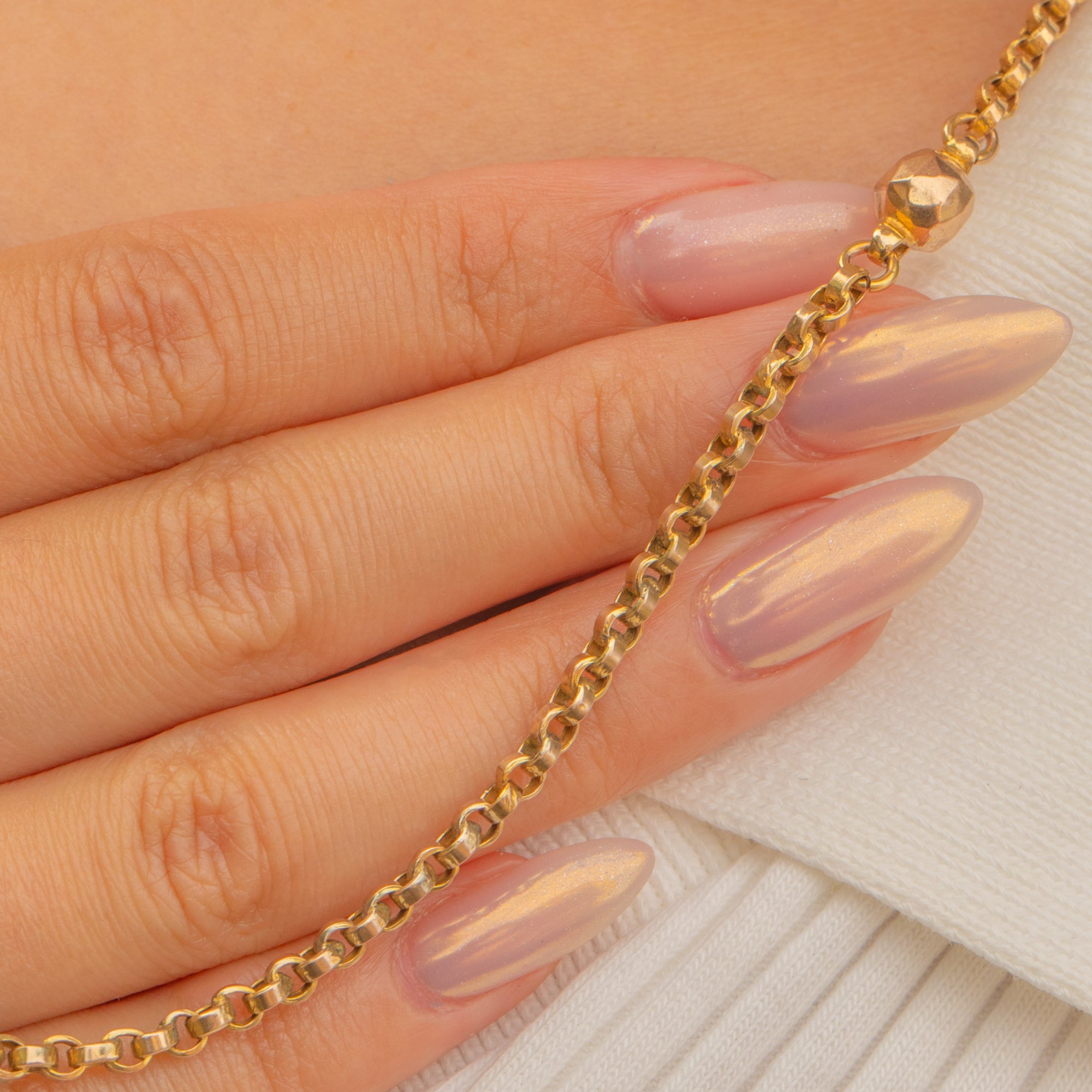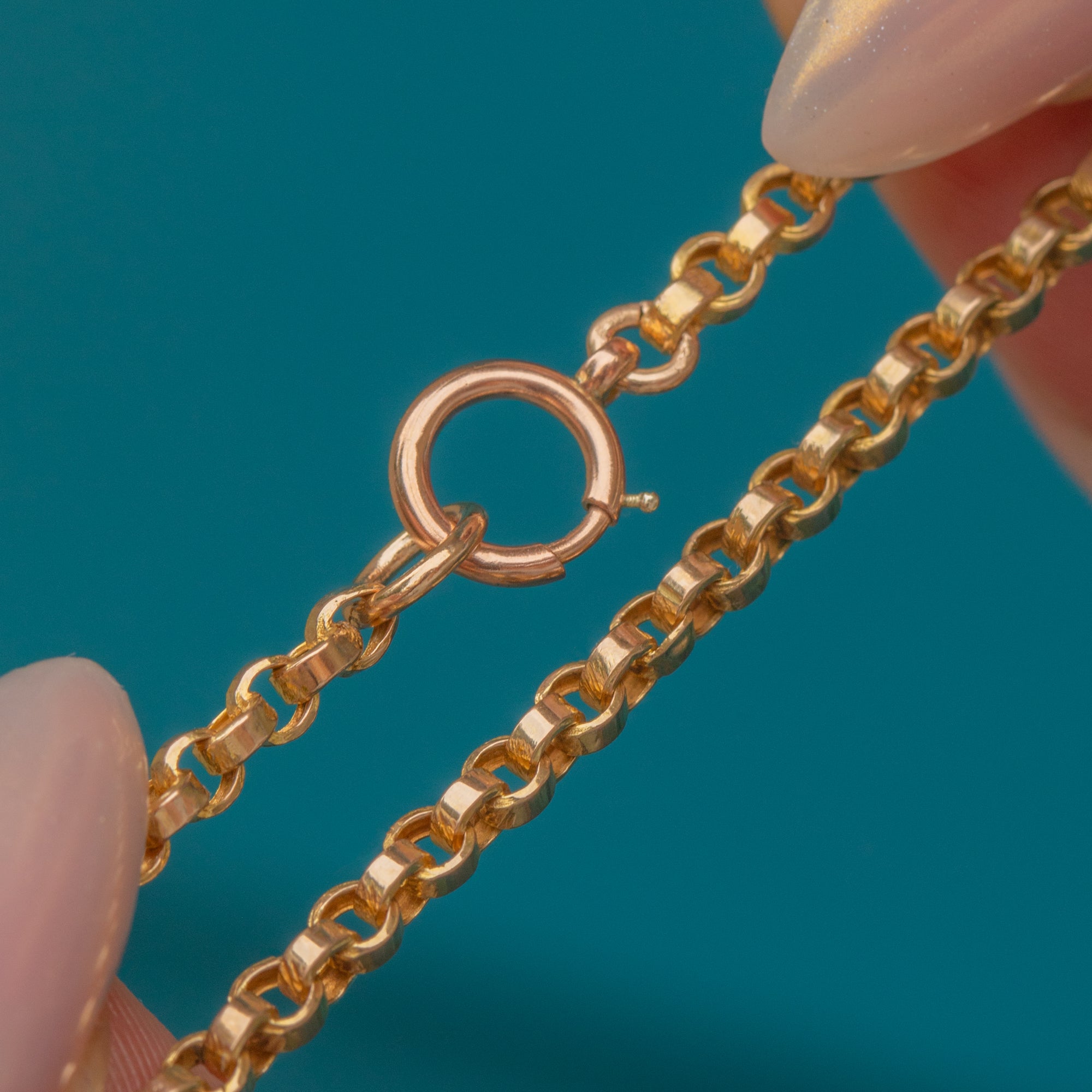 An elegant Antique 9ct Gold Belcher chain, enhanced with faceted Gold beads for added sparkle and texture. The classic Belcher link design gives this chain a timeless appeal, perfect for layering or wearing solo with a pendant.