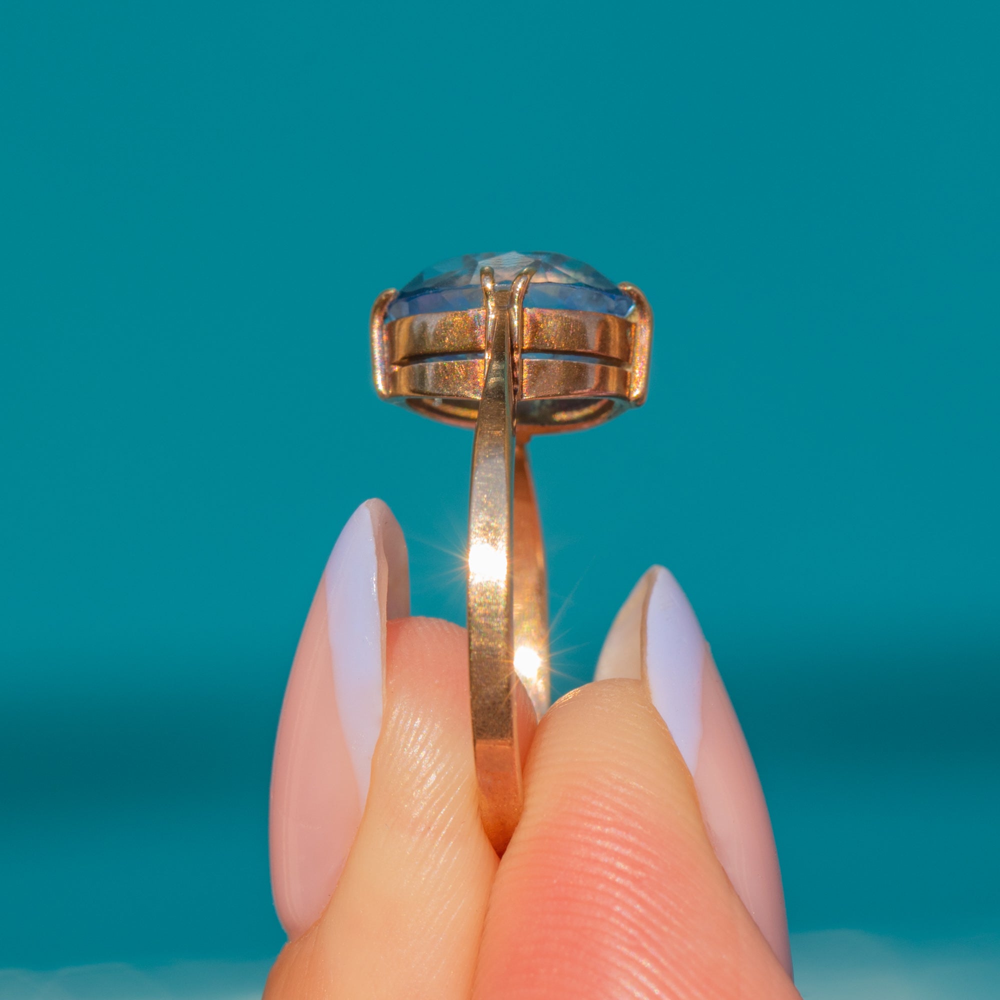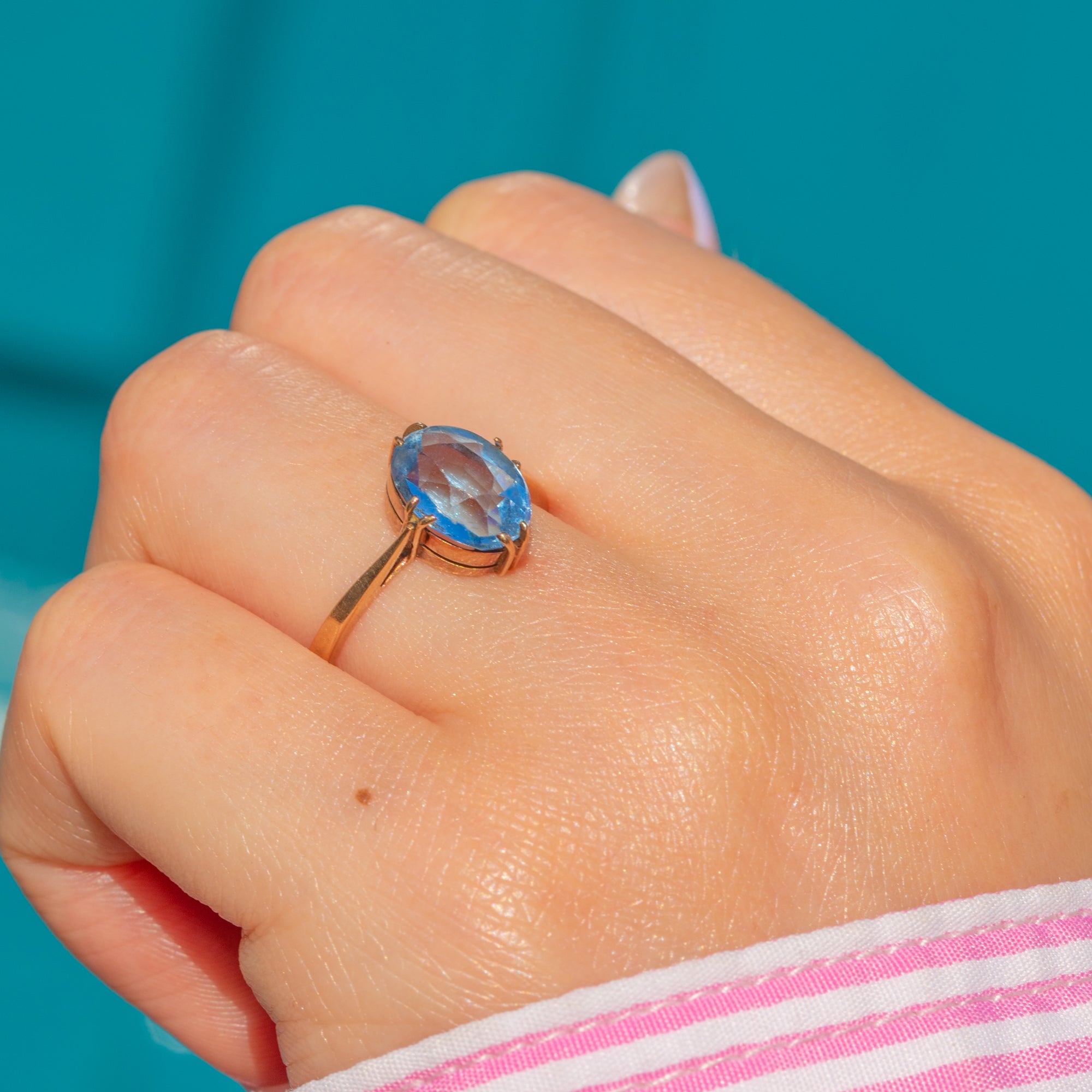 Add a pop of colour to your attire with this antique 9ct Gold blue Paste solitaire ring!