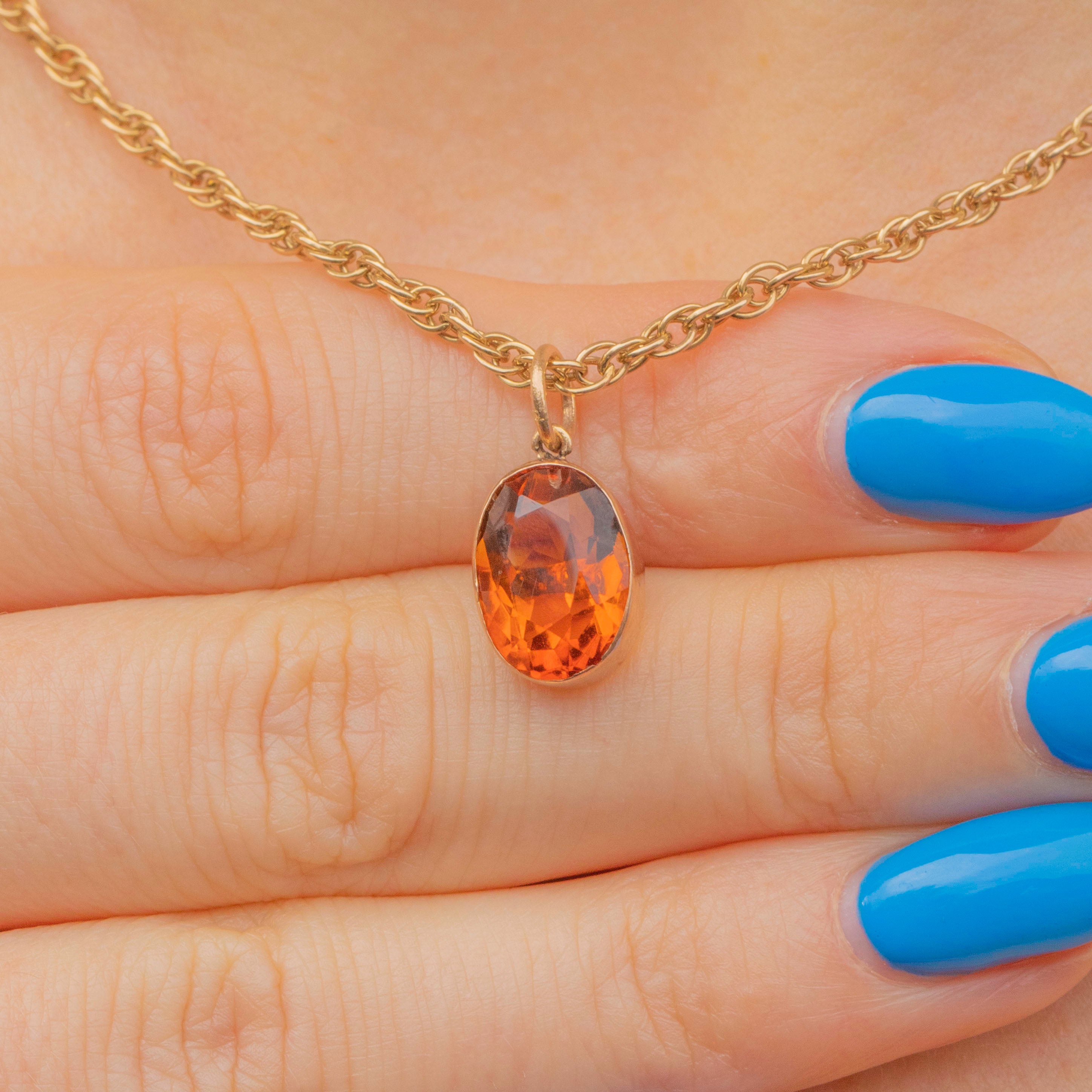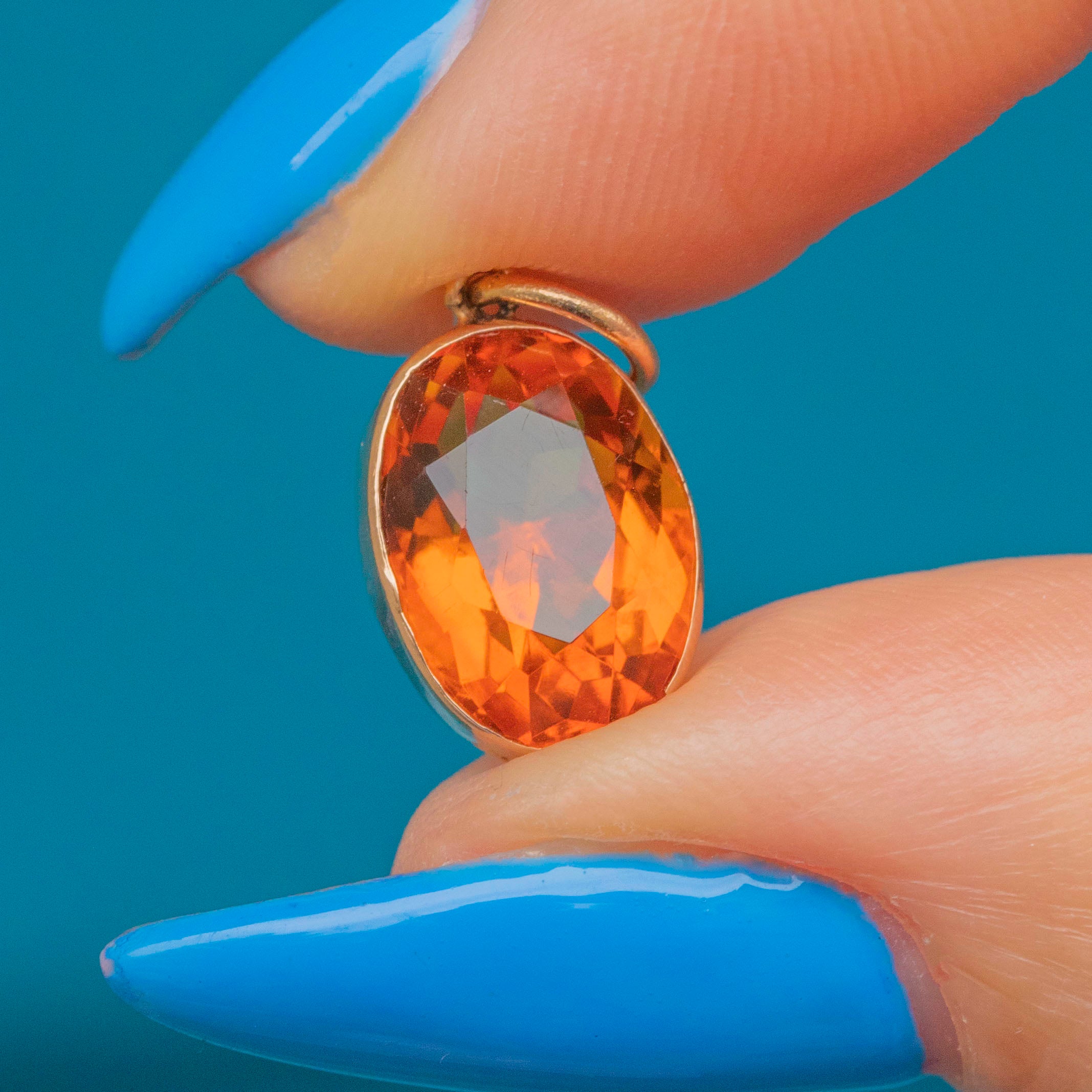 VERY GOOD-EXCELLENT. This antique 9ct Gold Citrine charm is in lovely condition. The Citrine has wonderfully crisp facets and is free form chips or abrasions. The Gold is radiant with only minor signs of wear to the bezel setting, commensurate with age, but this does not impact the integrity of the piece and the Citrine remains securely set. Complete with a generously sized jump ring, all this Victorian pendant needs is a chain to adorn!