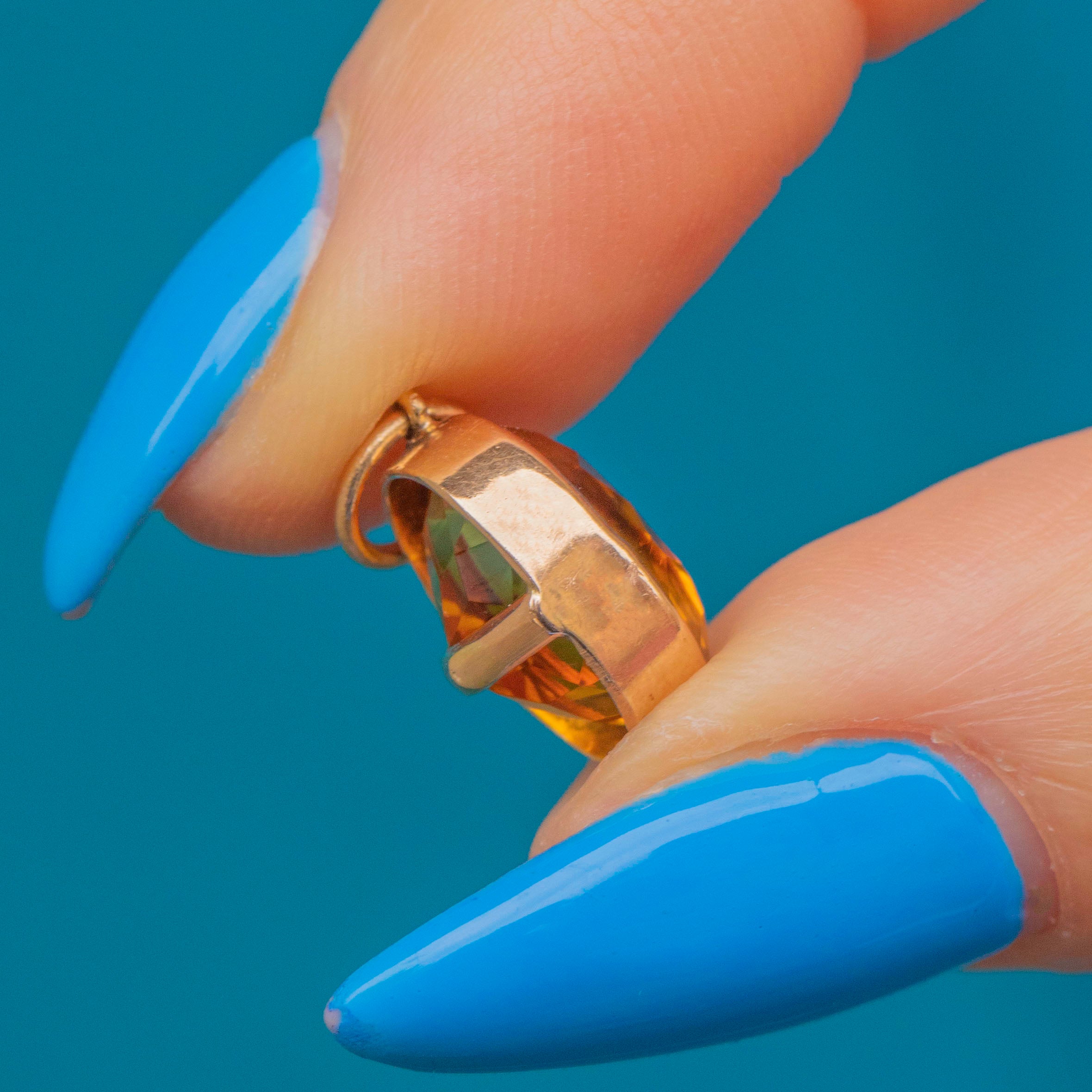 Add a drop of sunshine to your collection with this antique 9ct Gold Citrine charm! Her 2.65ct Citrine is fabulously faceted, glistening under the light in a stunning syrupy hue.