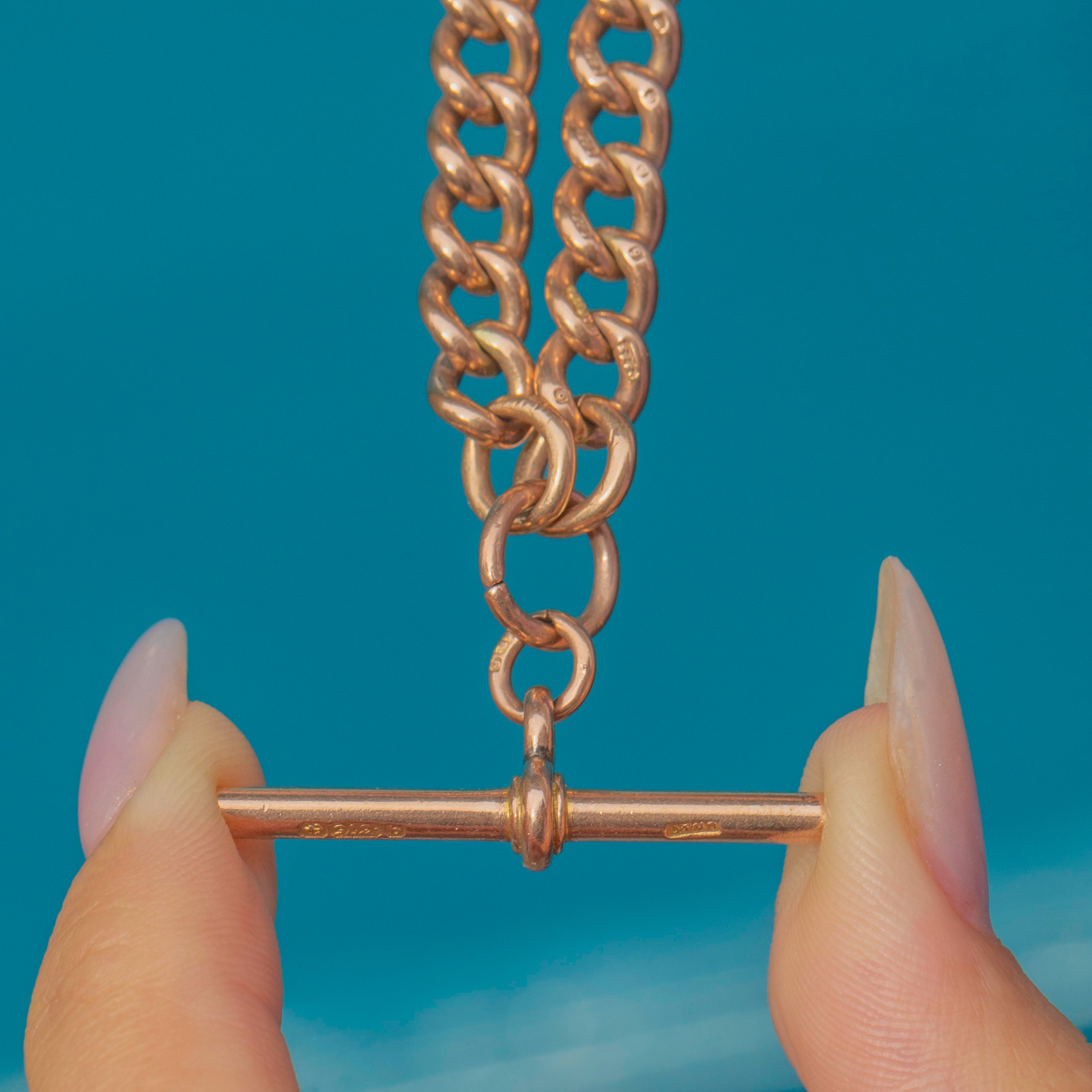 EXCELLENT: The links are strong and evenly shaped with no wear, thinning, or damage. Both the dog-clip and bolt ring work perfectly, and the Gold has retained a rich antique colour. A superb example of a Victorian Albert chain in outstanding condition.