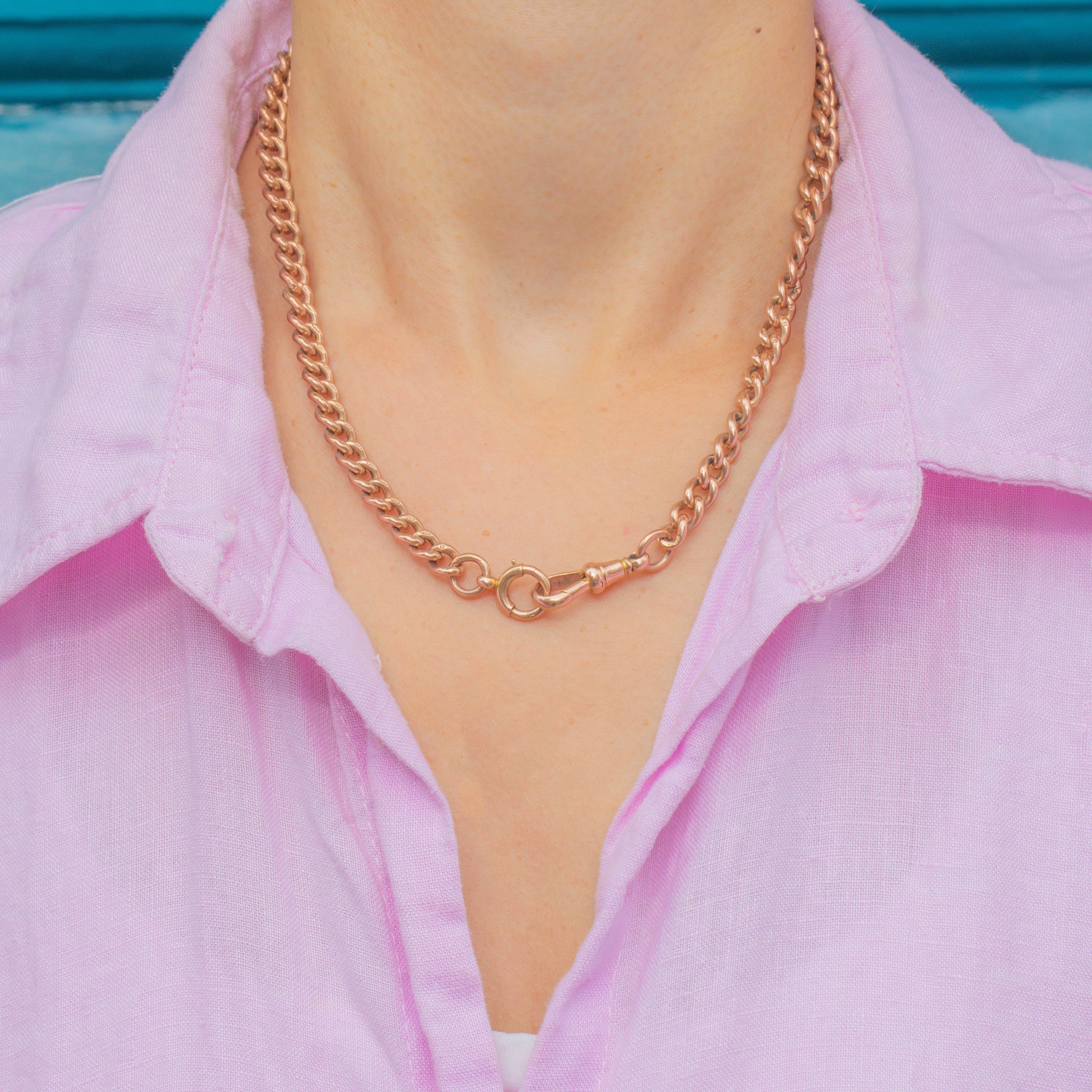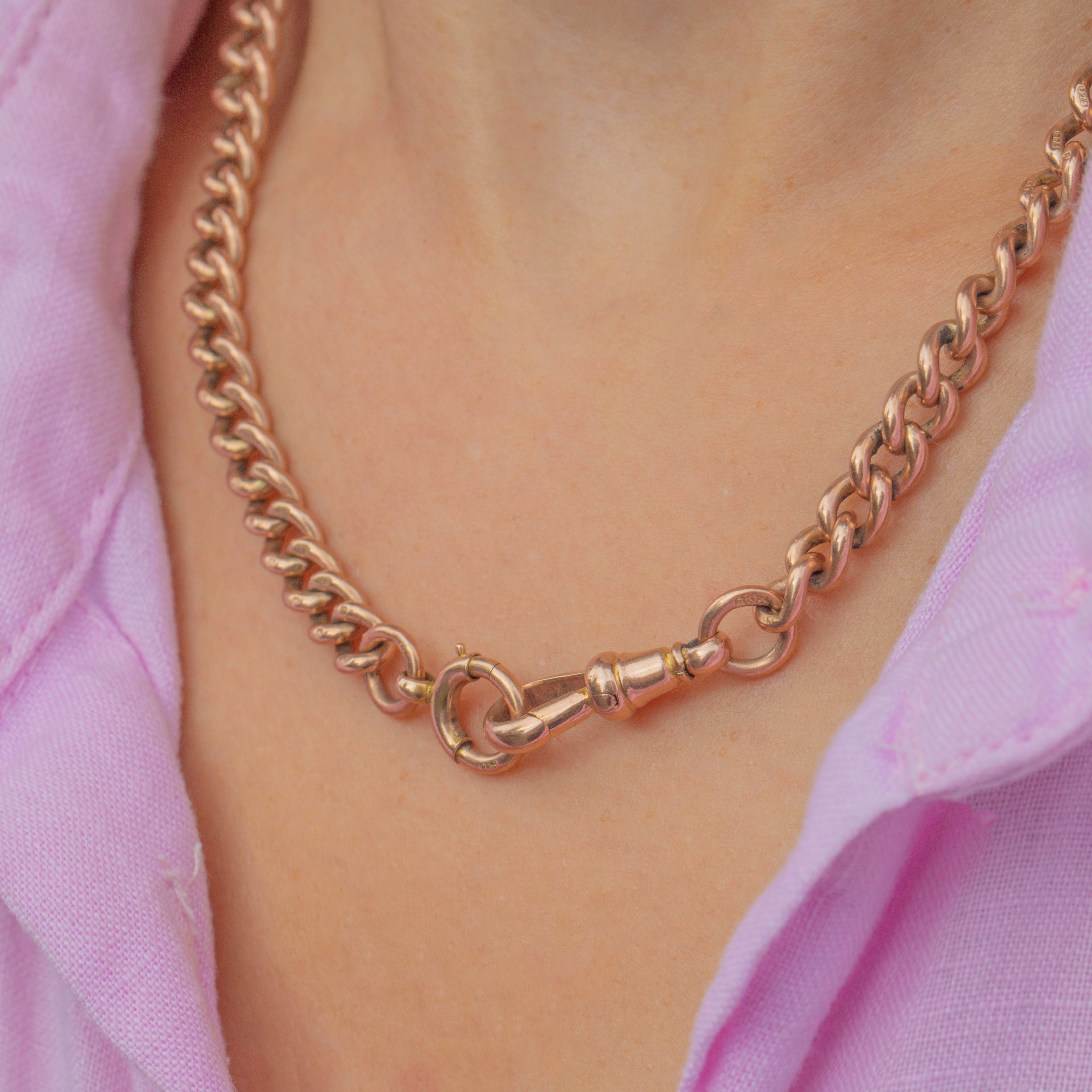 Antique 9ct Gold Curb Link Albert Chain with Dog-Clip & Bolt Ring, 41.6g