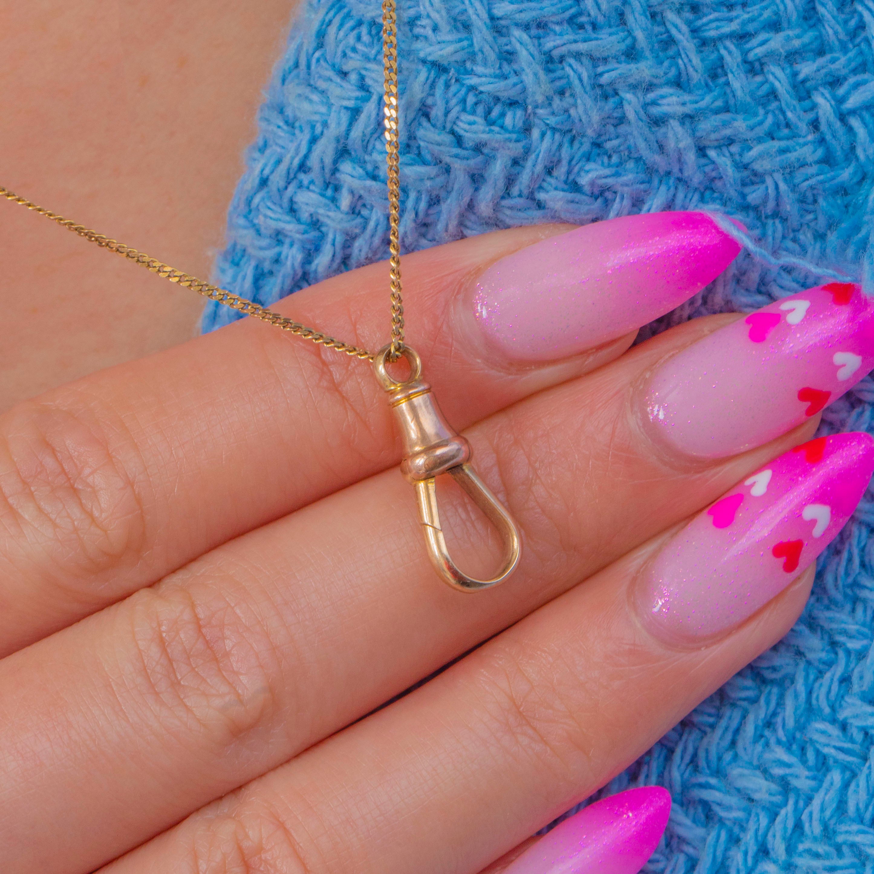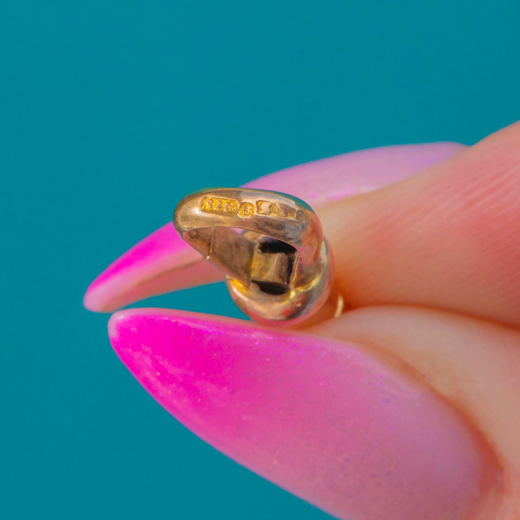 Sleek, petite and beautifully engineered, this Victorian 9ct Gold dog clip has timeless utility and understated elegance. Its tapered collar and sprung hook silhouette bring a subtly industrial edge, with a warm golden glow and smooth, polished finish.