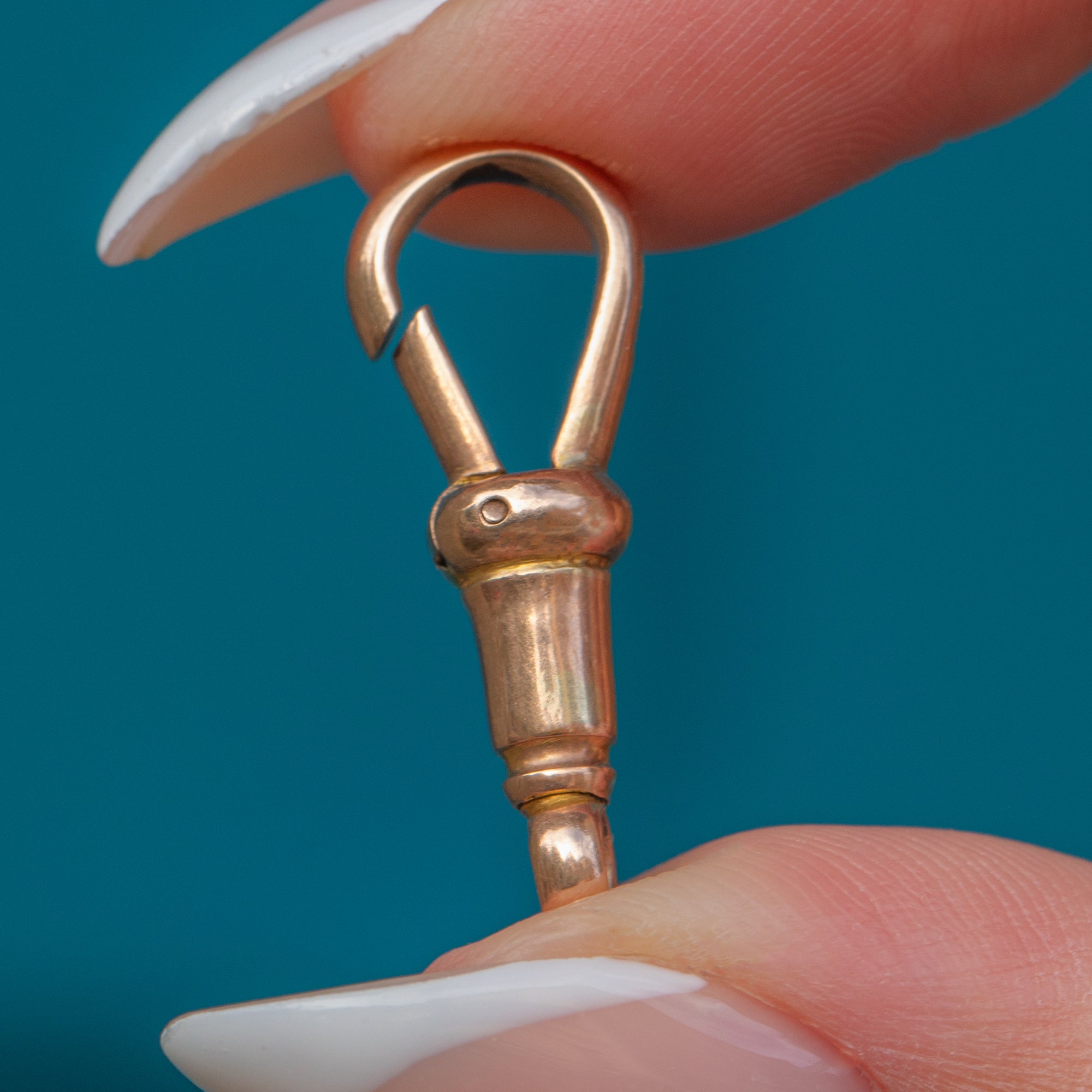 This Antique Victorian dog clip is crafted in solid 9ct Gold, a versatile and collectible jewellery fitting from the 19th century. Substantial in size at 22mm long, it is perfect for attaching charms, fobs, pendants, or chains. Its warm Gold tone and classic design make it both practical and stylish, whether worn as part of a necklace, bracelet, or charm holder.