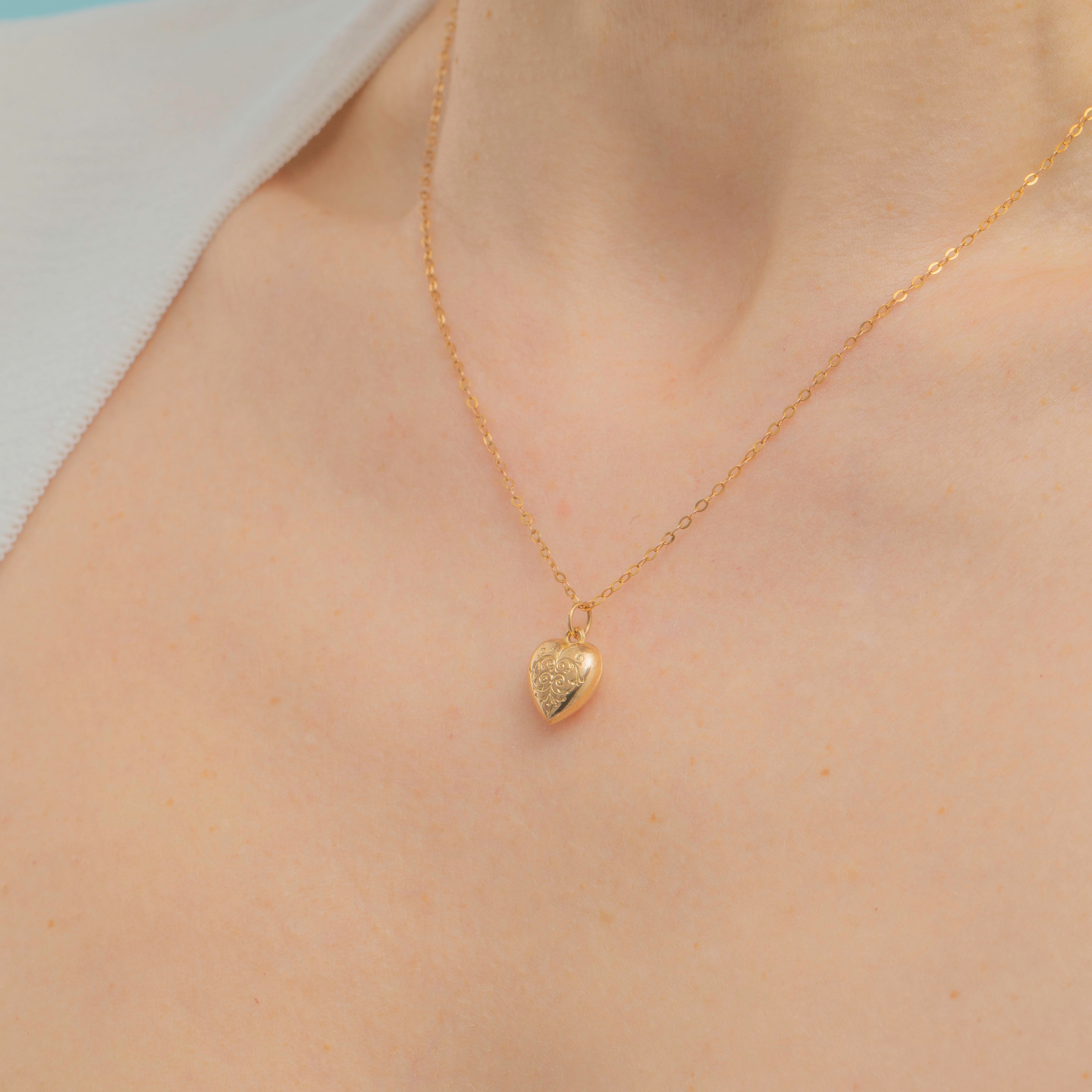 Antique 9ct Gold Engraved Heart Charm with 16" Chain