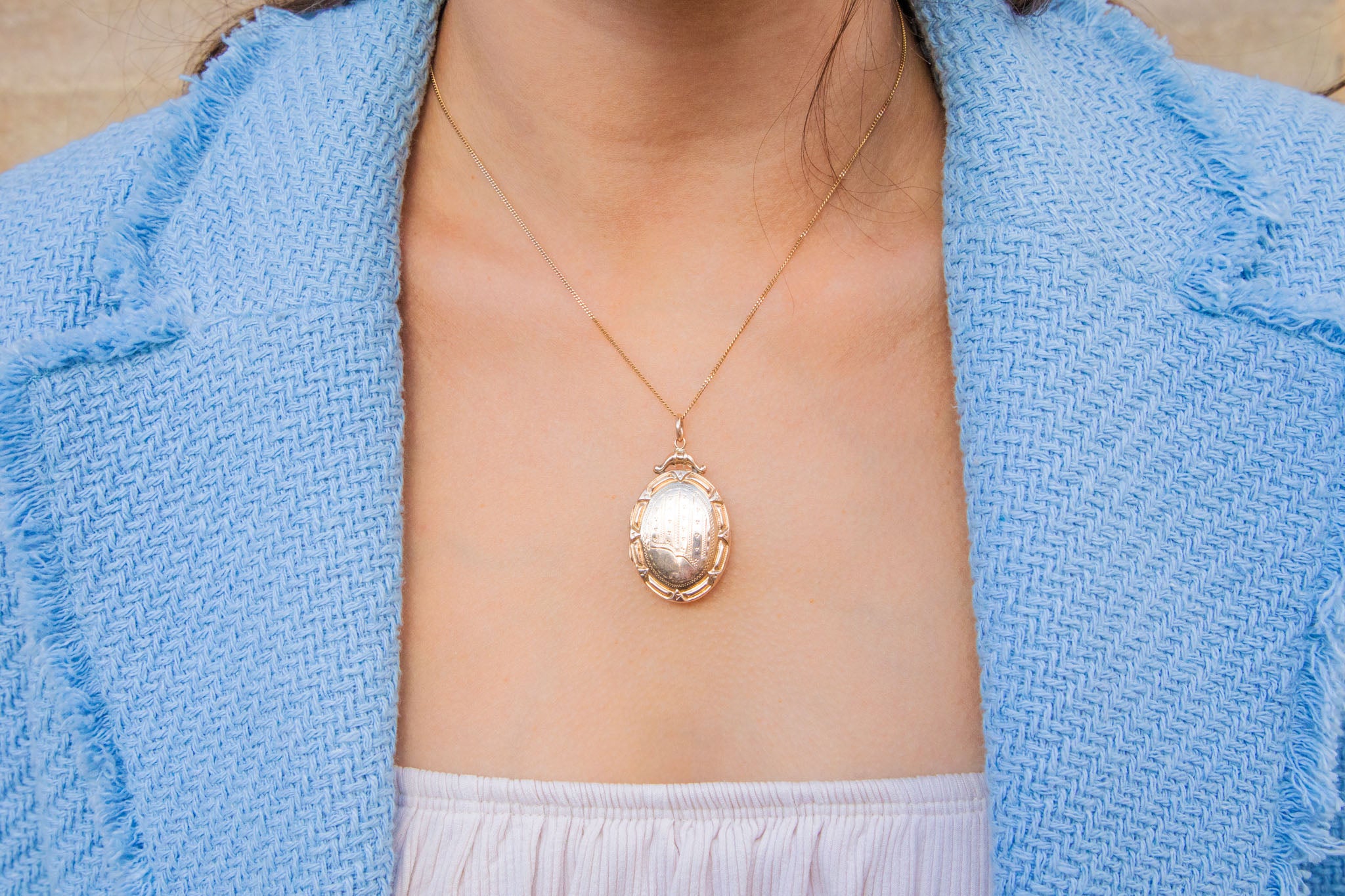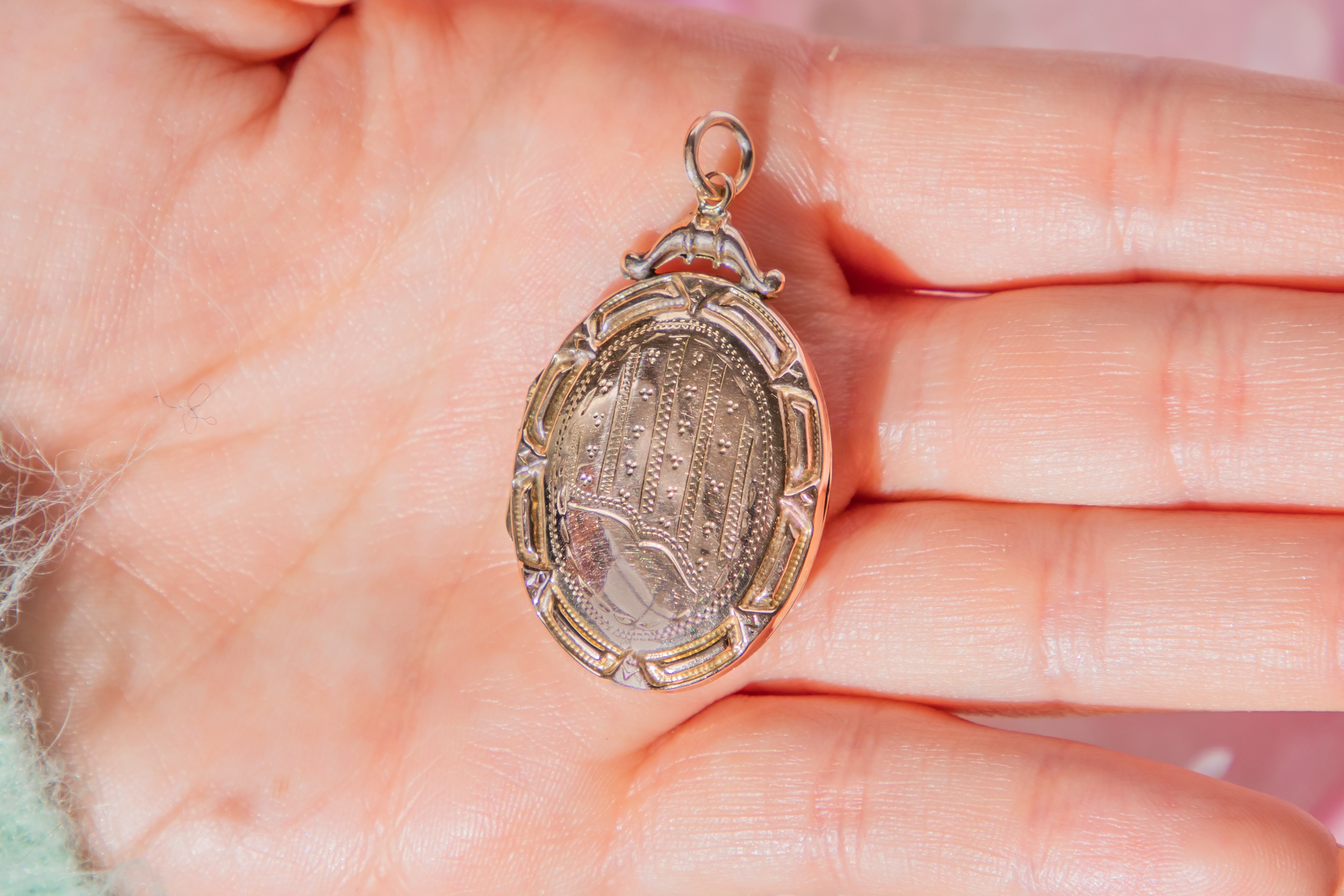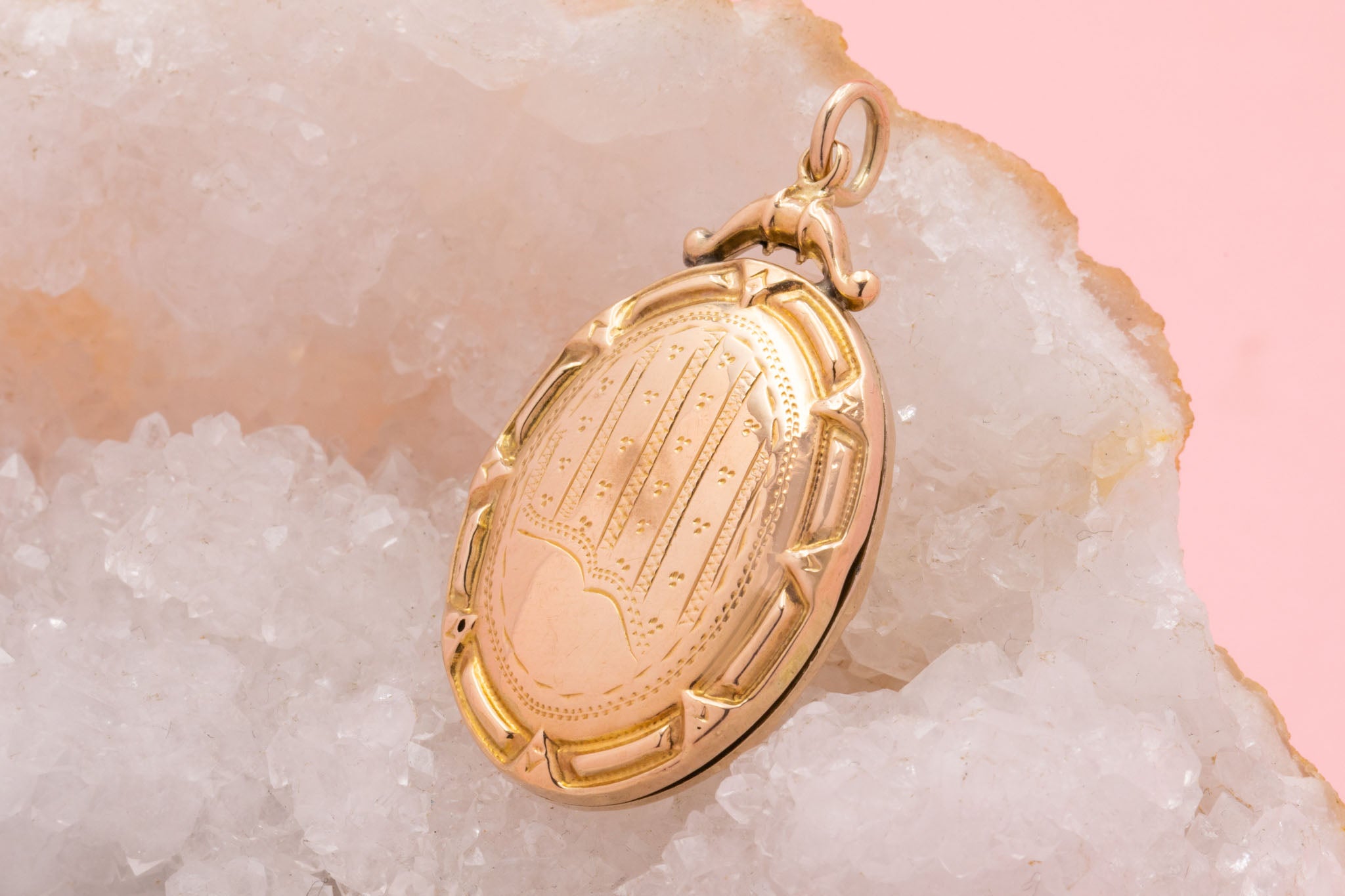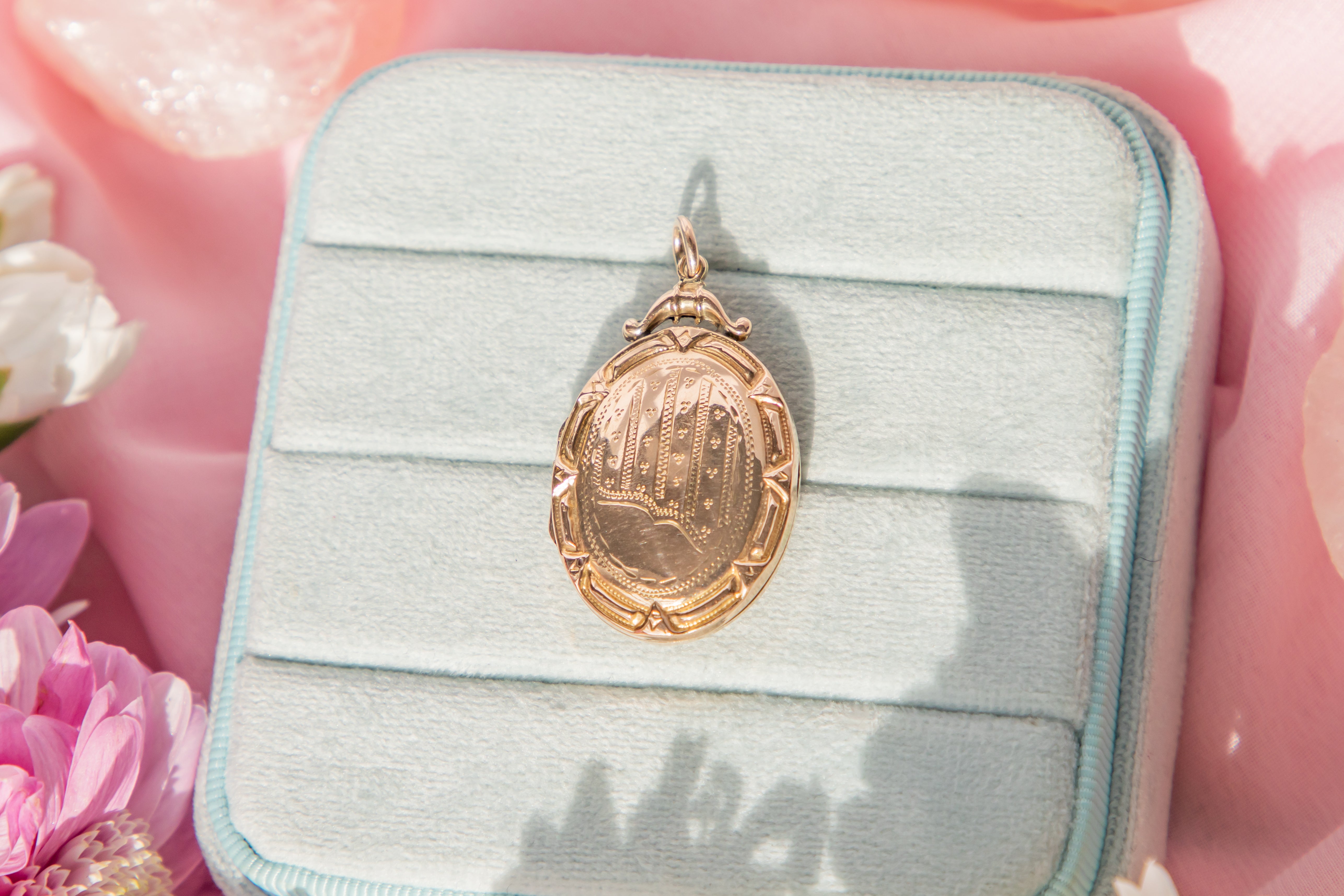 You won't want to miss the opportunity to get your hands on this spectacular antique 9ct Gold engraved oval locket! Crafted from a rich blushed 9ct Gold, the light bounces spectacularly from her fine patterned detailing.