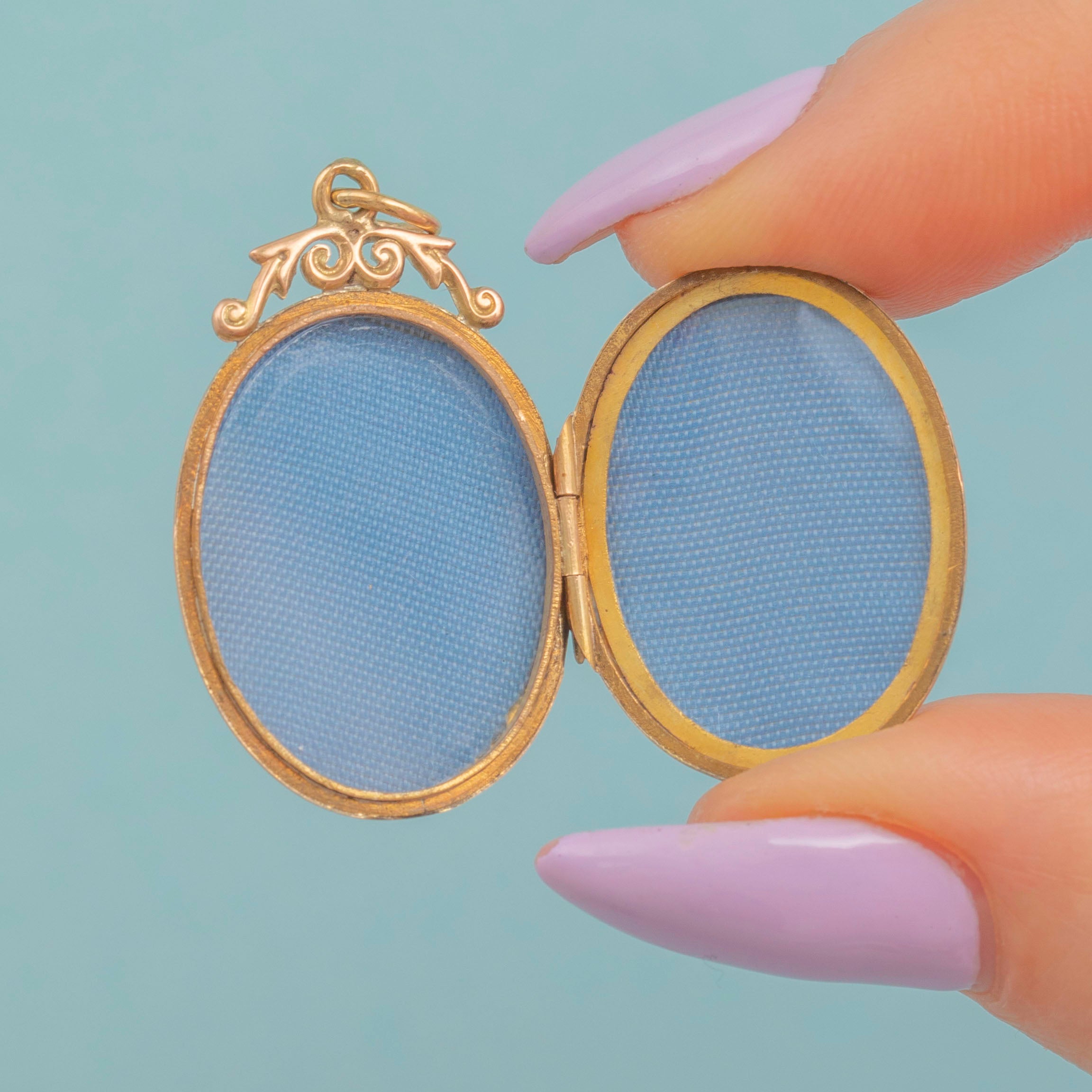 VERY GOOD-EXCELLENT. This antique 9ct Gold engraved oval locket is in wonderful condition. The Gold is buttery and the body of the locket is free from dings, with all the engraved details remaining defined. One of the frames is missing, but the door will keep a photograph securely in place if cut to size. The locket closes with a "click" allowing you to use and wear it confidently!