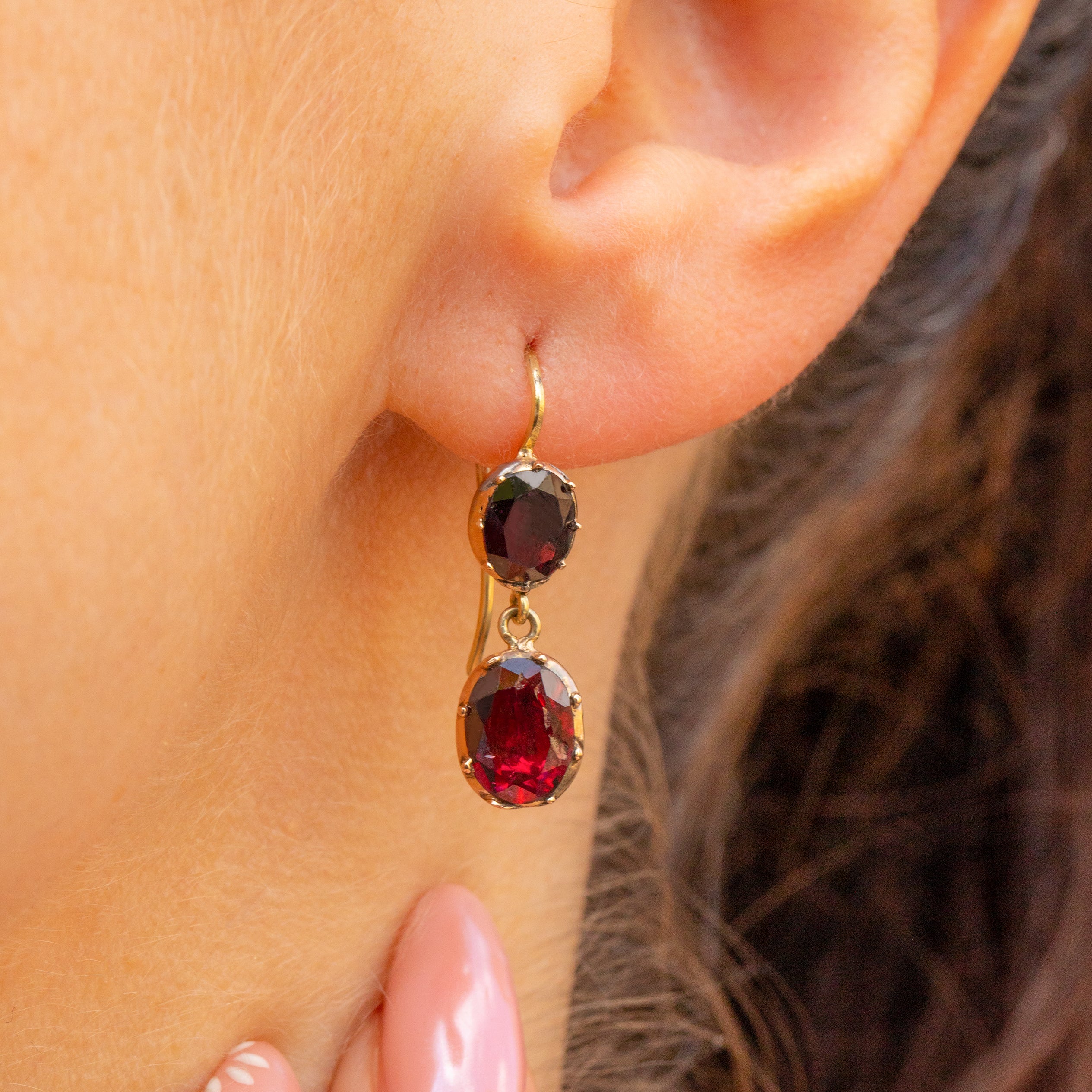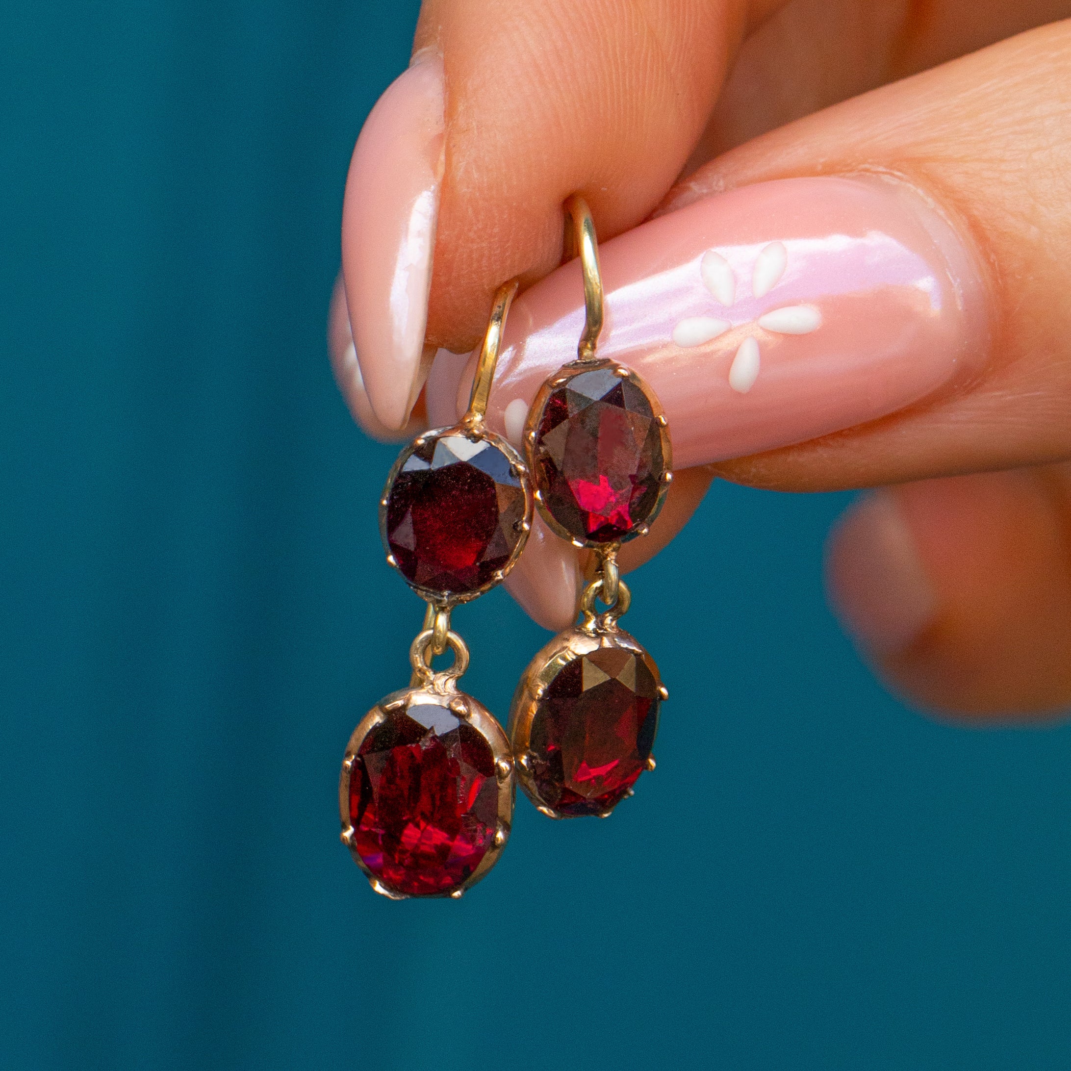 These 9ct Gold flat-cut Garnet earrings are a gorgeous pair, boasting seductive cherry red Garnets that catch the light beautifully. The perfect earrings for a date night, these antique Garnet earrings will instantly add a touch of elegance to your outfit!