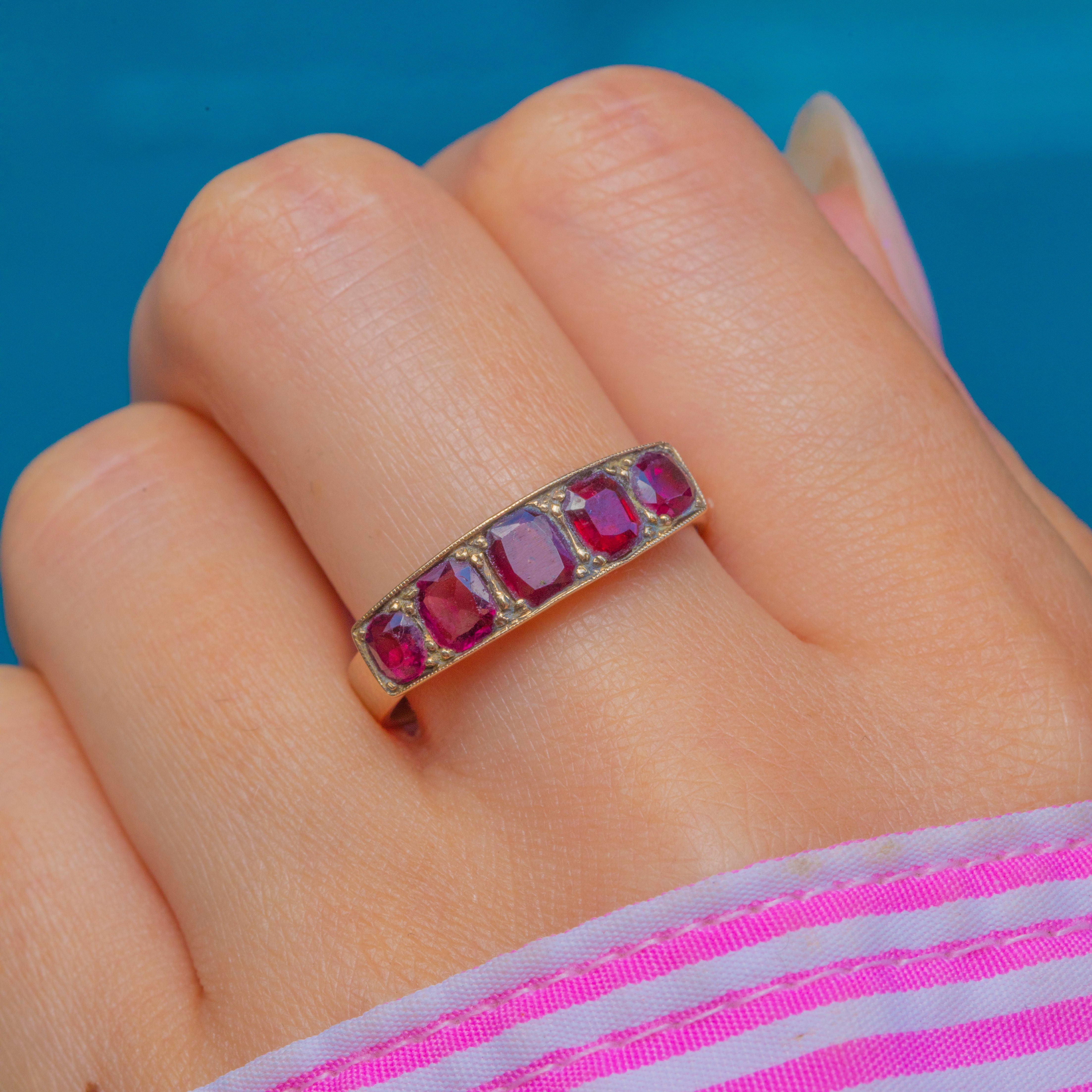 Antique 9ct Gold Garnet Five Stone Ring Item added