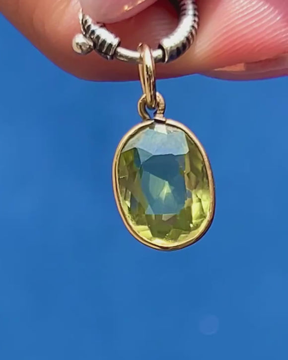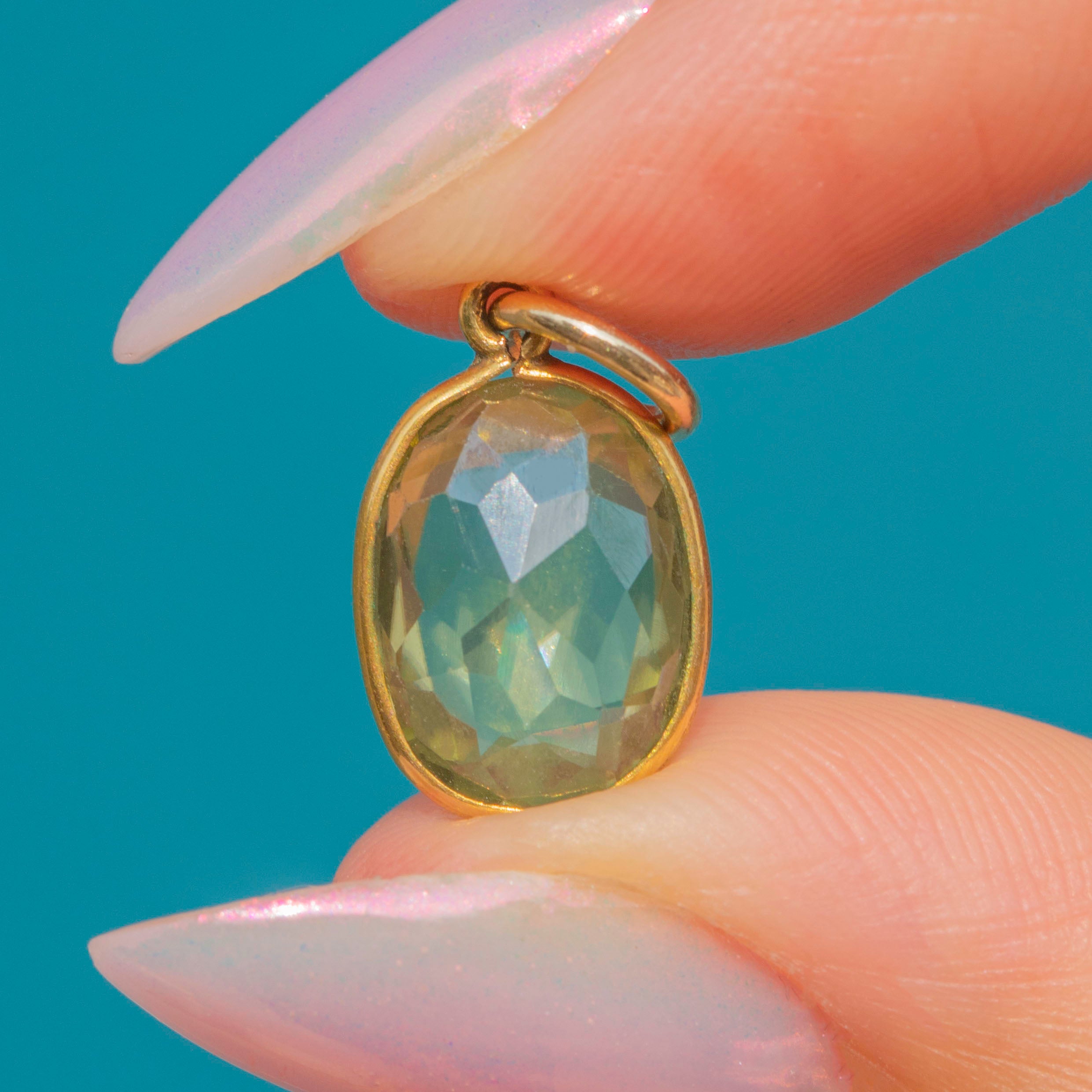 Bring earthy tones into your repertoire with this antique 9ct Gold 2.80ct Green Garnet bezel-set charm! Her olive green core flickers brightly as her crisp cut facets catch the light, she's an absolute treasure.