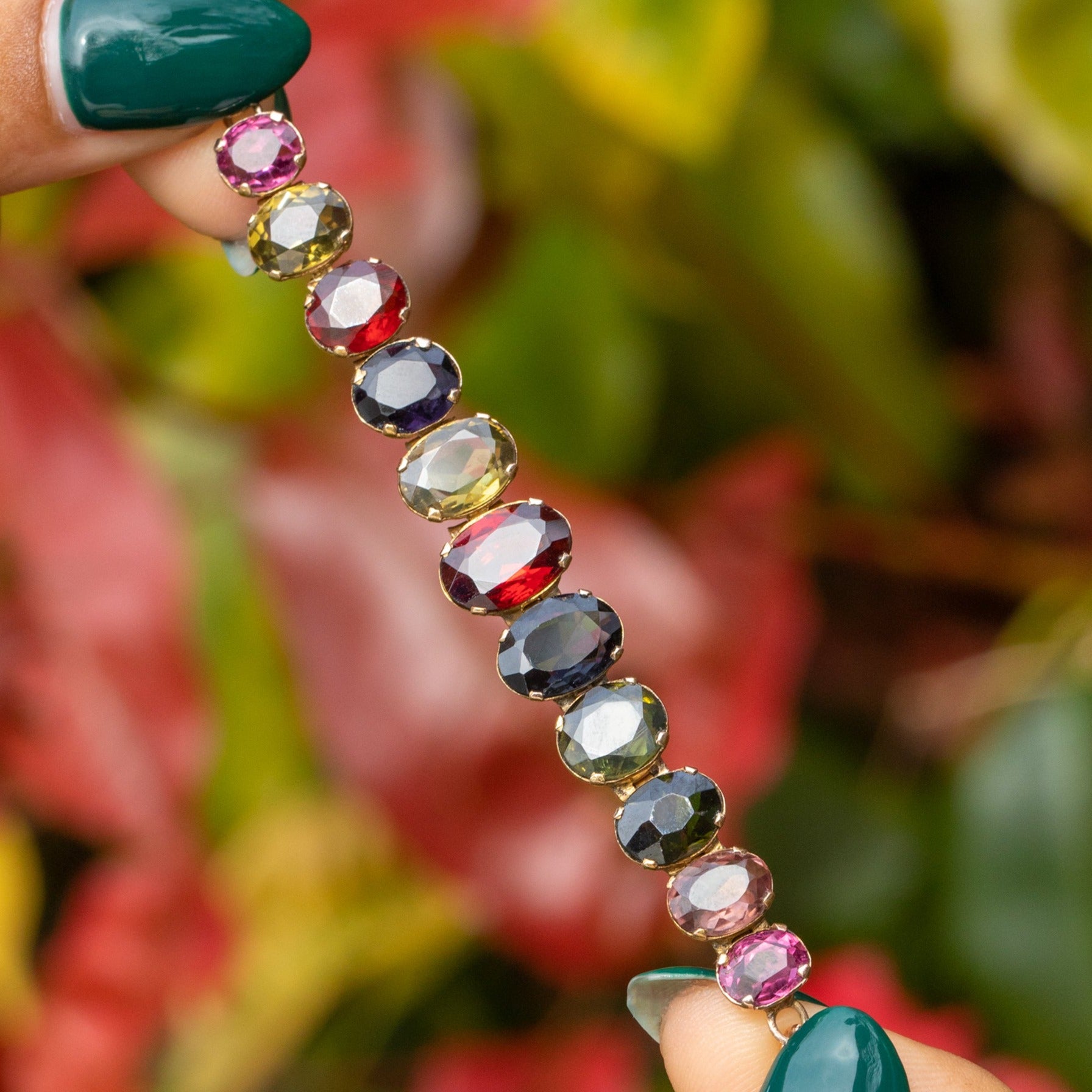 Antique 9ct Gold Harlequin Gemstone Bracelet