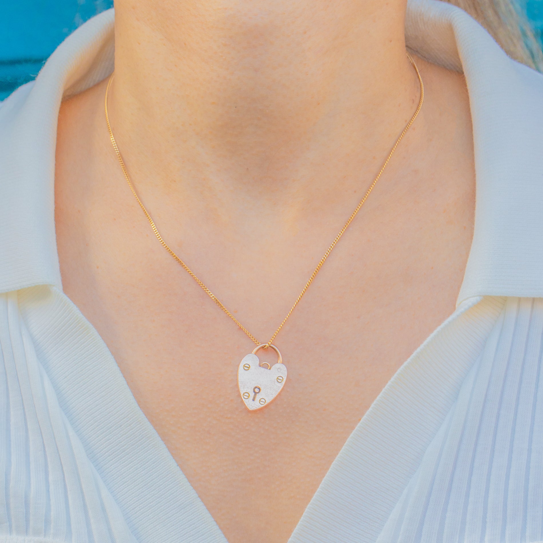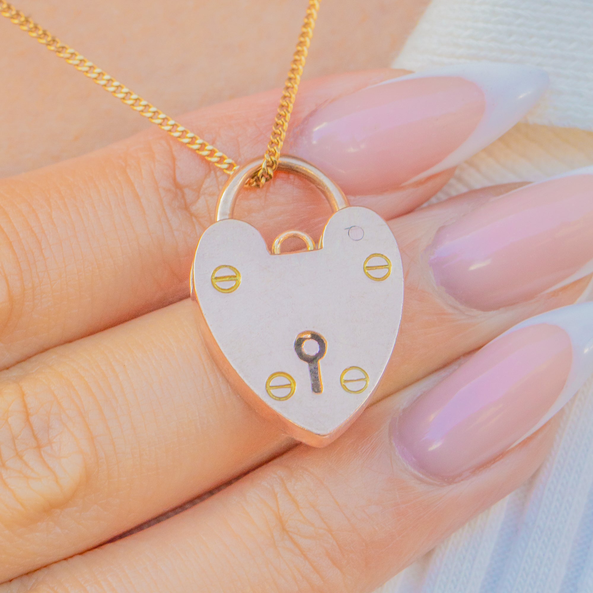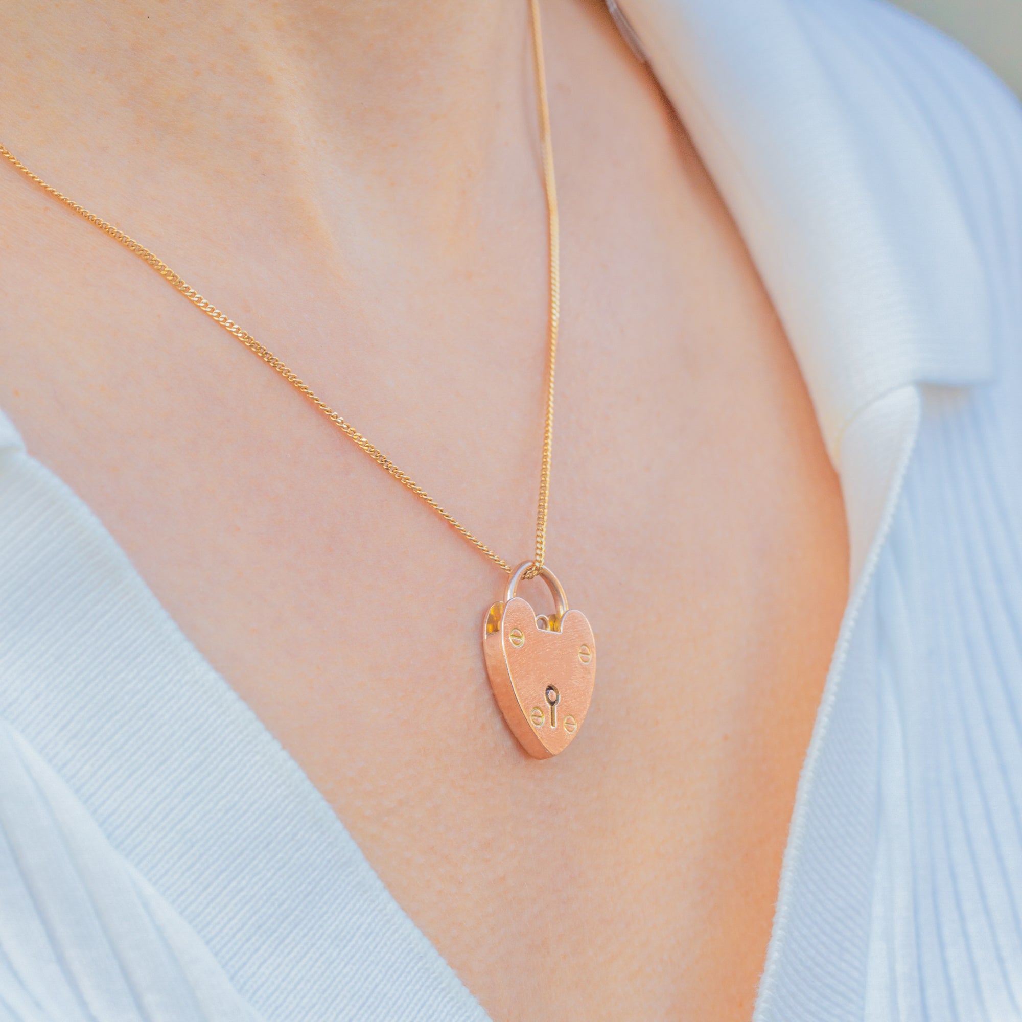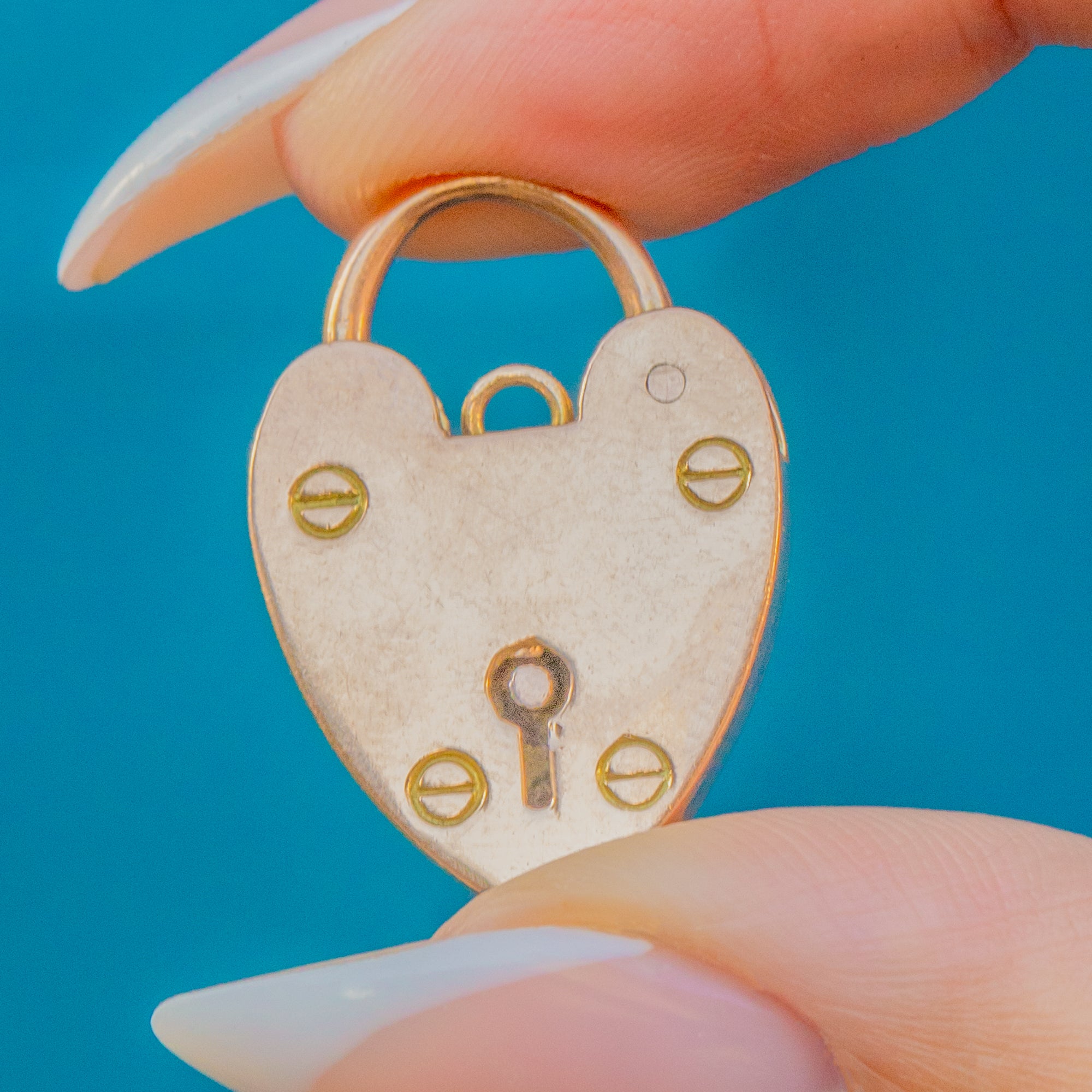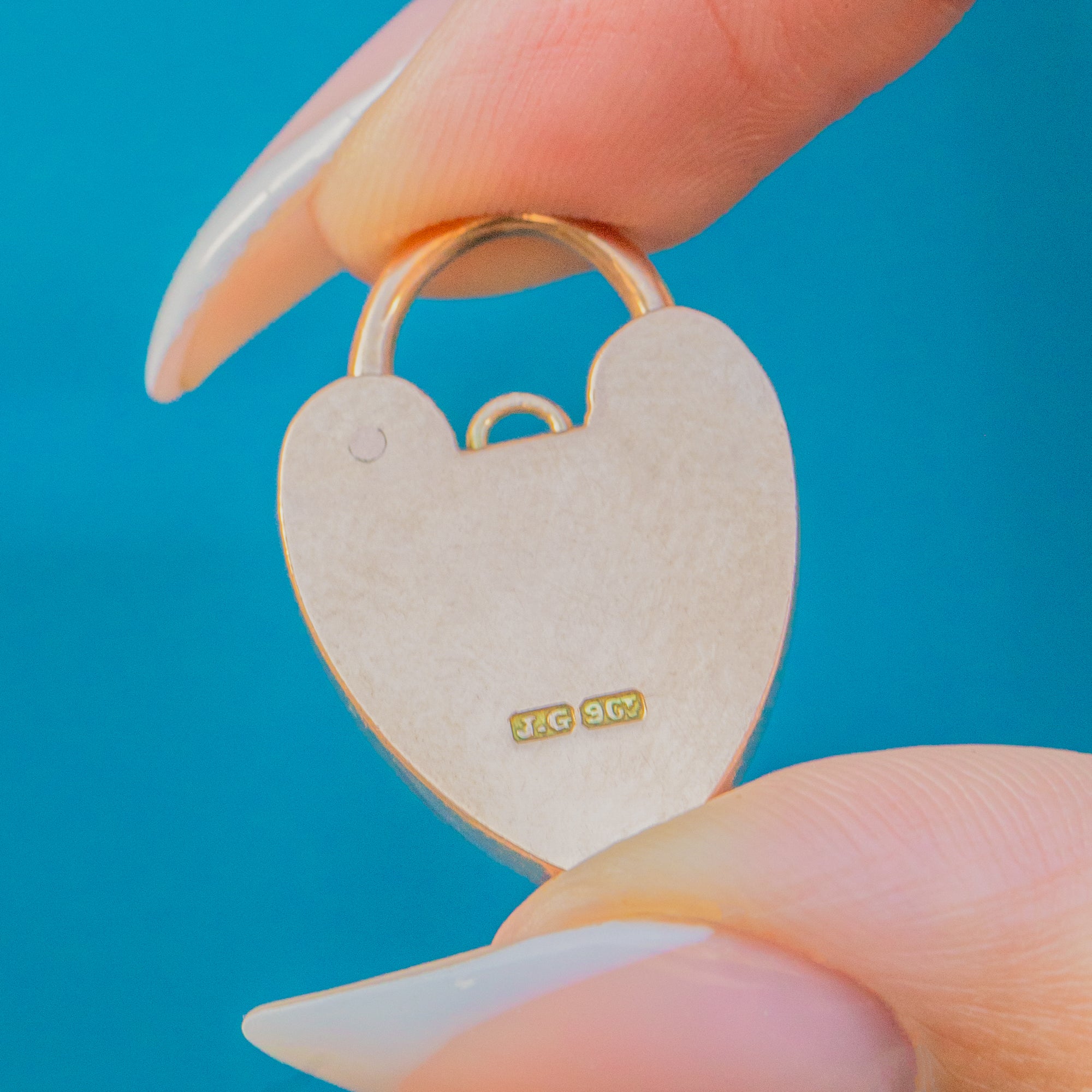 A classic Victorian heart padlock pendant crafted in rich 9ct Gold. With its smooth, rounded shape and timeless design, this padlock makes a versatile jewel that can be worn on a chain as a pendant, or used to secure an antique bracelet. The Gold has a warm antique hue, and the piece is complete with its original hinge and lever mechanism.