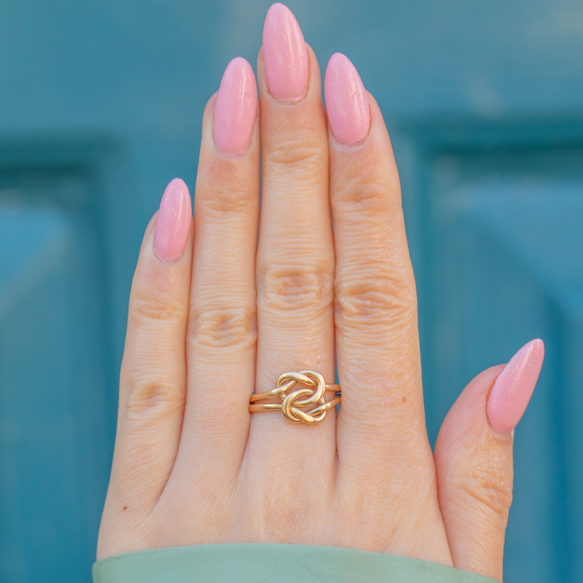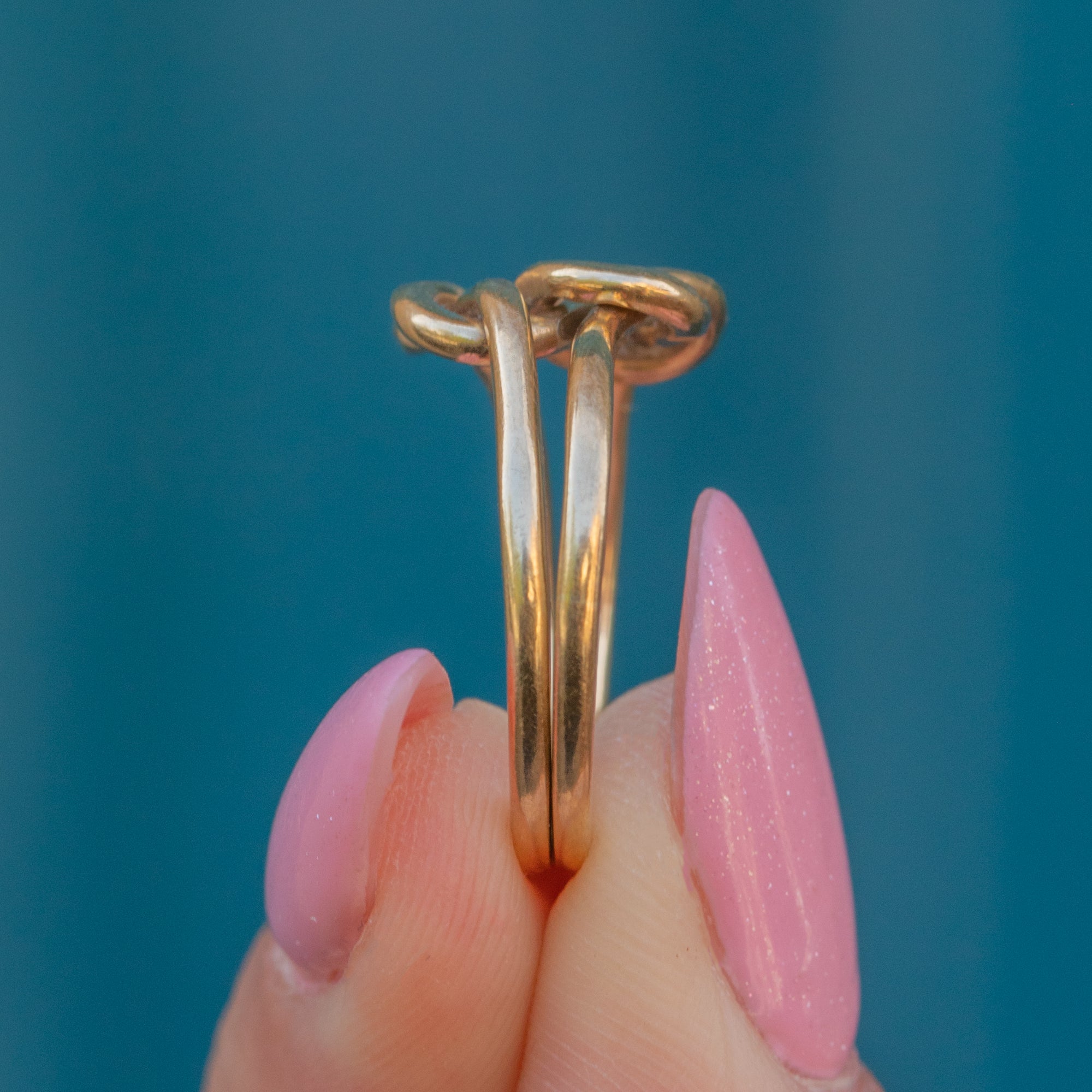 A romantic antique motif, this buttery 9ct Gold knot ring would make the perfect love token and is a great, versatile piece to add to your ring stack!