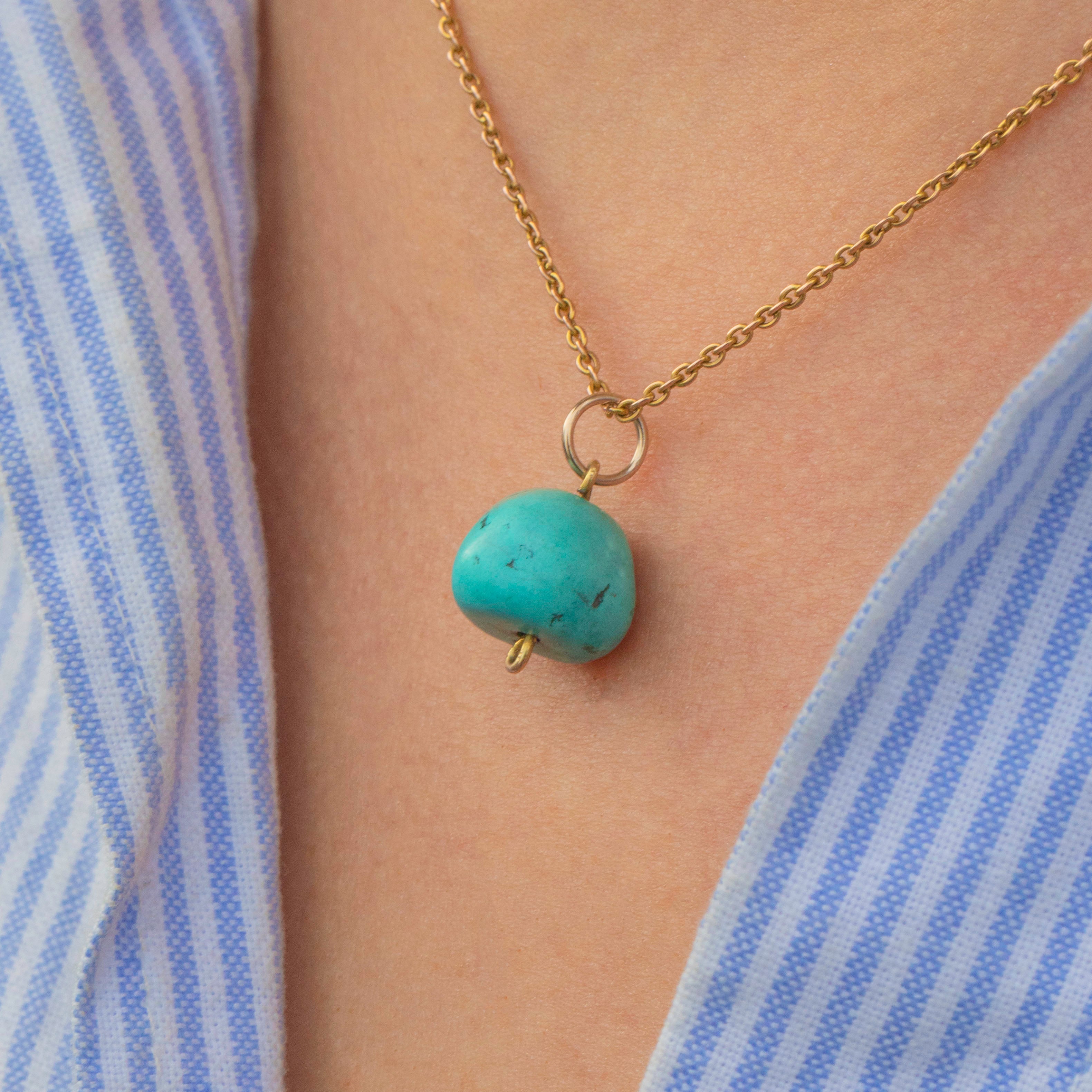 Lightweight and versatile, this antique Turquoise pendant could easily be worn as a standalone piece or styled among your other favourite jewels. You could even personalise this piece by suspending another petite charm from the base of the Turquoise!