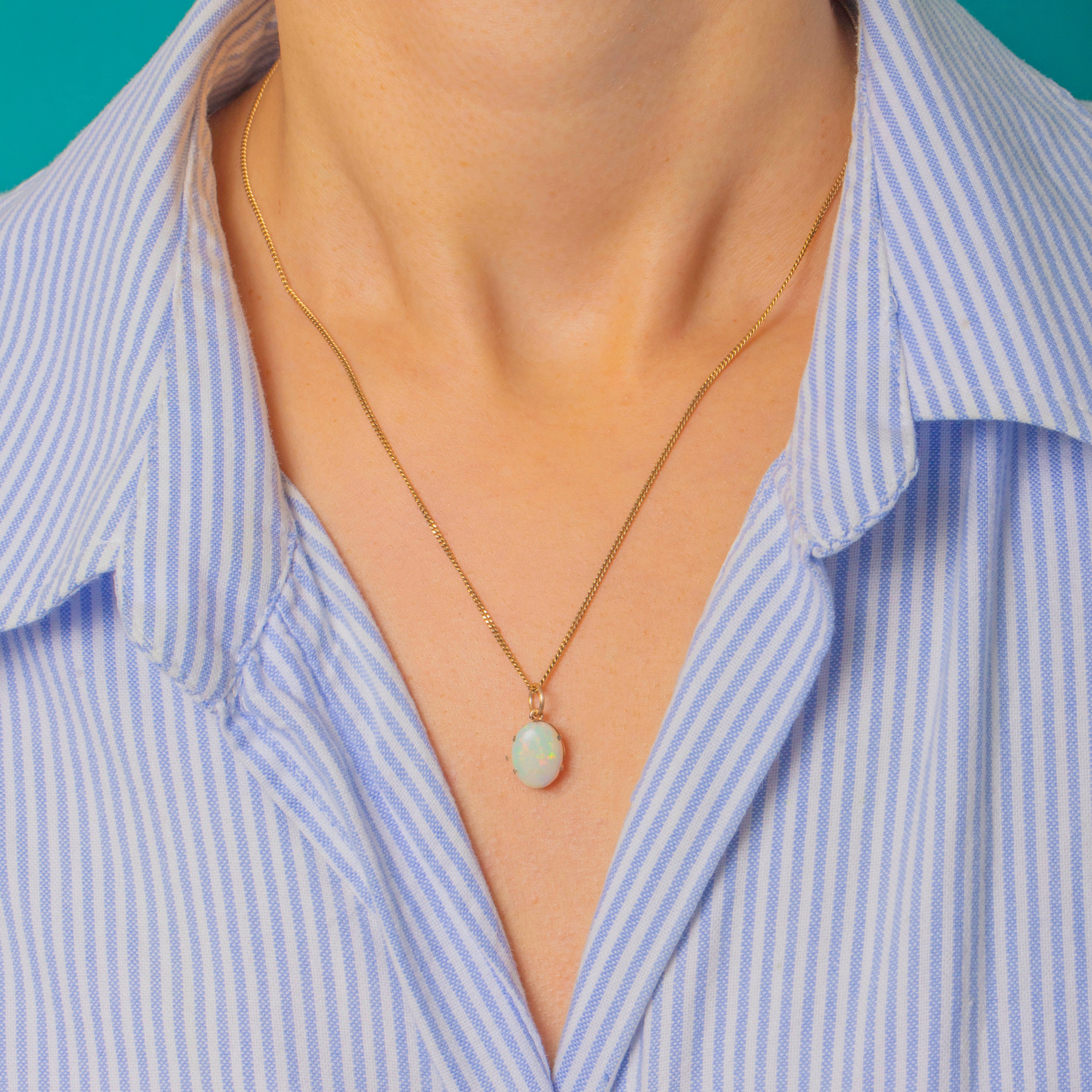 EXCELLENT: The Opal is in lovely condition with vibrant play-of-colour and no surface wear. The Gold setting and jump ring are smooth, bright and secure throughout.