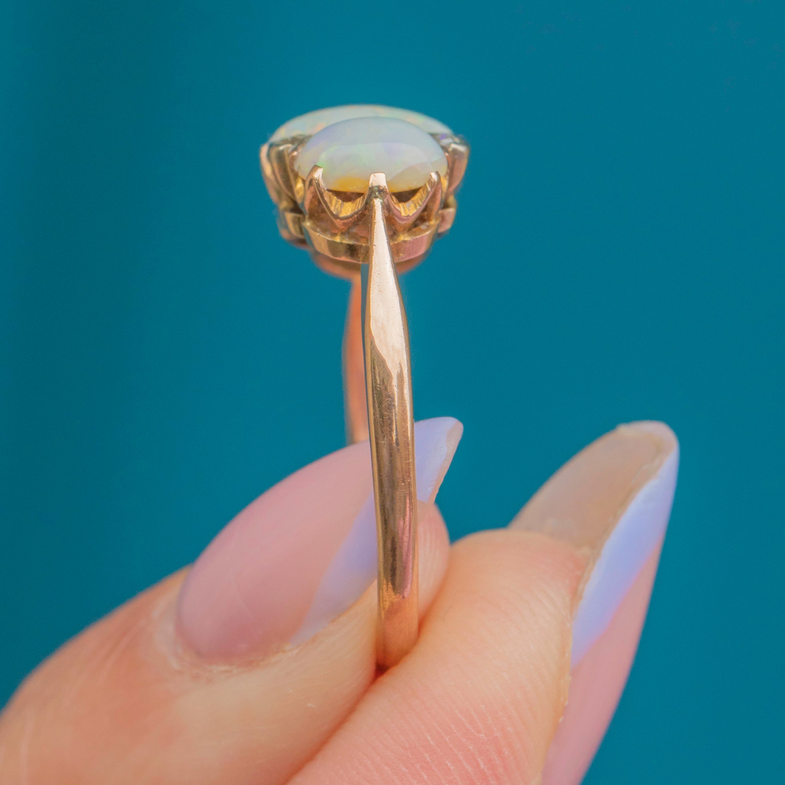 Antique 9ct Gold Opal Diamond Trilogy Ring, 0.78ct