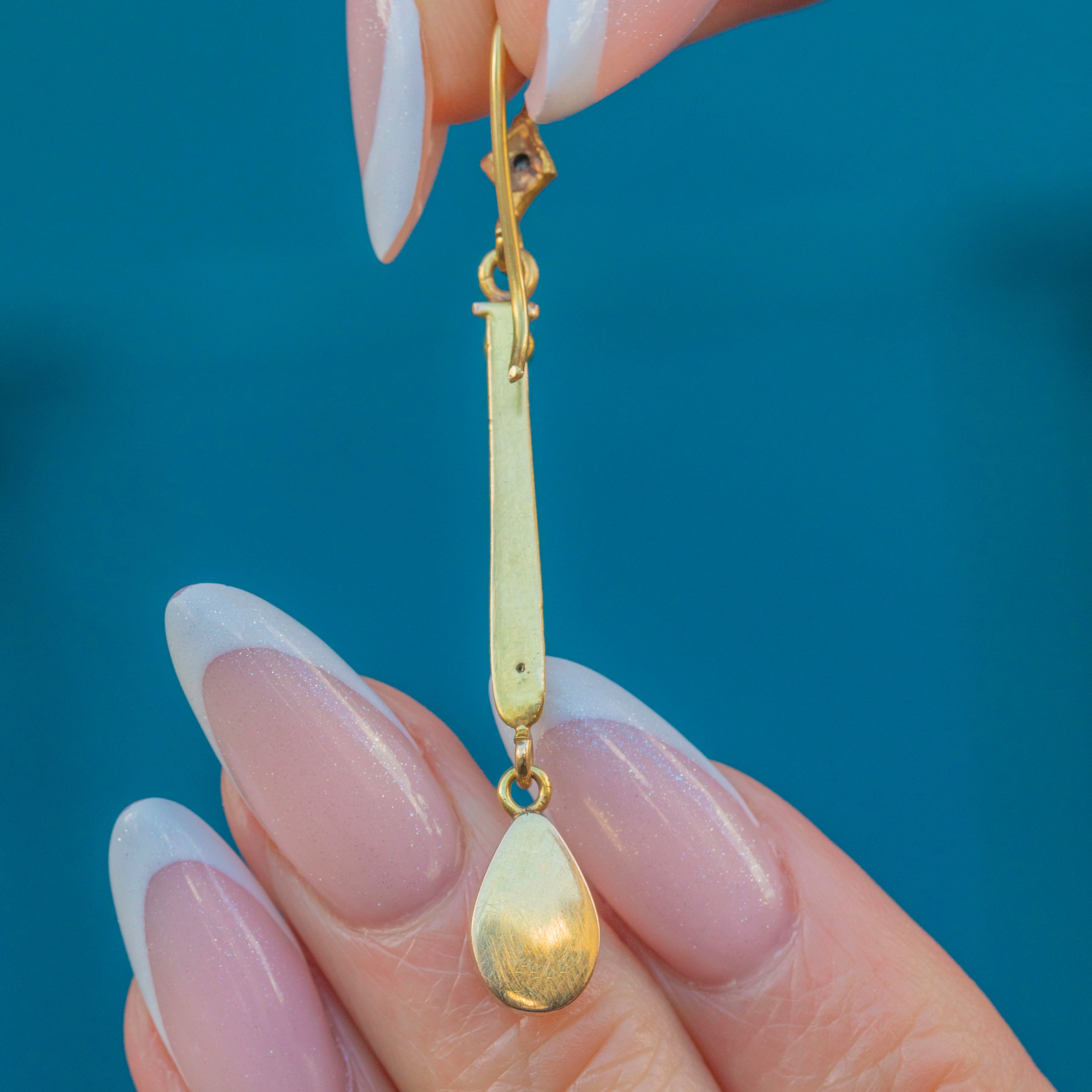 These antique 9ct Gold Opal drop earrings will look resplendent adorning your lobes! Shimmying elegantly with every movement, these Edwardian earrings are crafted from luscious 9ct Gold and display an assortment of glimmering gems.