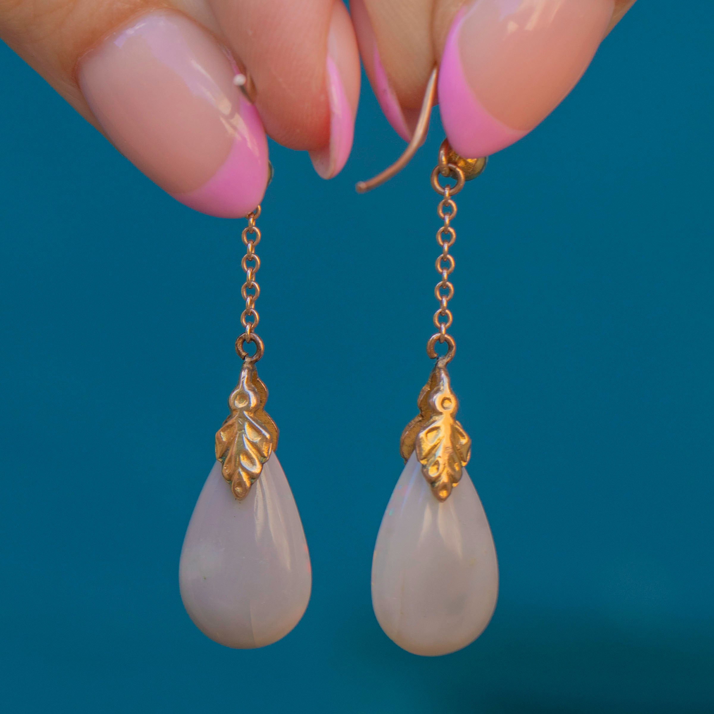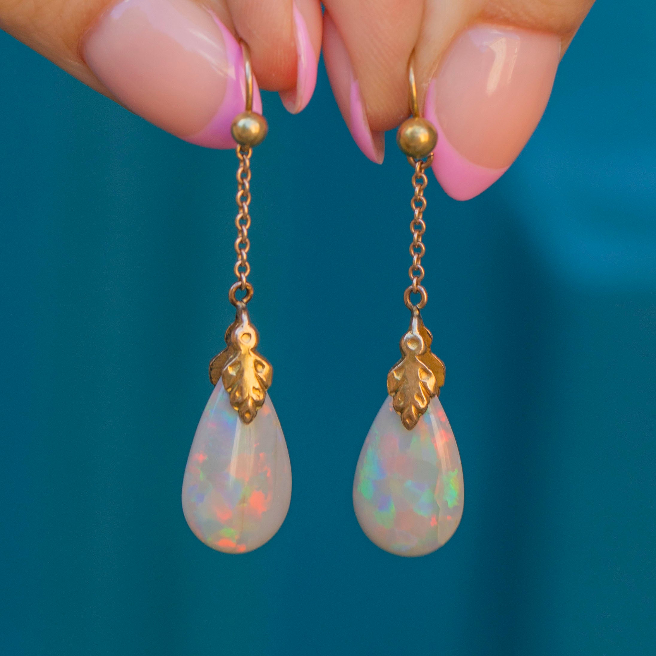 Antique 9ct Gold Opal Pear Drop Earrings, 9.20ct