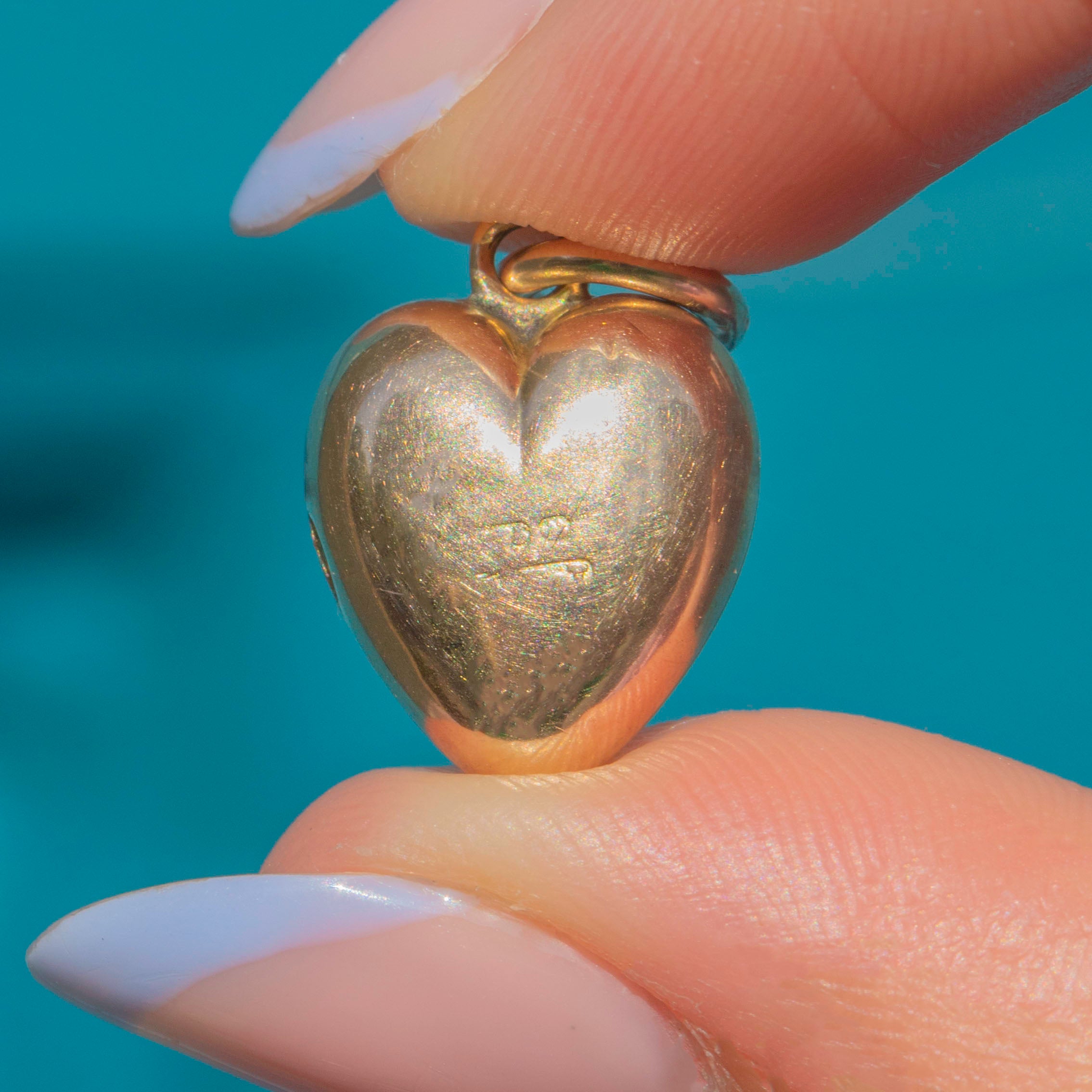 This antique 9ct Gold Opal puffy heart pendant is a sweet treat! Inlaid with a lovely Opal, this puffy heart charm will make you feel super cute.