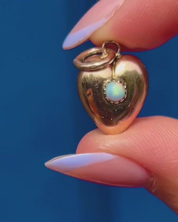 Antique 9ct Gold Opal Puffy Heart Pendant