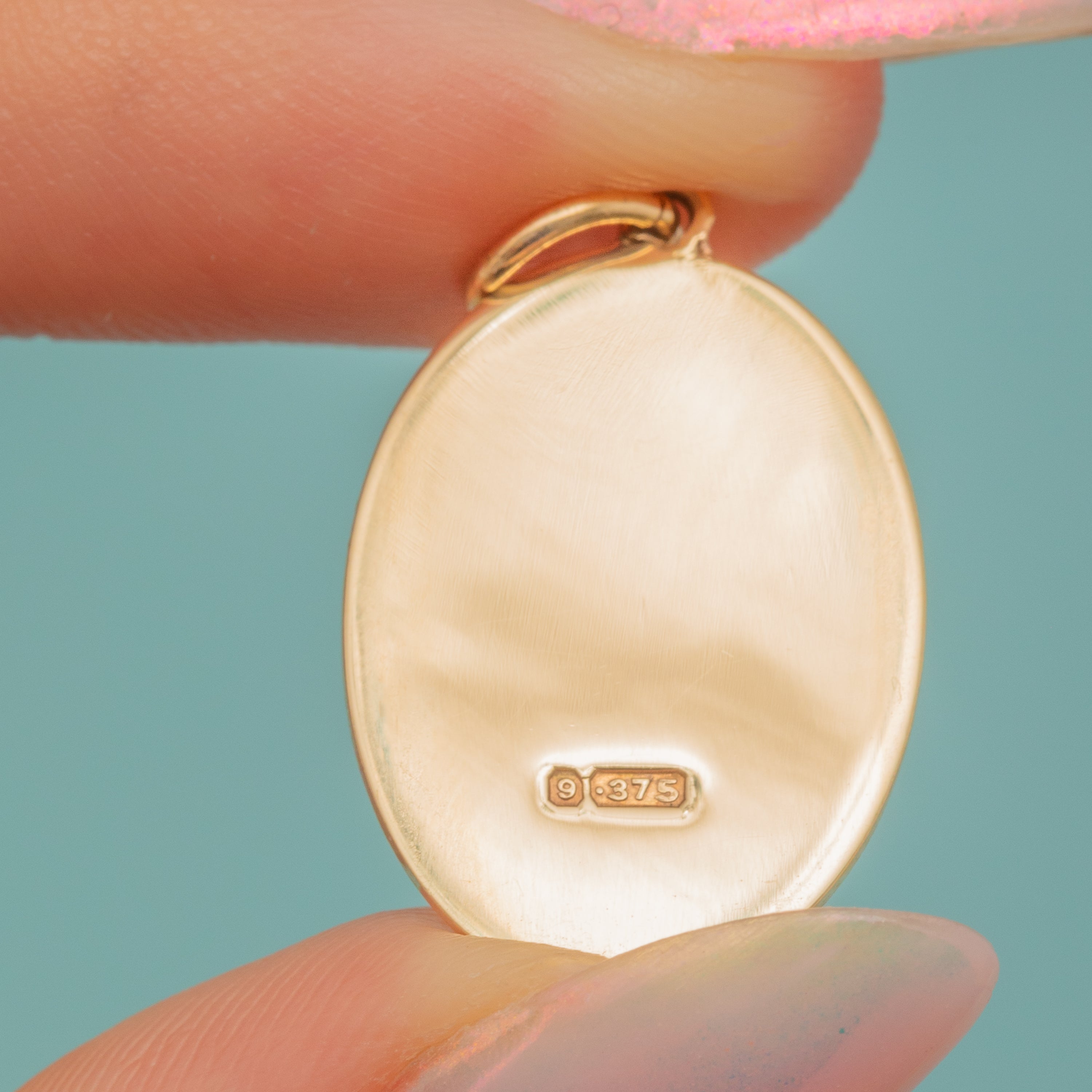EXCELLENT: This Art Deco 9ct Gold oval engraved pendant is in excellent condition! Her engravings are crisp and the Gold is glossy throughout. The back is smooth and free from any dings and her stamps are fully legible, making her a timeless addition to any antique jewellery collection!