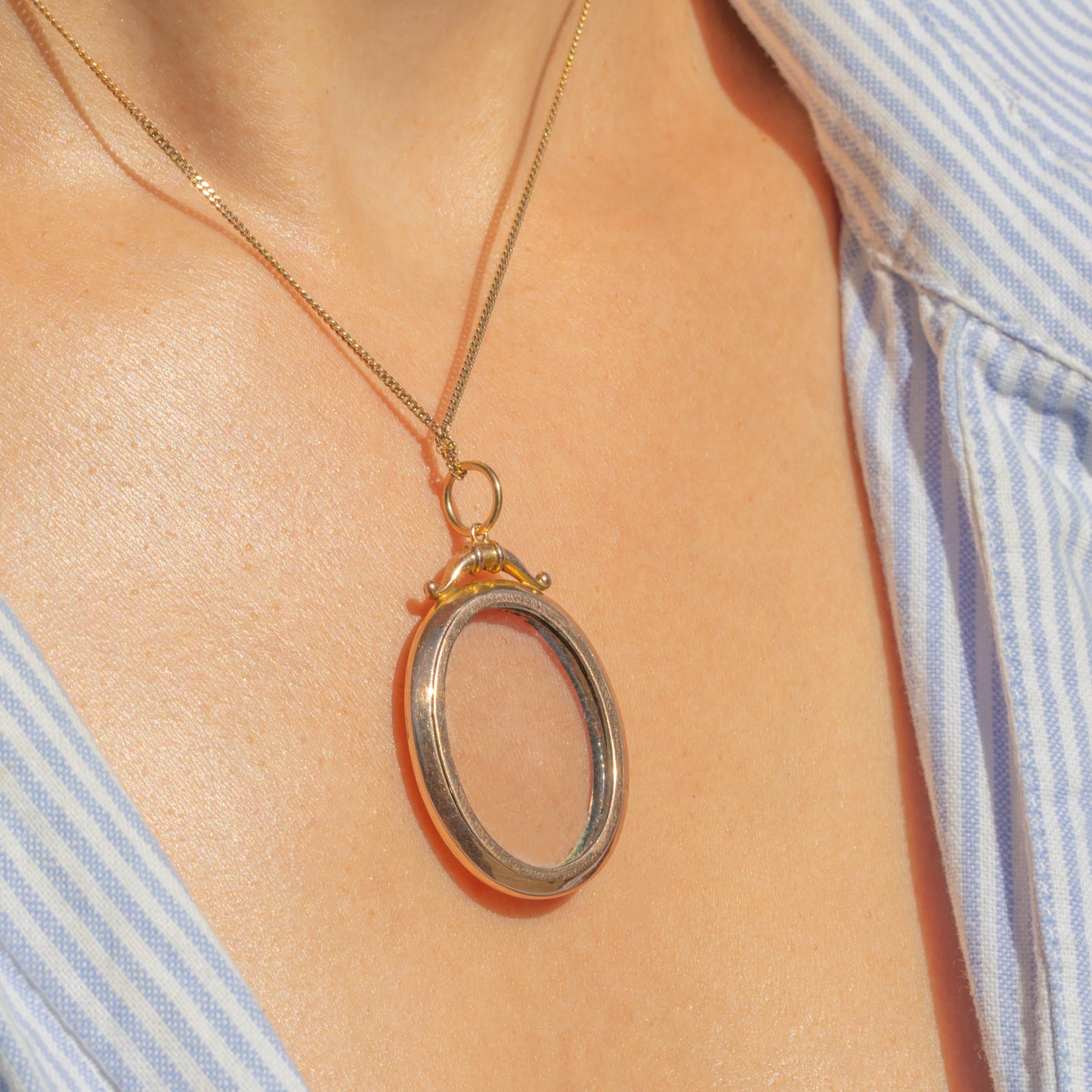 Crafted during the Edwardian period, this oval portrait locket likely served as a sentimental keepsake between loved ones.