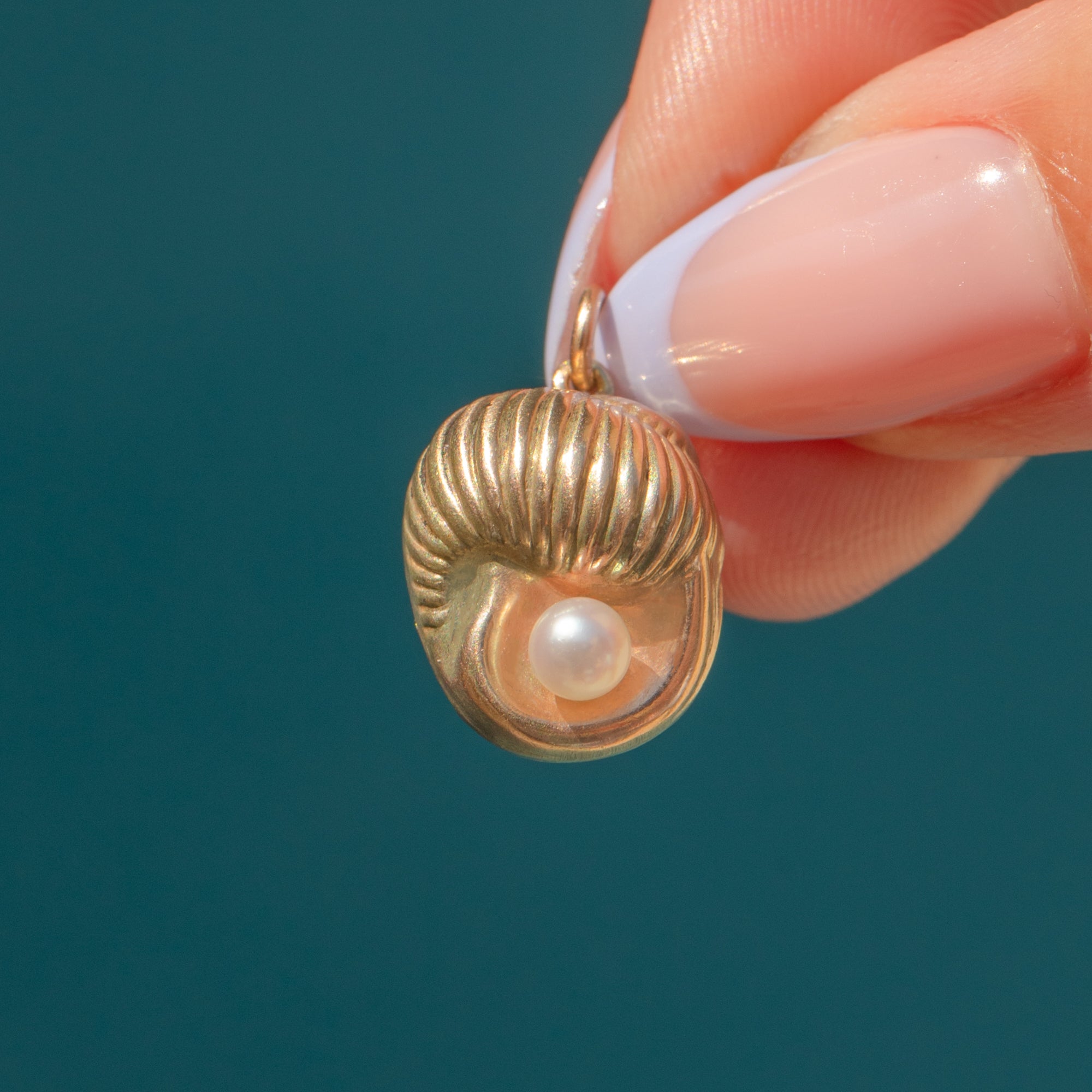 This antique Victorian 9ct Gold Pearl shell charm is simply adorable! A treasure from the Victorian period, this antique charm is intricately crafted from glossy 9ct Gold and homes a shimmering Pearl at her centre.