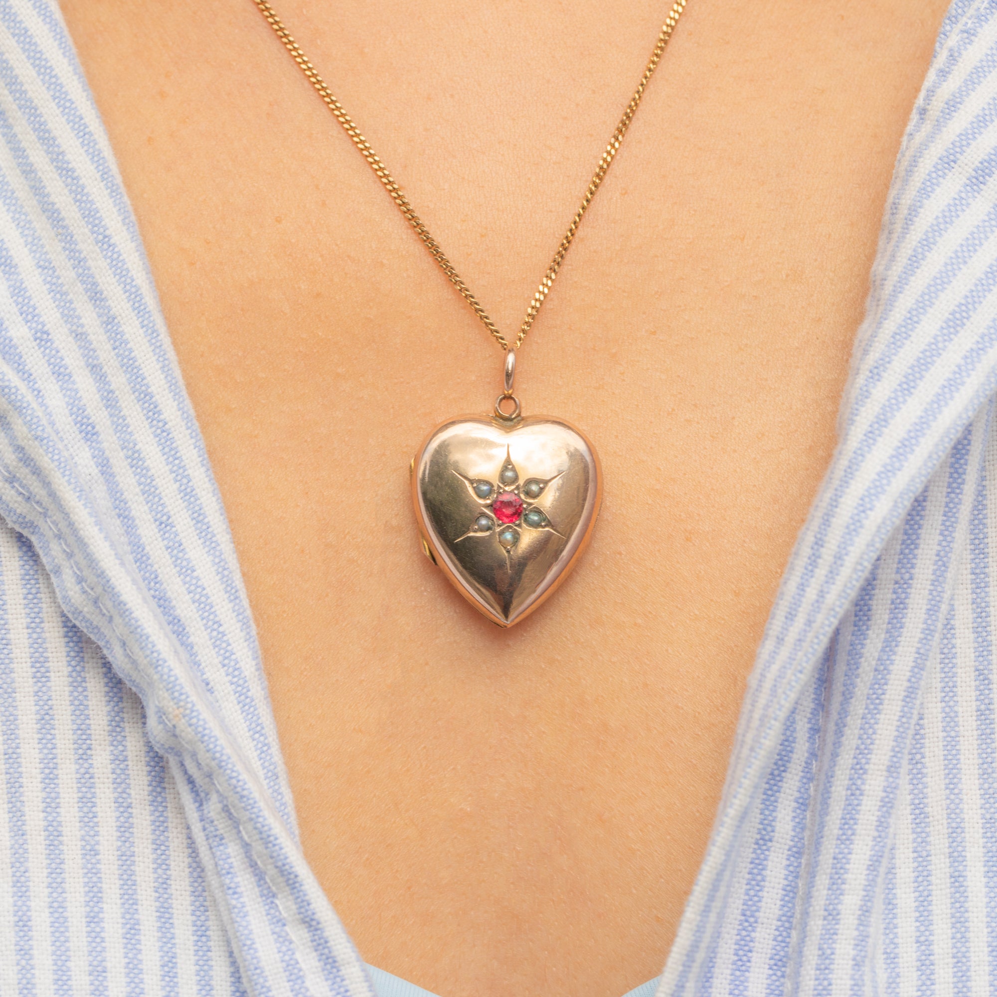 Antique 9ct Gold Pearl Starburst Heart Locket