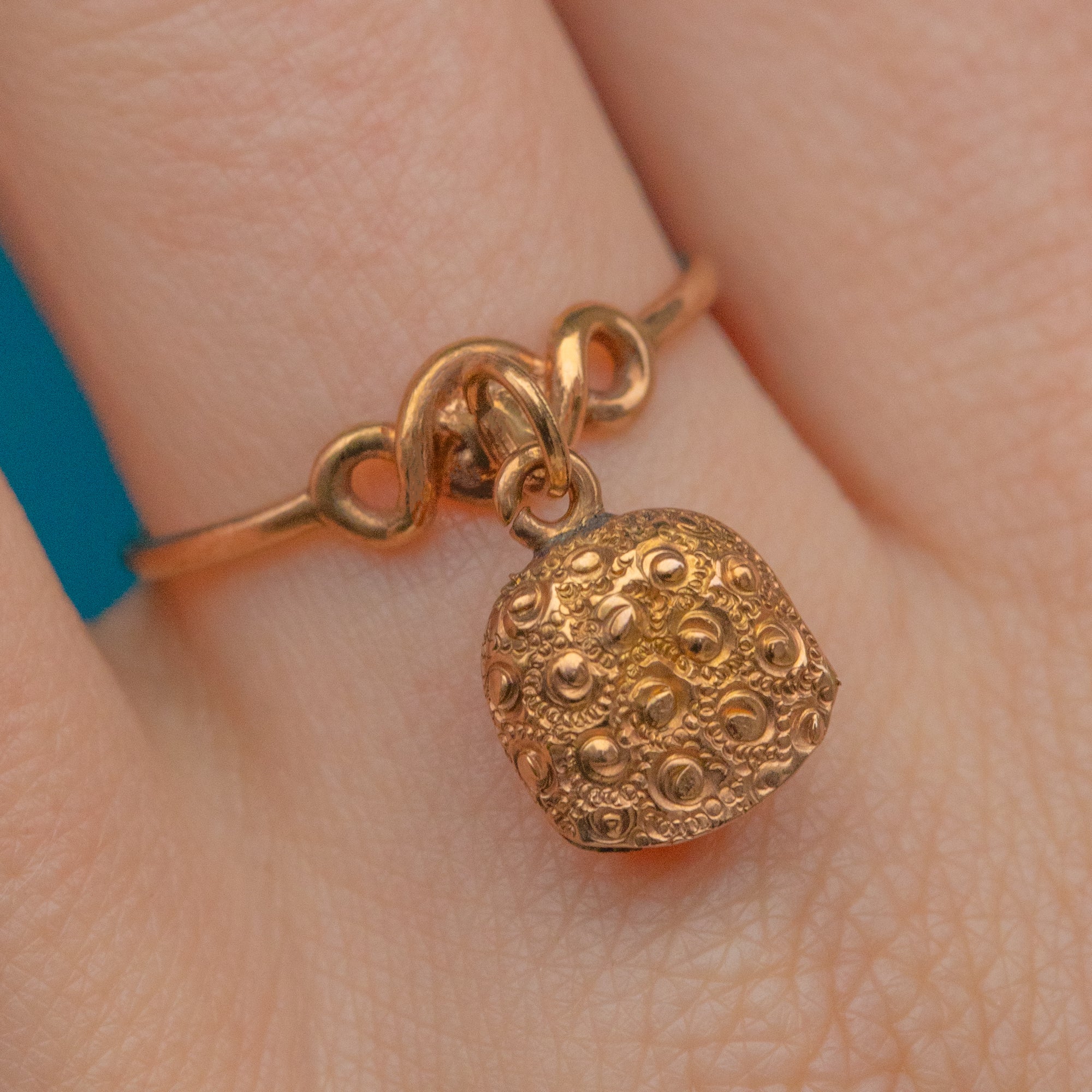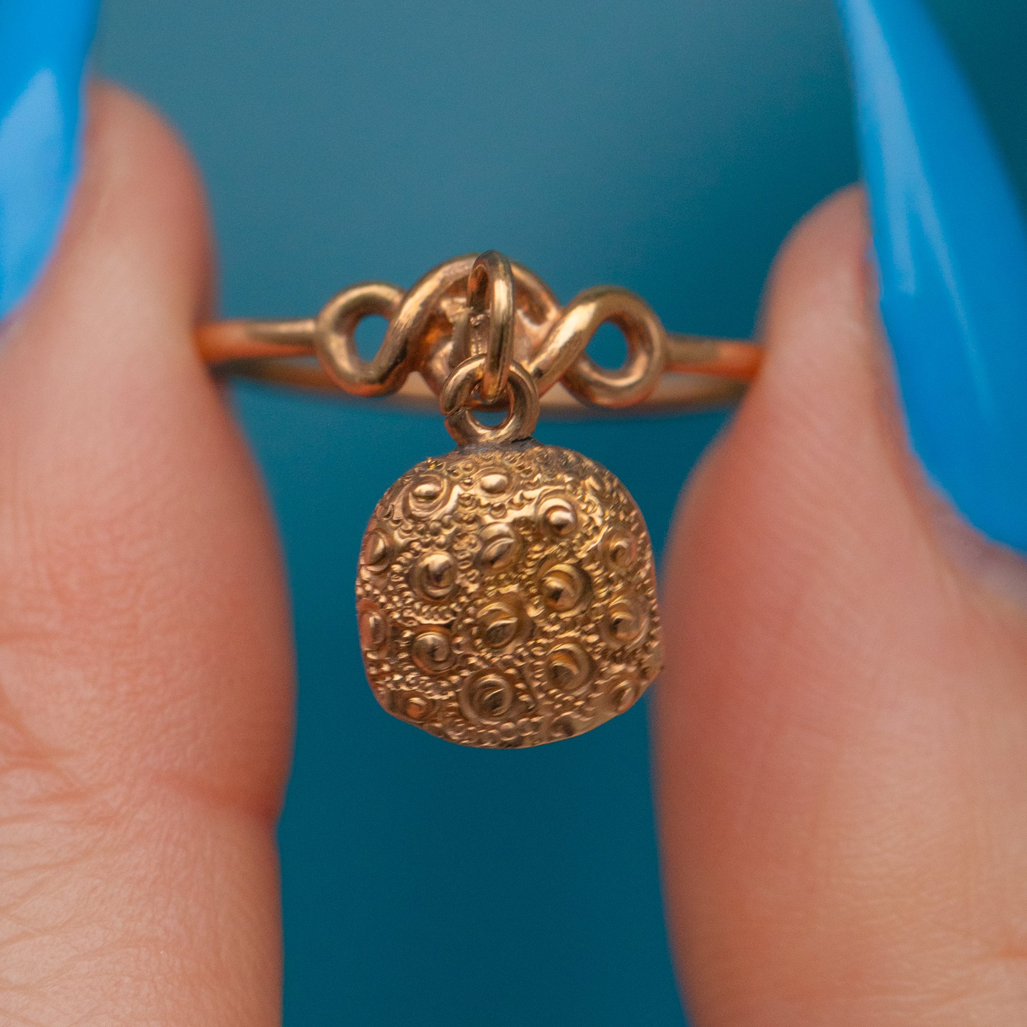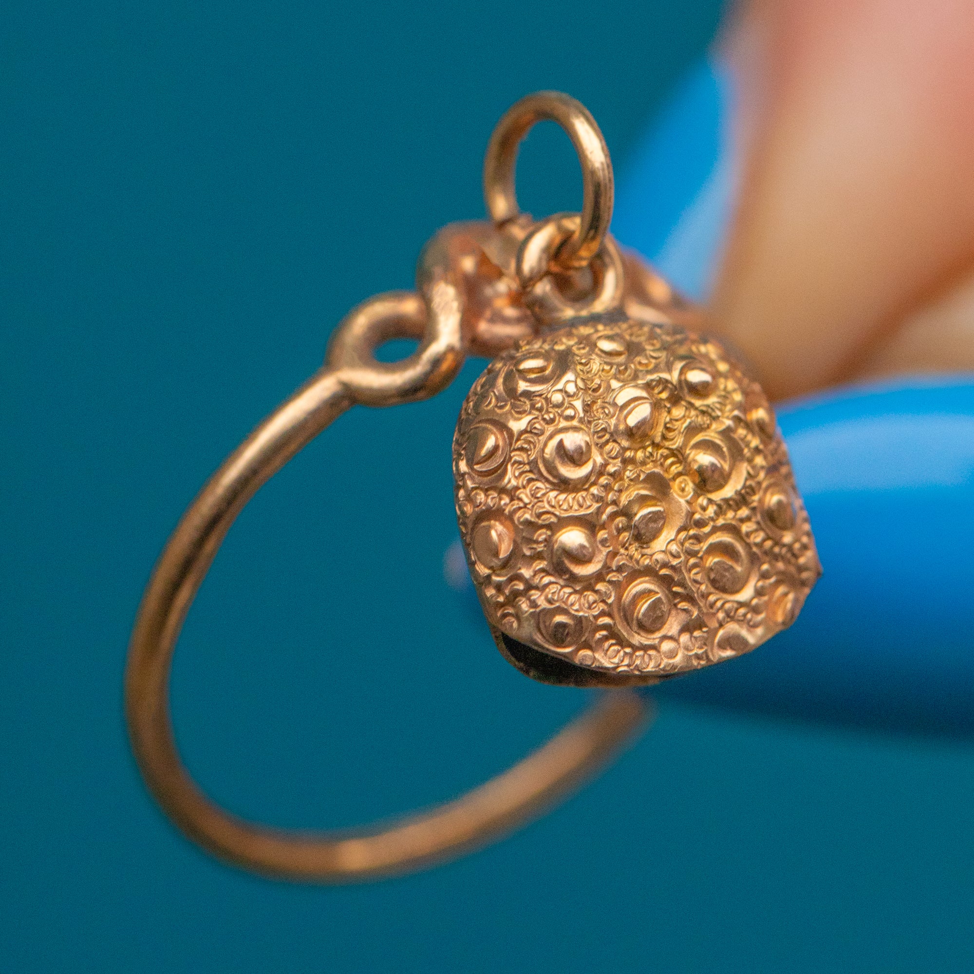 Antique 9ct Gold Ring with Engraved Bell Charm