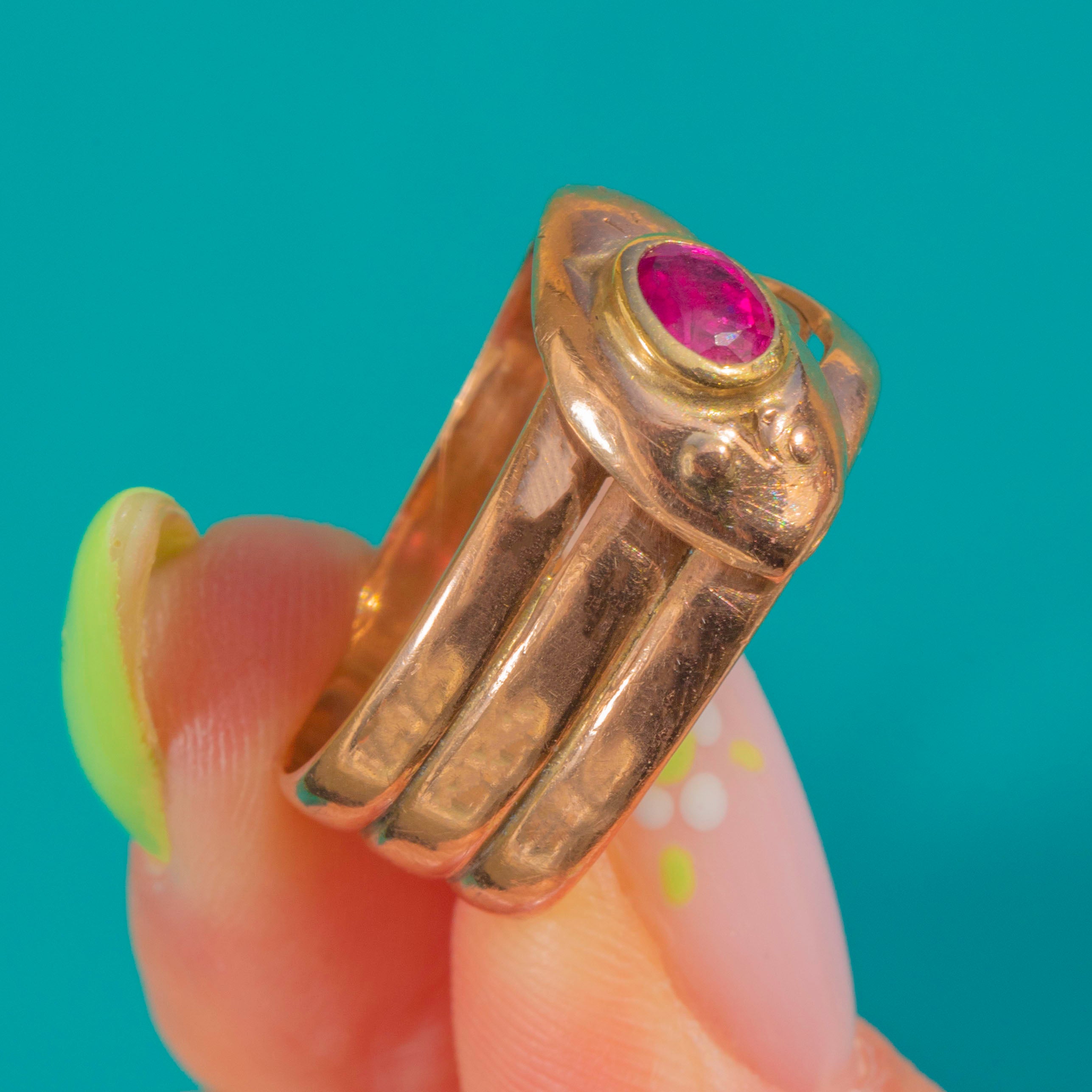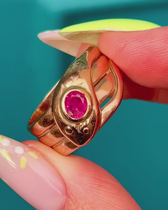 Antique 9ct Gold Ruby Snake Ring c.1919