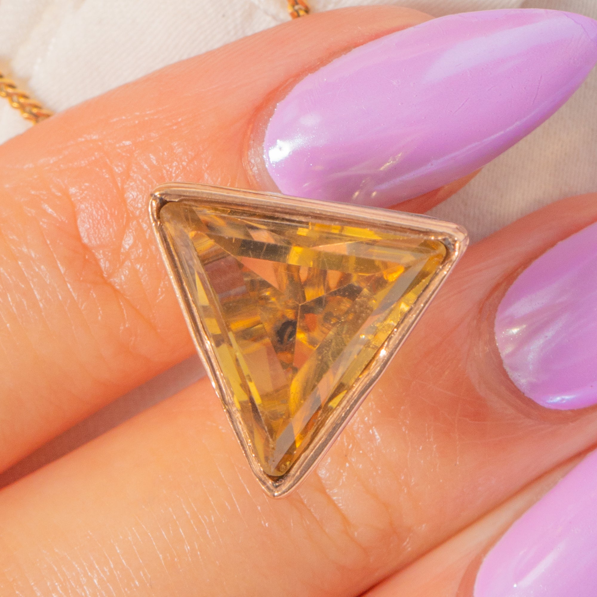 Antique Solid Gold 9ct Gold Triangular Citrine Fob Pendant