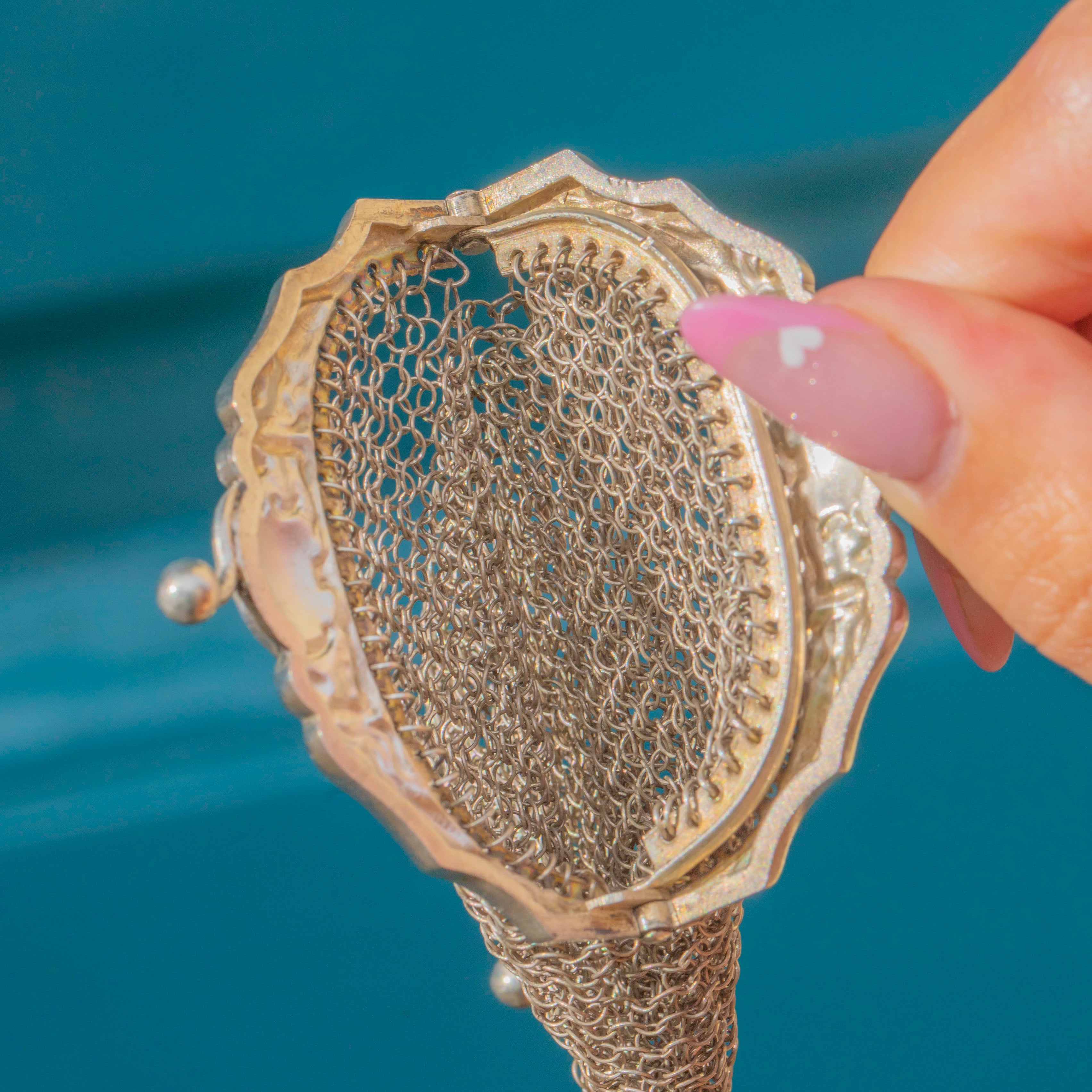 Made from fine interlinked Silver mesh, it’s supple yet sturdy, with a richly aged patina that speaks to over a century of care and history.