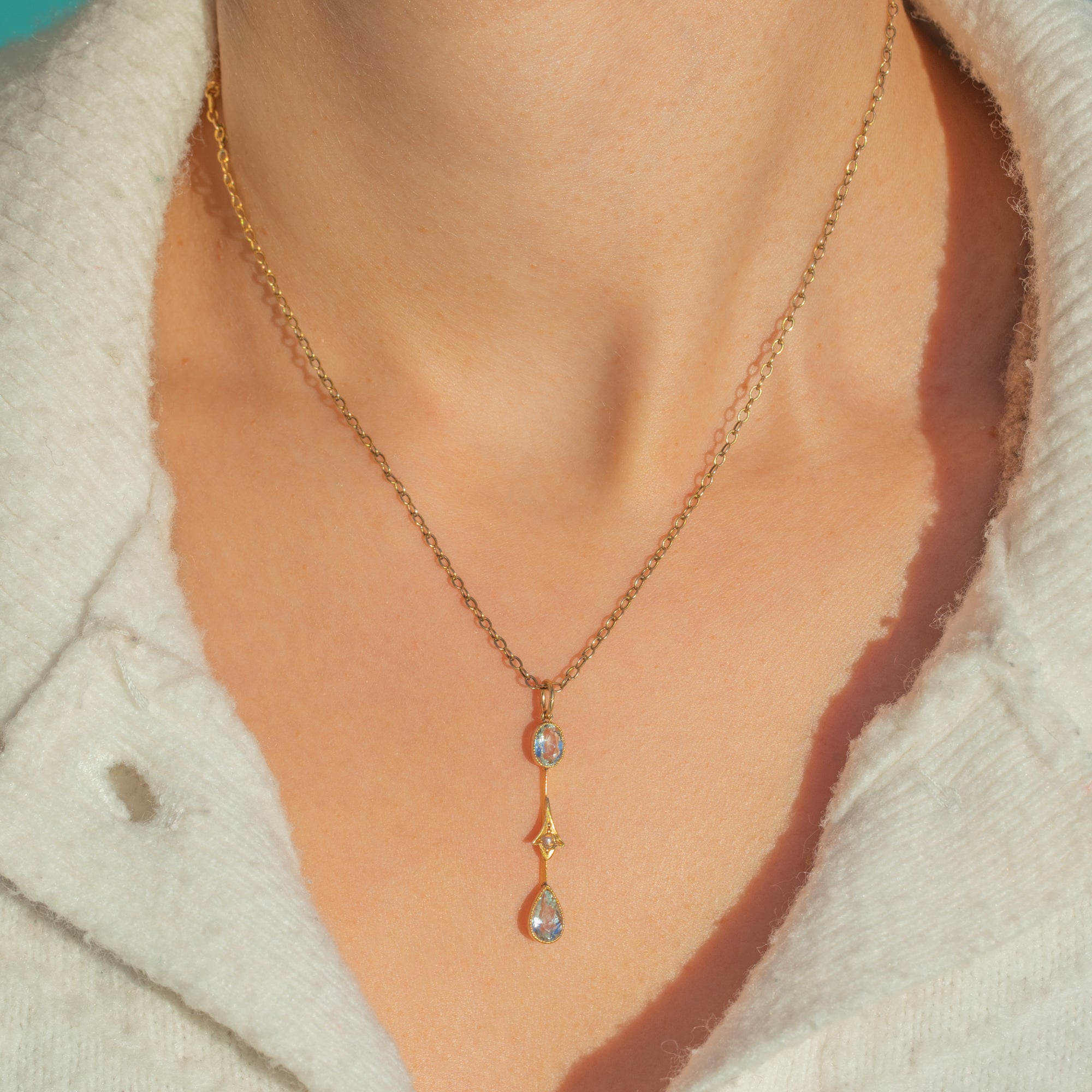 The articulated construction gives the pendant graceful movement, while the fine bezel settings frame each stone beautifully. Refined and delicately proportioned, it’s a timeless Edwardian jewel that feels as light and romantic as it looks.