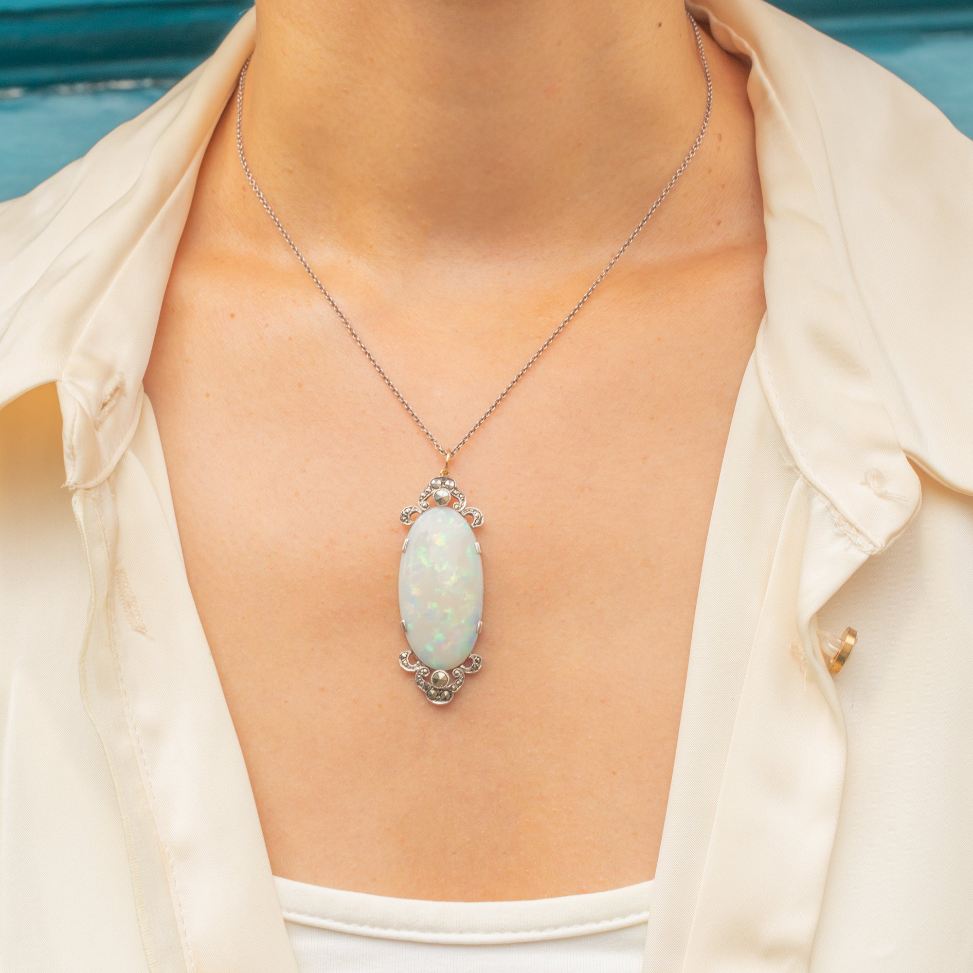 An exquisite Edwardian pendant featuring a stunning 15.40ct solid Opal, set in classic Silver.