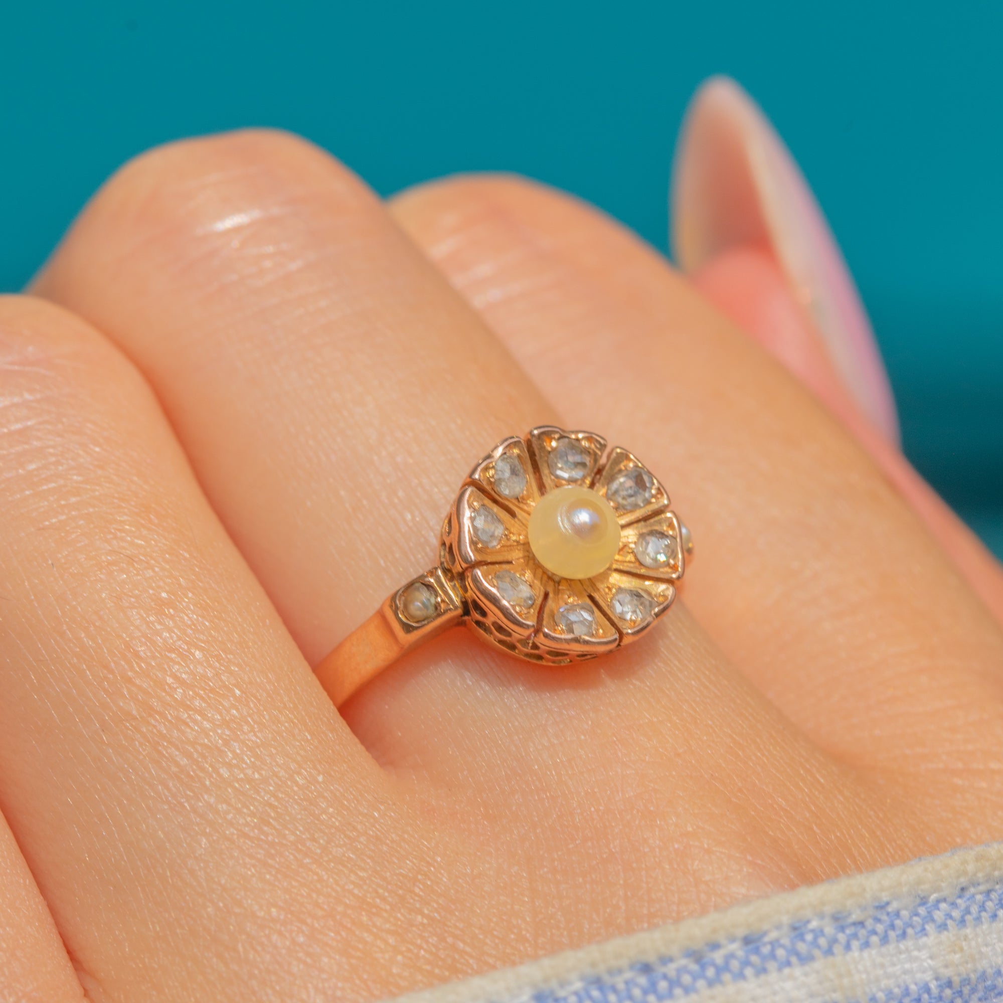Antique French 18ct Gold Pearl Diamond Flower Cluster Ring Item added