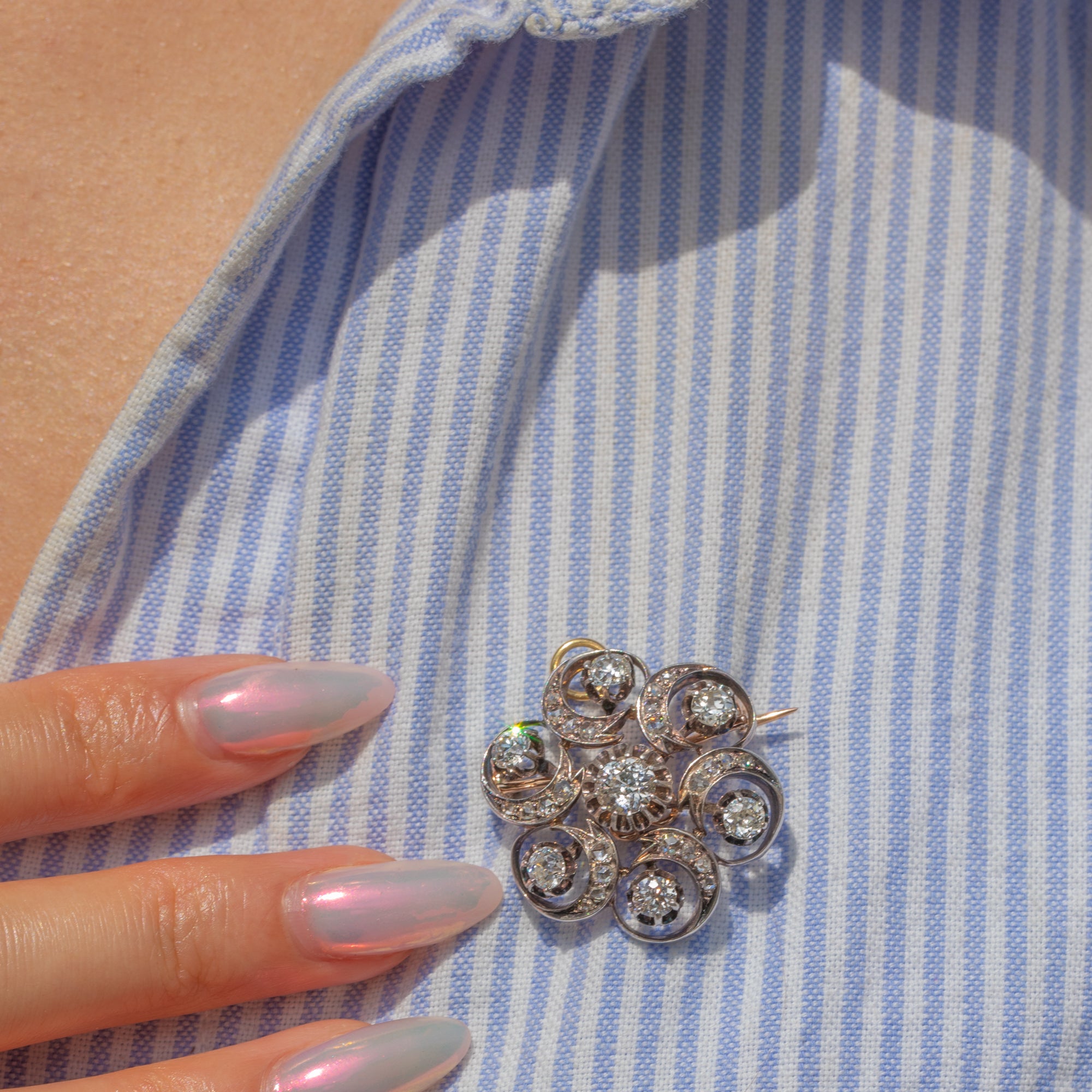 EXCELLENT: The 2.16cts of Diamonds are all amazingly bright, old European and rose-cut Diamonds, with chunky and gorgeous crisp facets and no abrasions or chips. All the components are in original condition, and the brooch fitting is in perfect working order.