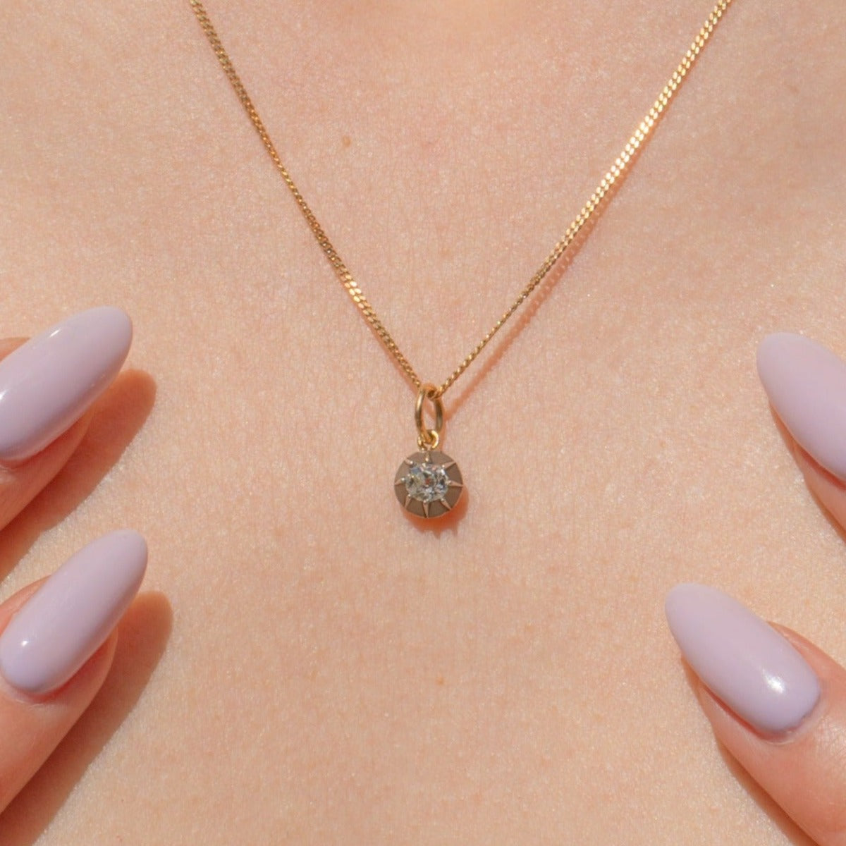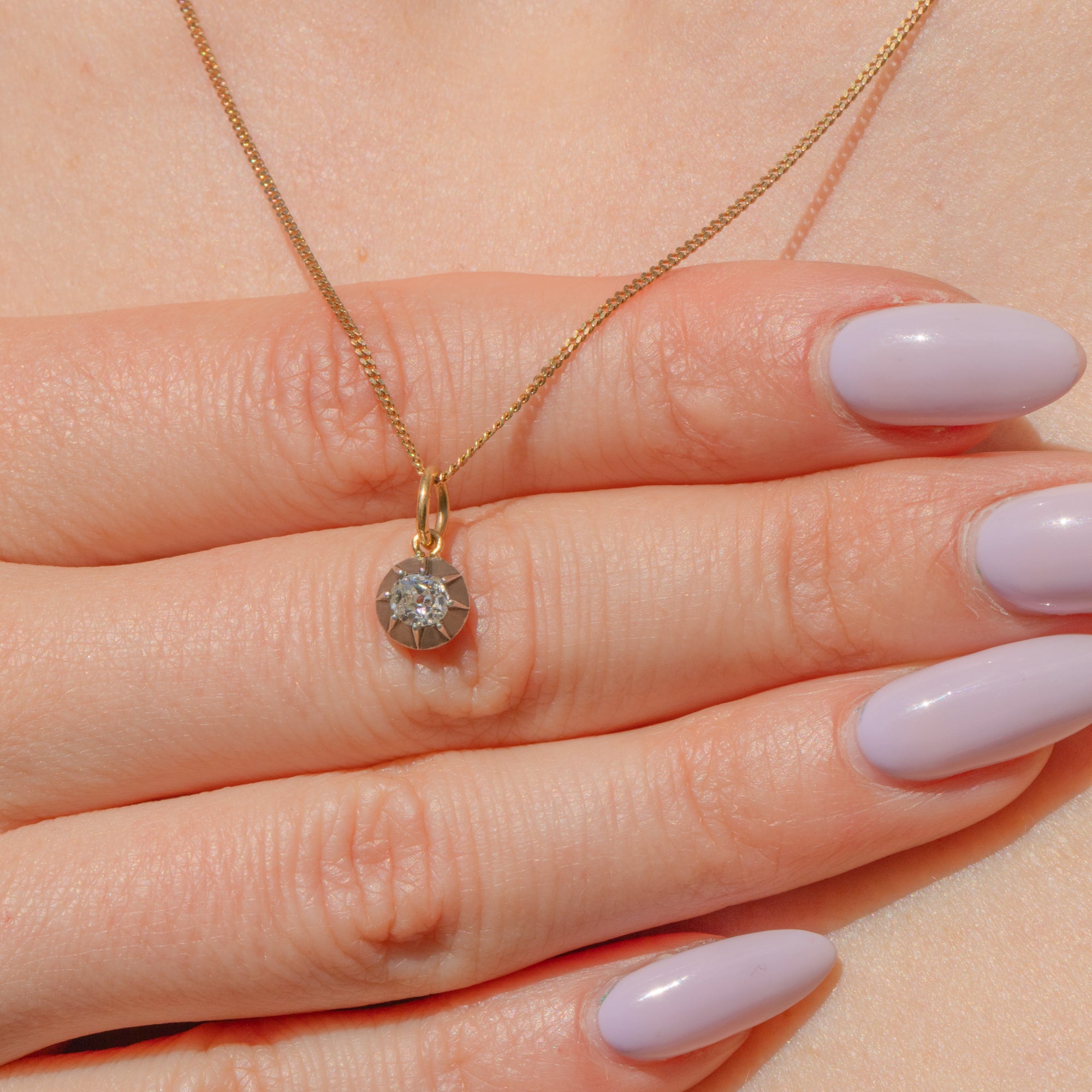 The 0.20ct Diamond dazzles and will look stunning once suspended from antique chain across your décolletage. Ensure she takes centre stage and pair her with your favourite dressy outfit. This Diamond will take your breath away!
