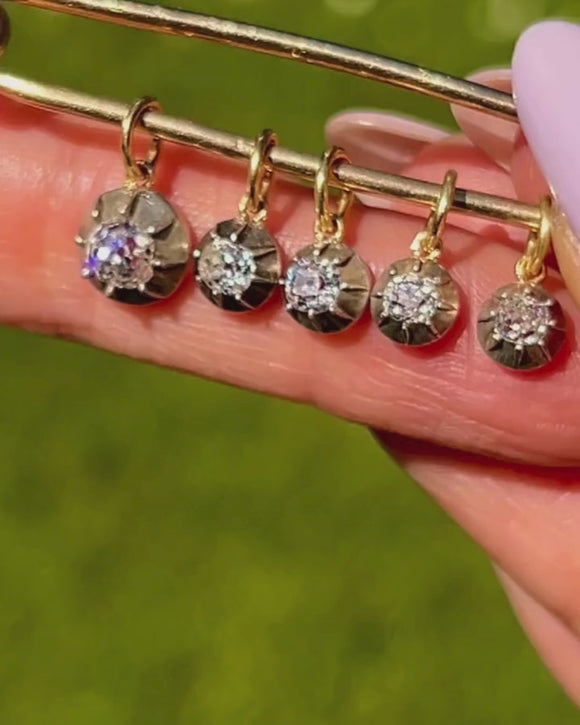 This antique Peruzzi old-mine cut Diamond charm will bring undeniable Victorian elegance to your attire! This timeless beauty will captivate any onlooker with its bright scintillation displayed within bold collet settings.
