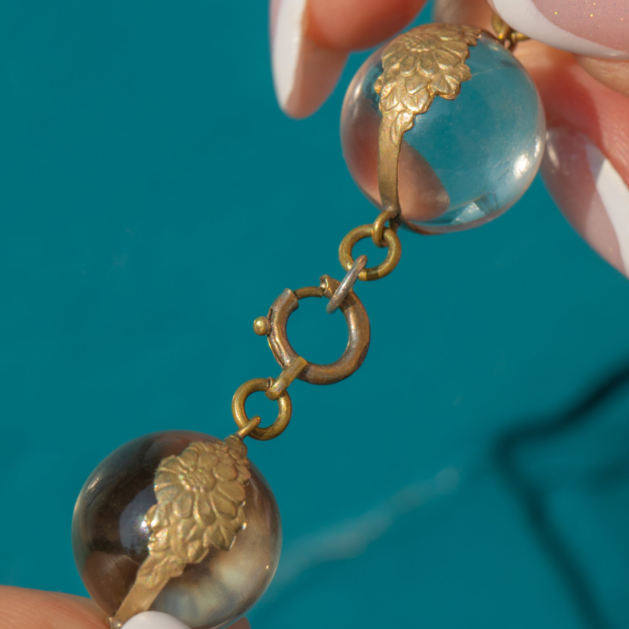 This exquisite antique Pools of Light Rock Crystal floral bracelet will make a bold impact wherever she goes! Providing impressive wrist coverage, each smoothly cut Rock Crystal orb glows and refracts the light wonderfully.